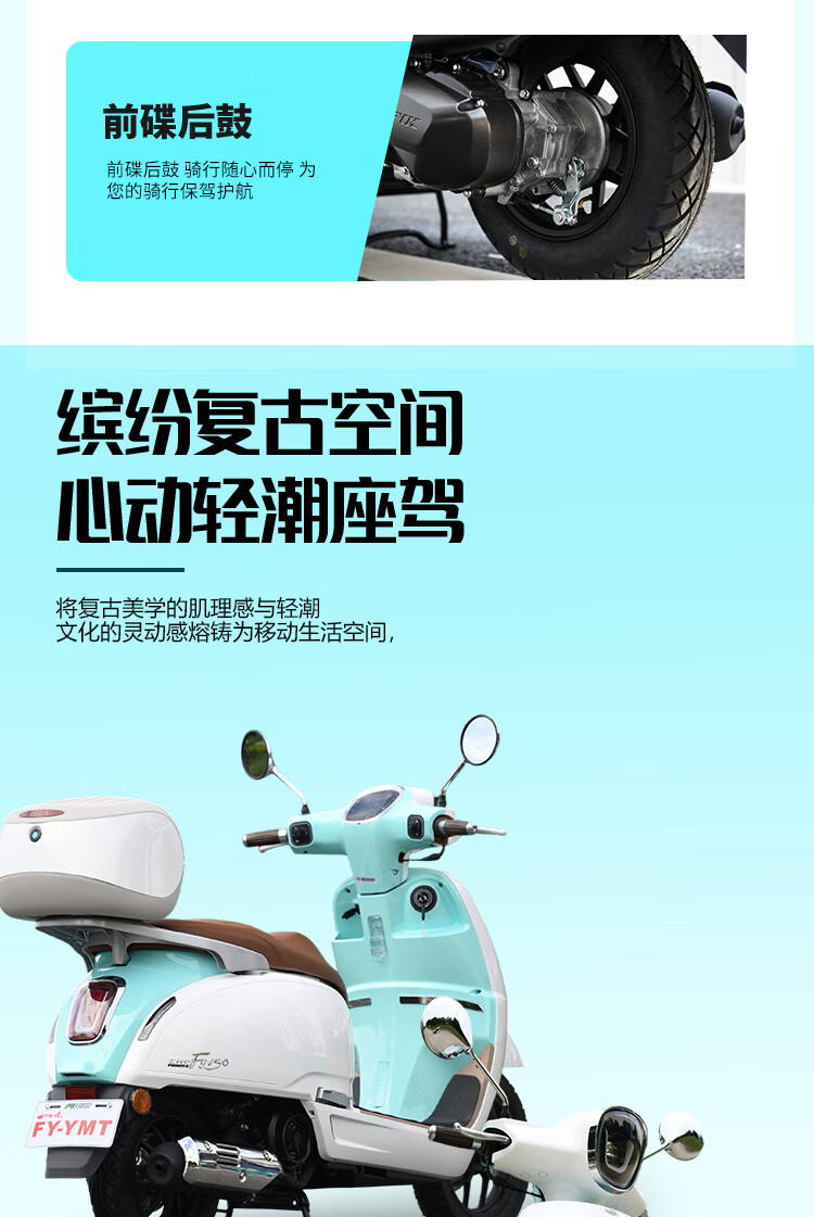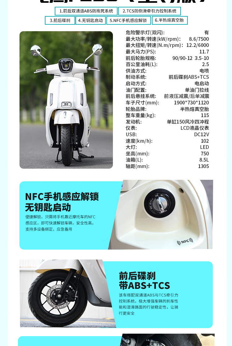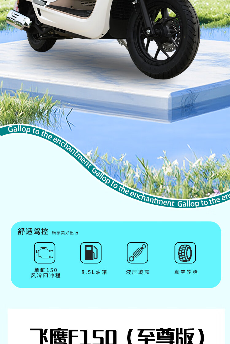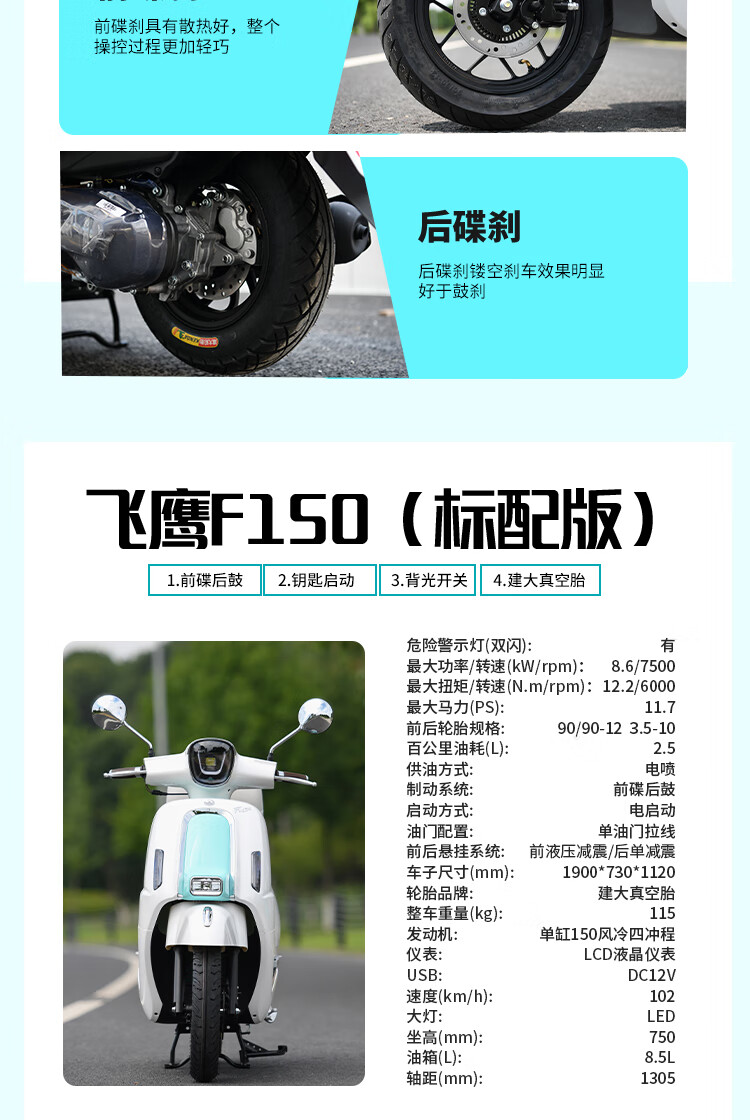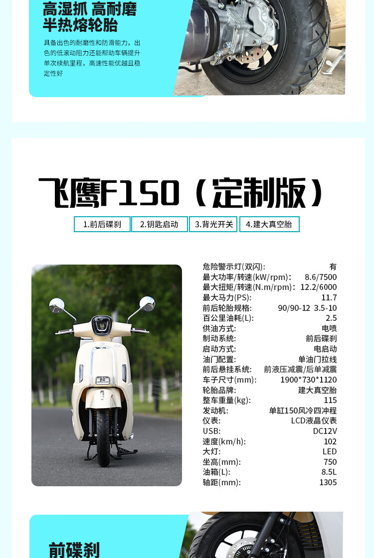 Flying Eagle's new F150 front and rear disc brake ABSTCS retro literary two-wheeled motorcycle National Fourth Generation EFI fuel pedal, white blue, customized version, nationwide free shipping to your home + free helmet + trunk + engine oil + full set of gifts