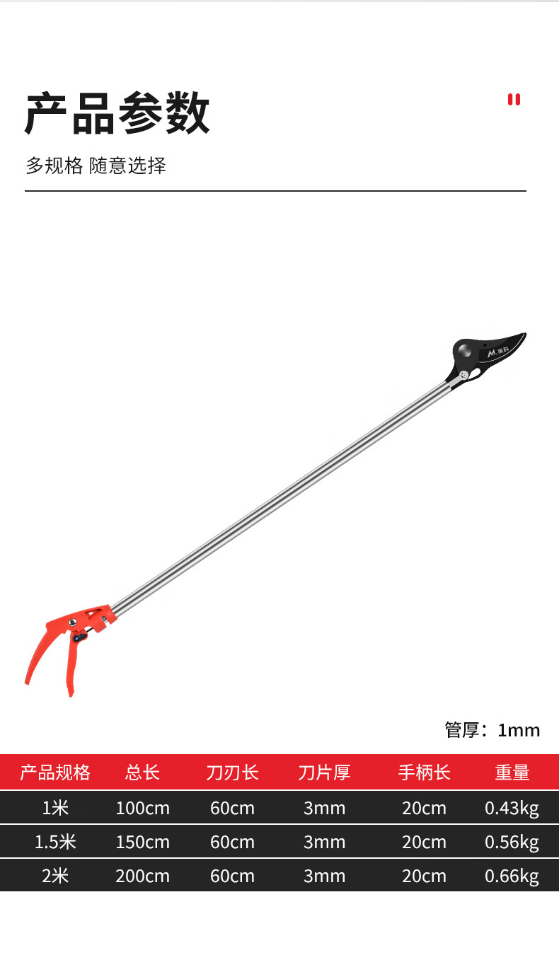 MYTEC high-altitude pruning shears, extended pruning shears, special scissors for branch cutting, stainless steel fruit tree shears, garden thick branch shears, gardening 1-meter pruning shears, stainless steel poles