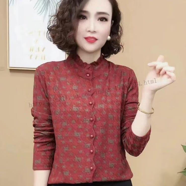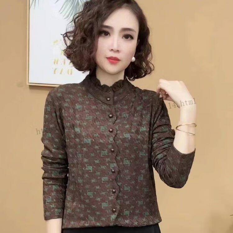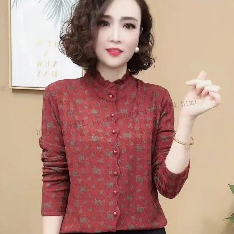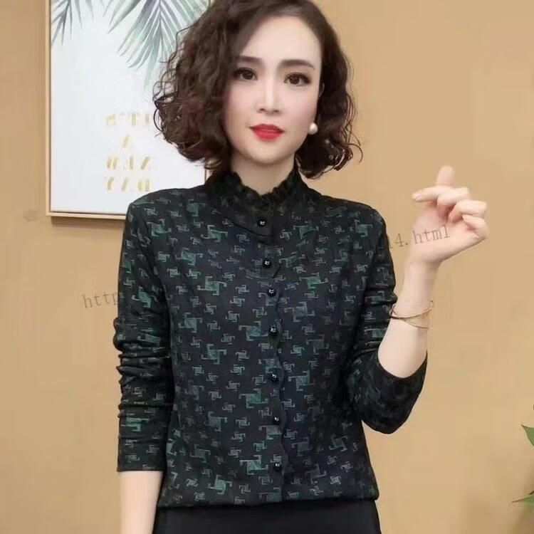 Hengyuanxiang Printed Fashion Mom High-end Autumn and Winter New Style Warm and Versatile Shirt Top Black XL