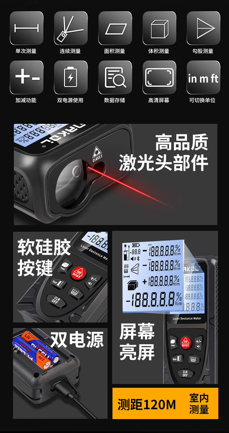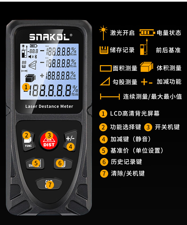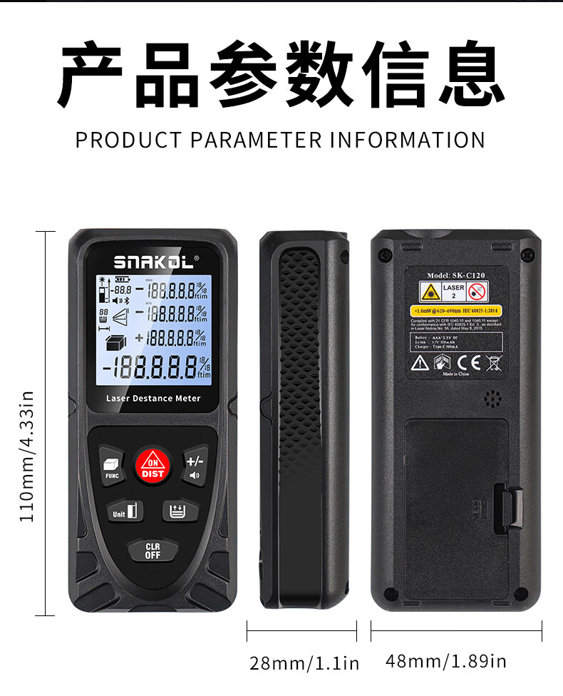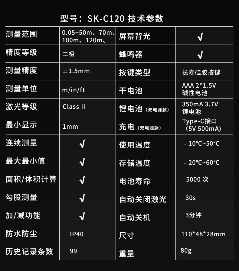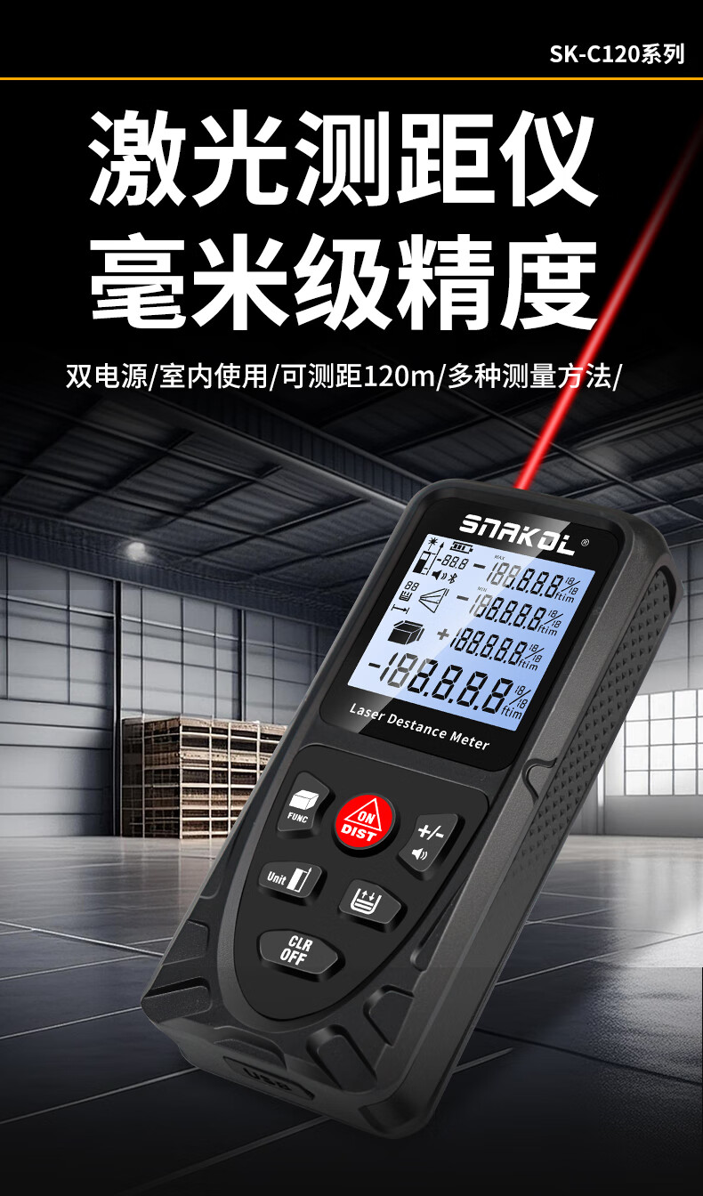 Konegas Nica laser distance meter SK-C120 high-precision measuring ruler electronic ruler dual power supply backlight SK-C100 standard (red light/indoor)