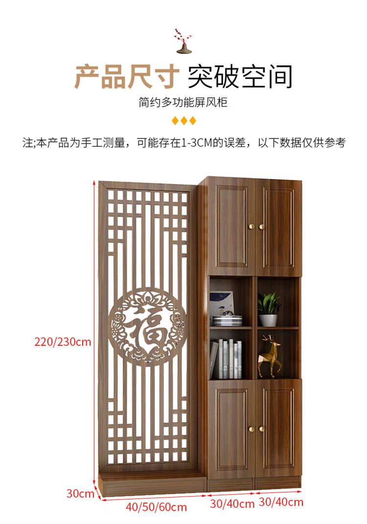 Xingzhemu new Chinese screen partition living room entrance cabinet multi-functional entrance door partition restaurant wine cabinet partition small apartment Fuze Youyu upper and lower cabinets height 200 width 100