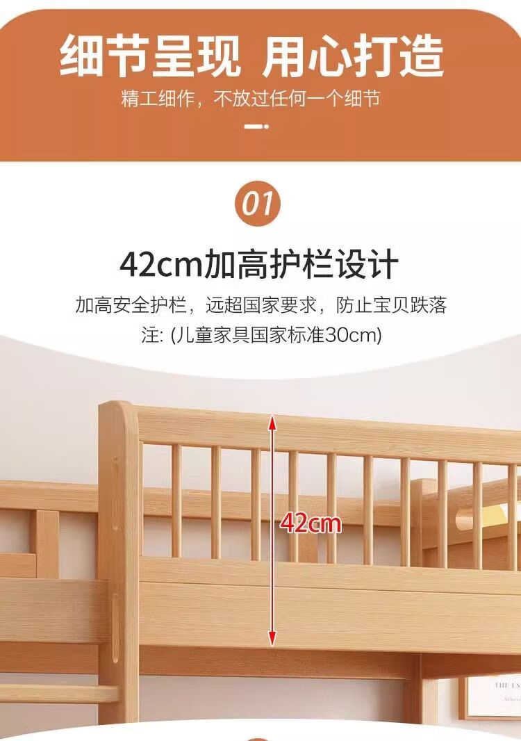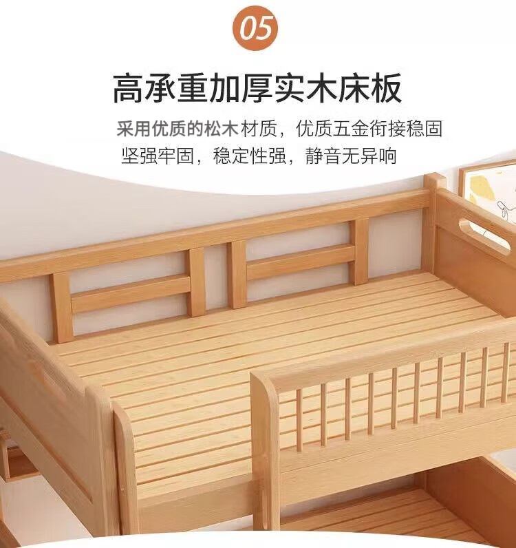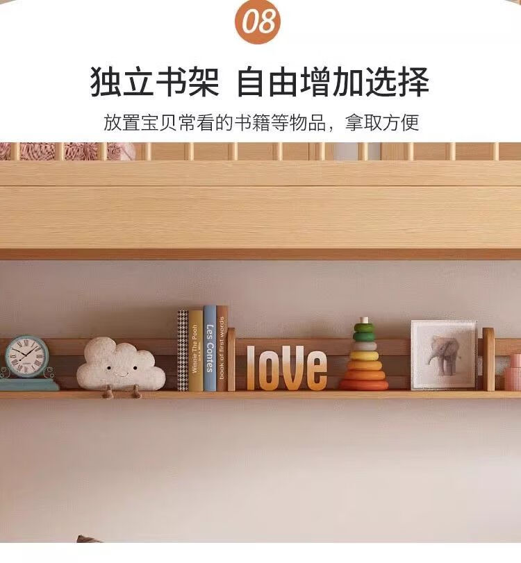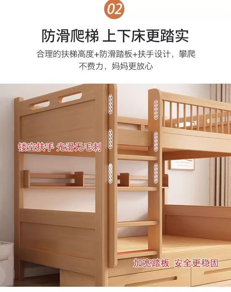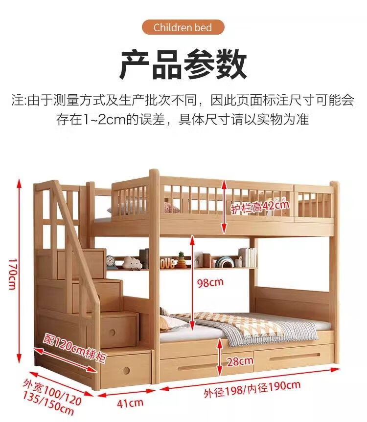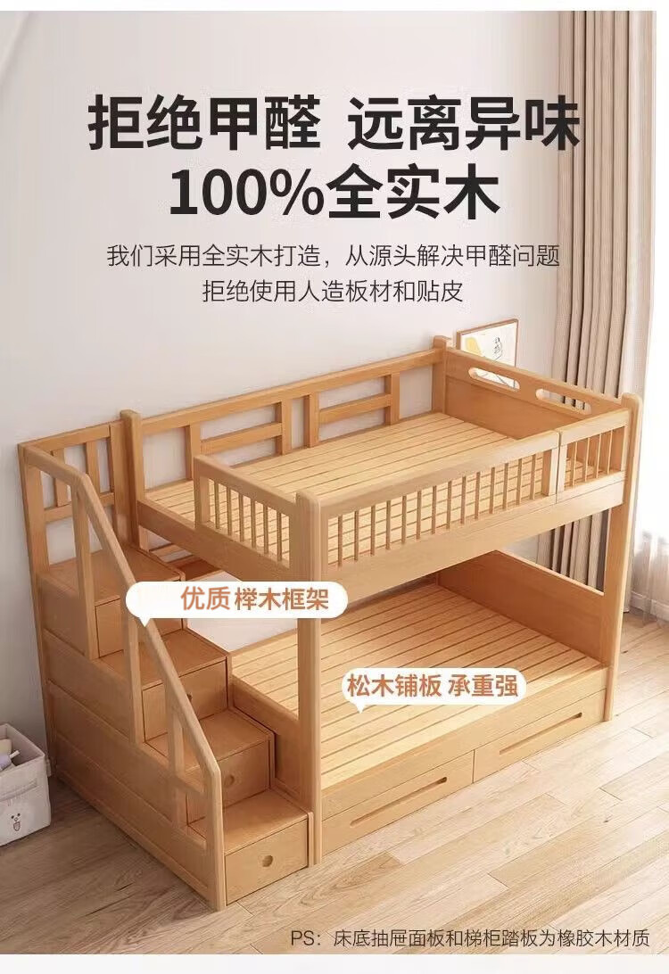 Ou Xufeng's 2026 new beech bunk bed, solid wood bunk bed, high and low small apartment bed, double bed, bunk bed, beech ladder bed + drawer + solid wood bookshelf + free mattress (upper and lower * same width) 1.5 meters wide * 2.0 meters long