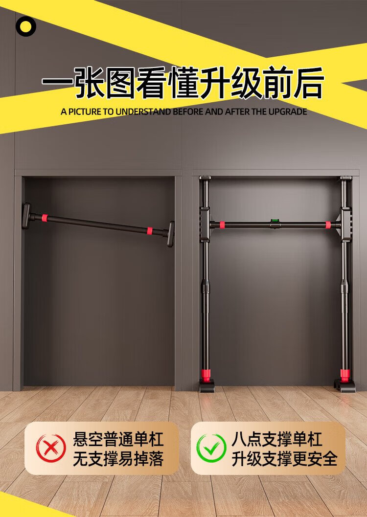 British horizontal bar home indoor pull-up device floor-standing single bar punch-free home hanging lever training fitness rack wall distance width 100-125cm free level and hanging rings
