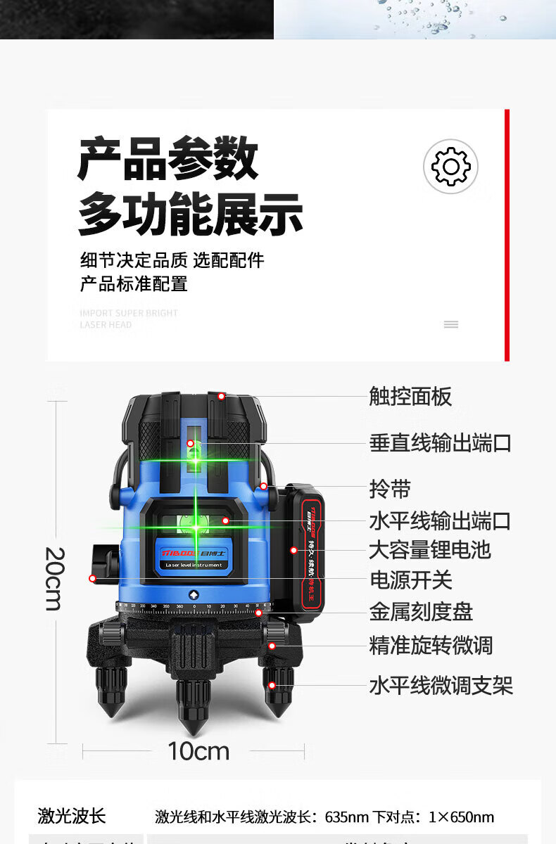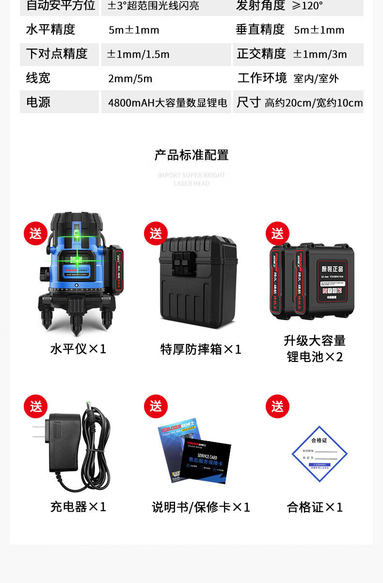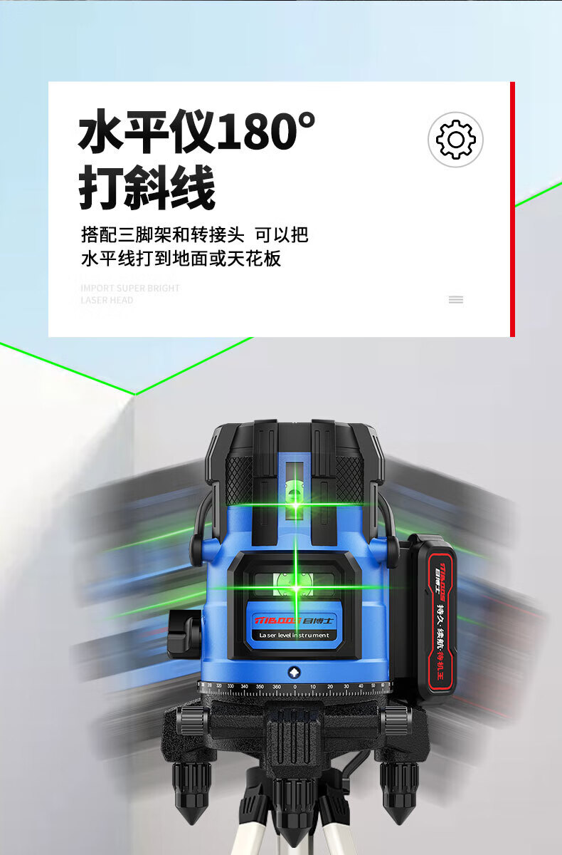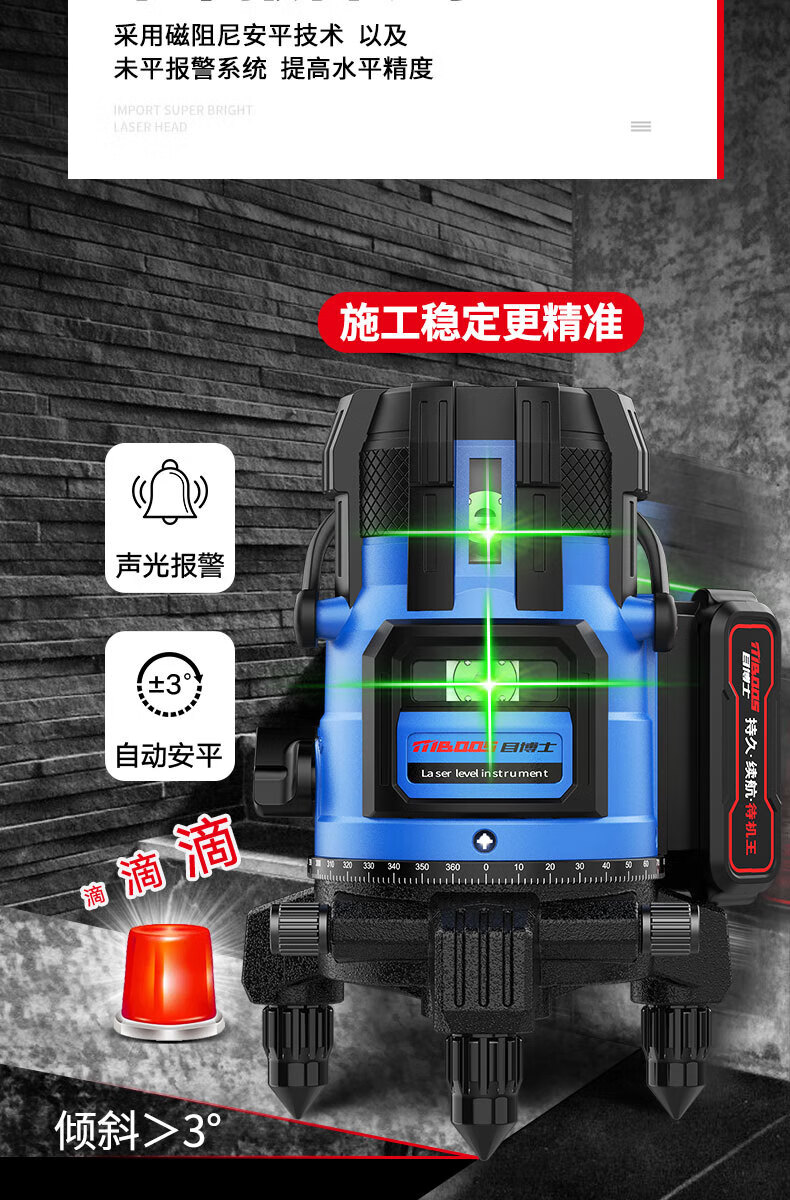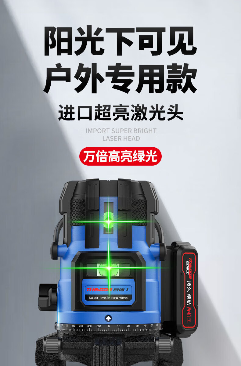 Dr. Eye Level High-precision Strong Light Thin Line Green Light Outdoor Special Fine-tuning Automatic Leveling Water Meter Super Bright LD Green Light 2 Lines Big Mac Battery Anti-B