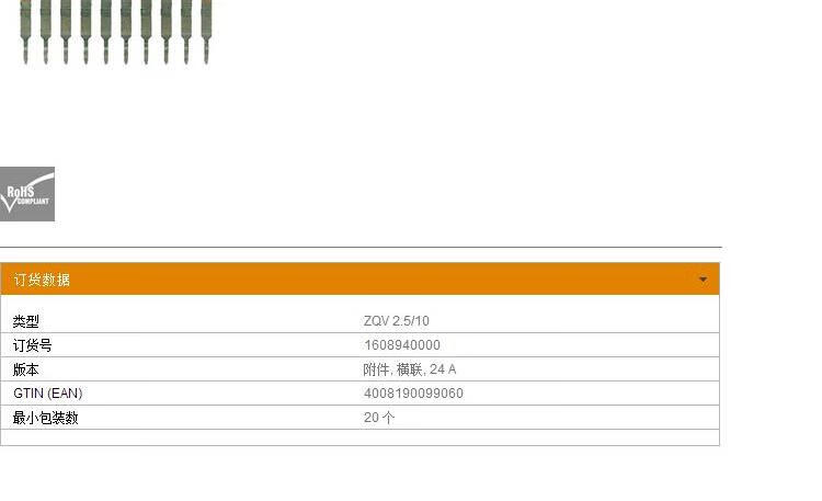 Weidmüller terminal cross connector 1608940000 ZQV 2.5/10 shorting strip insert shorting strip