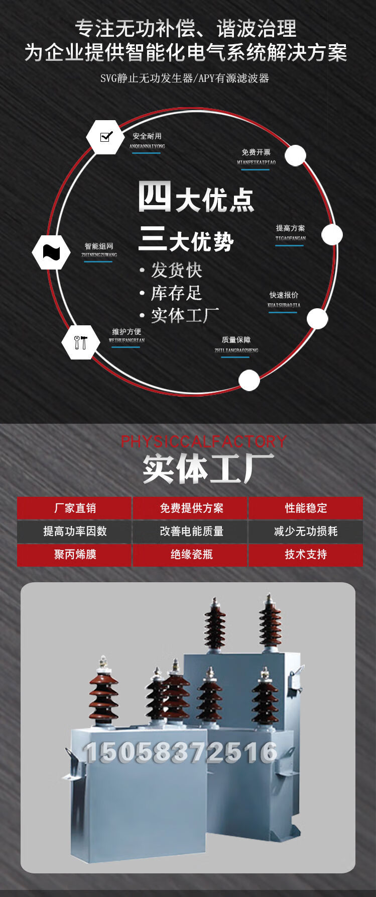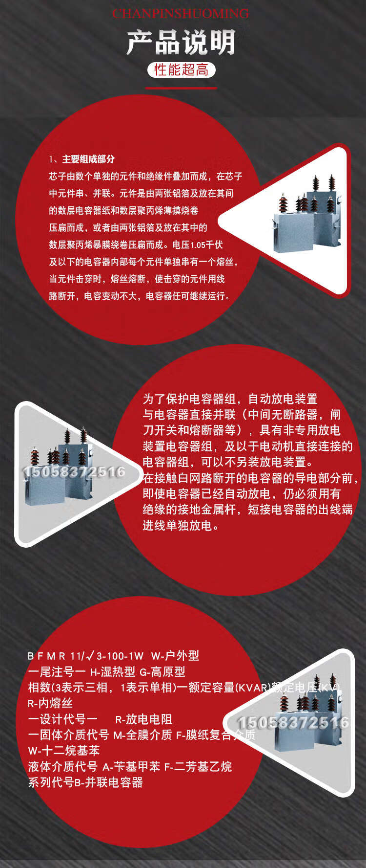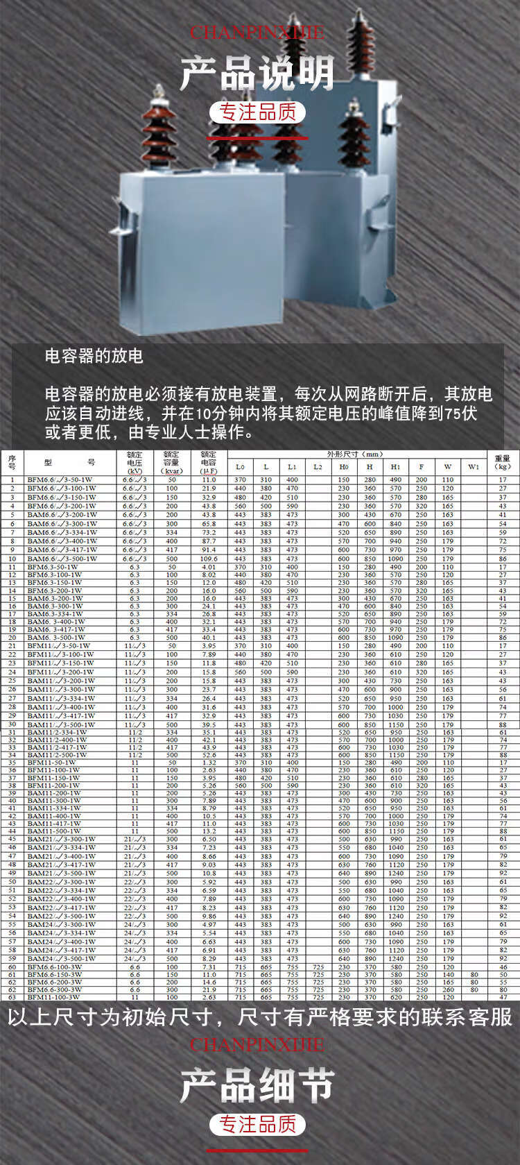 High voltage shunt capacitor BFM11/3-100-1W customized various voltage complete sets of high voltage cabinet compensation capacitor BAM11/3-300-1W