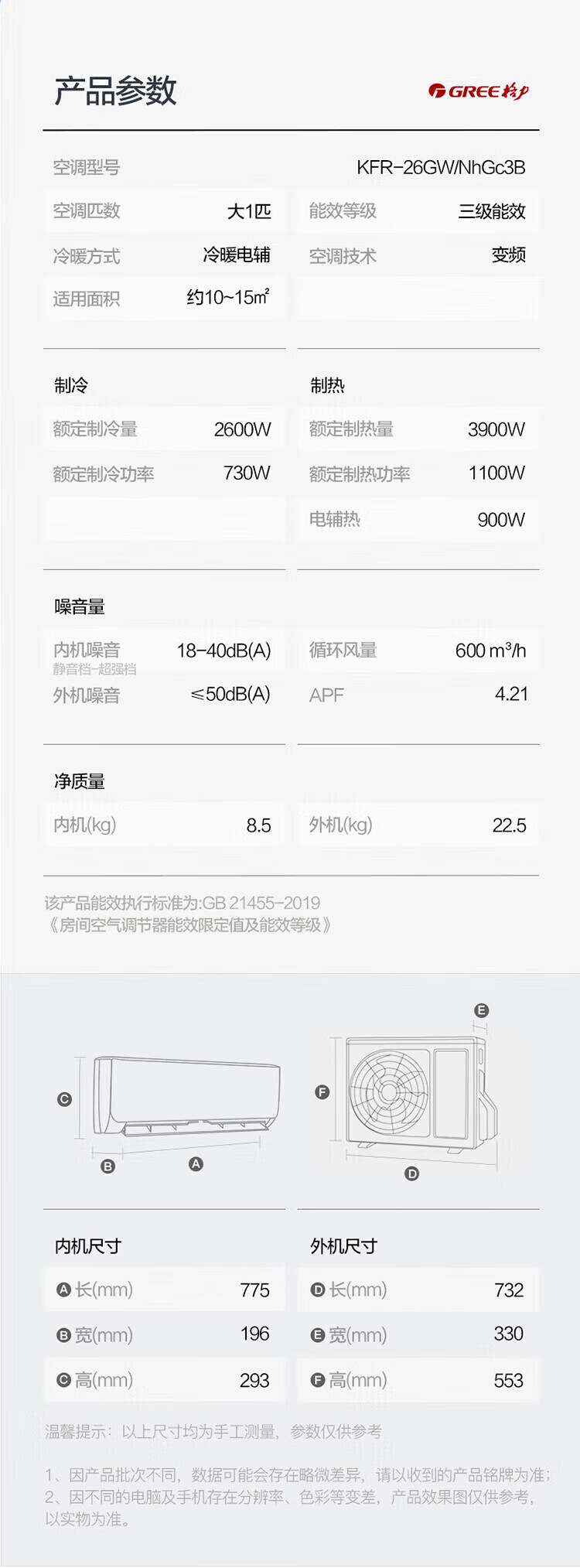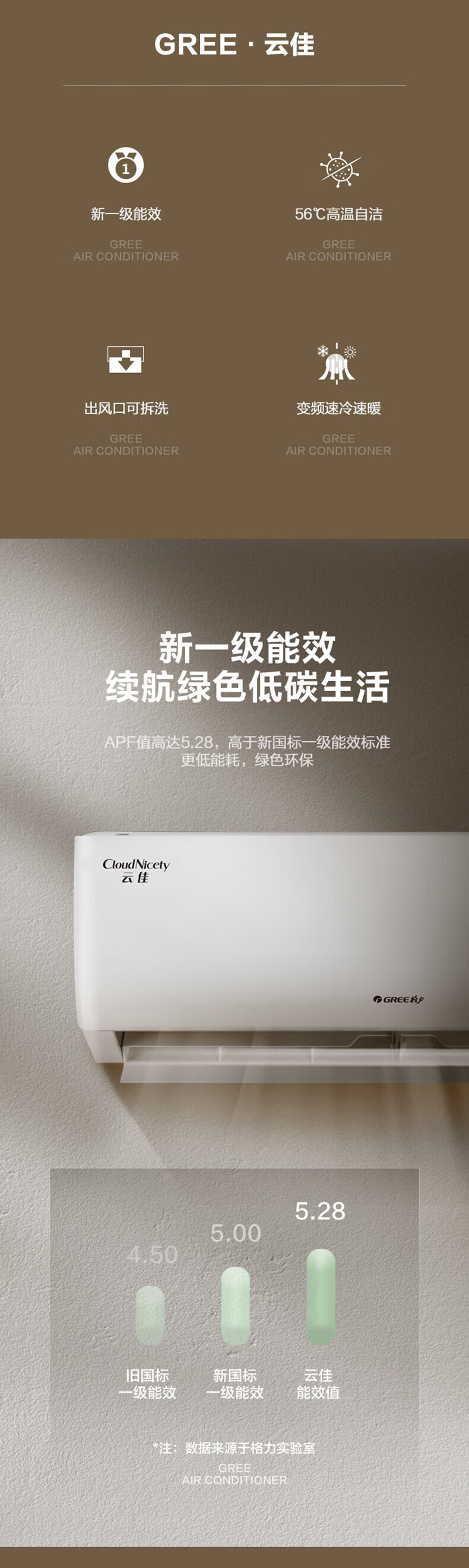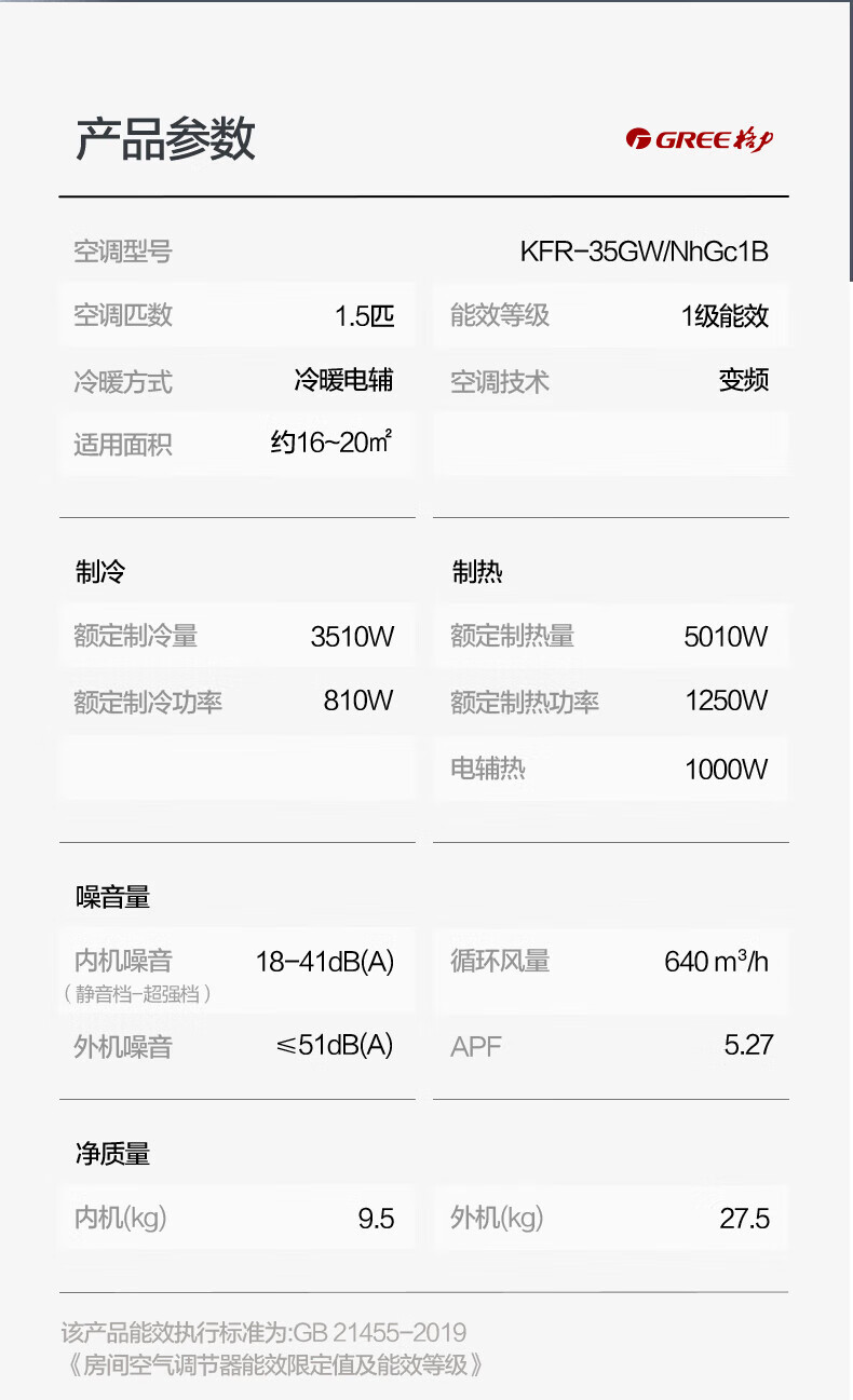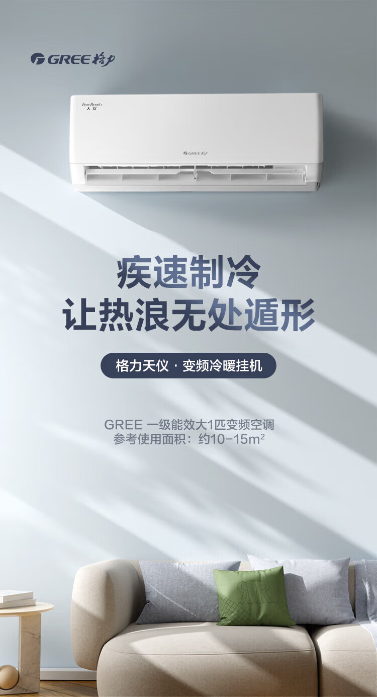 Gree air conditioner 1.5 hp Tianyi/Yunjia new level of energy efficiency, energy saving, variable frequency heating and cooling, official authentic product, home bedroom hang-up, old-for-new, national subsidy for home appliances, Tianyi 1.5 hp, first level energy efficiency, hot selling model