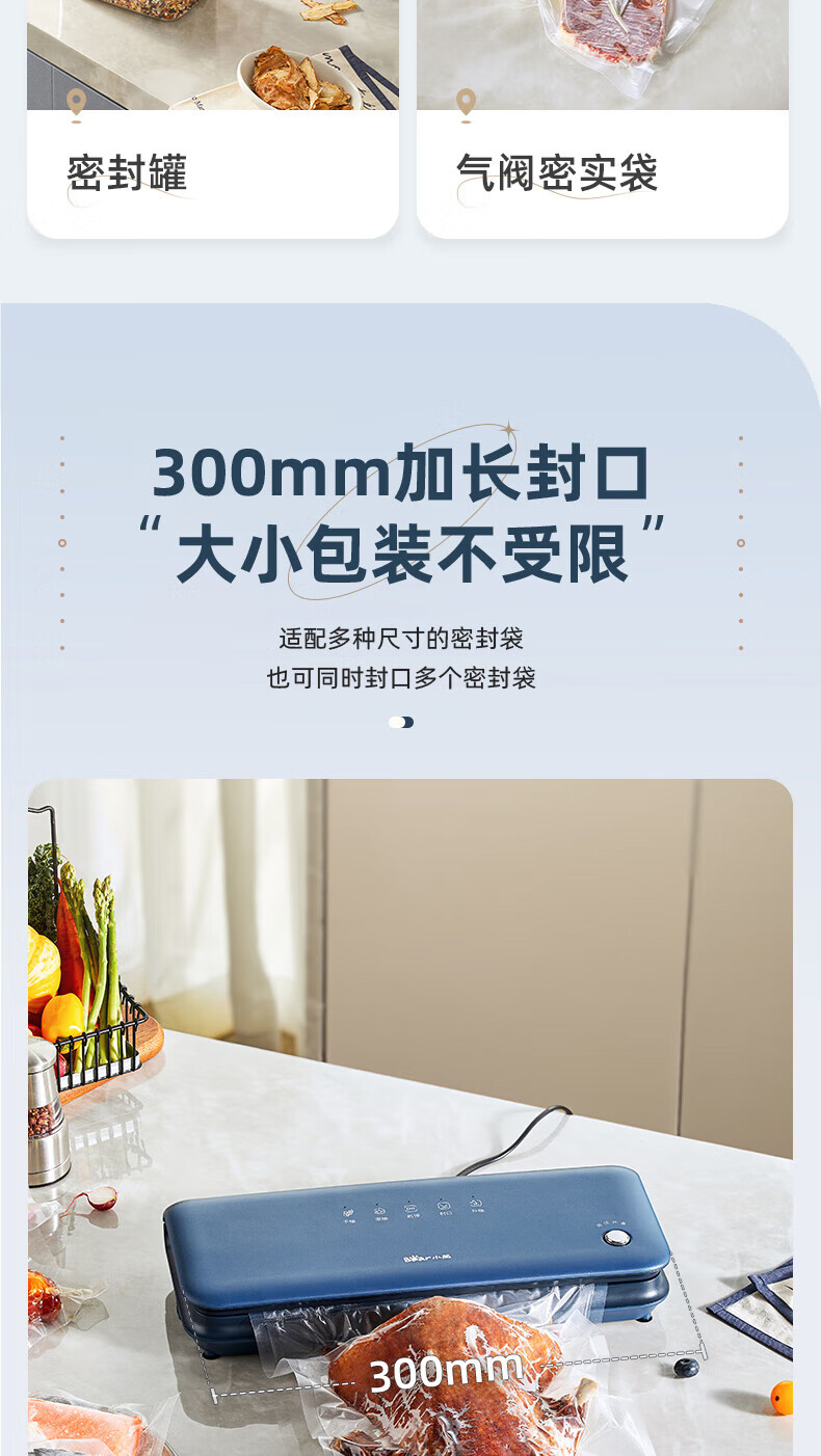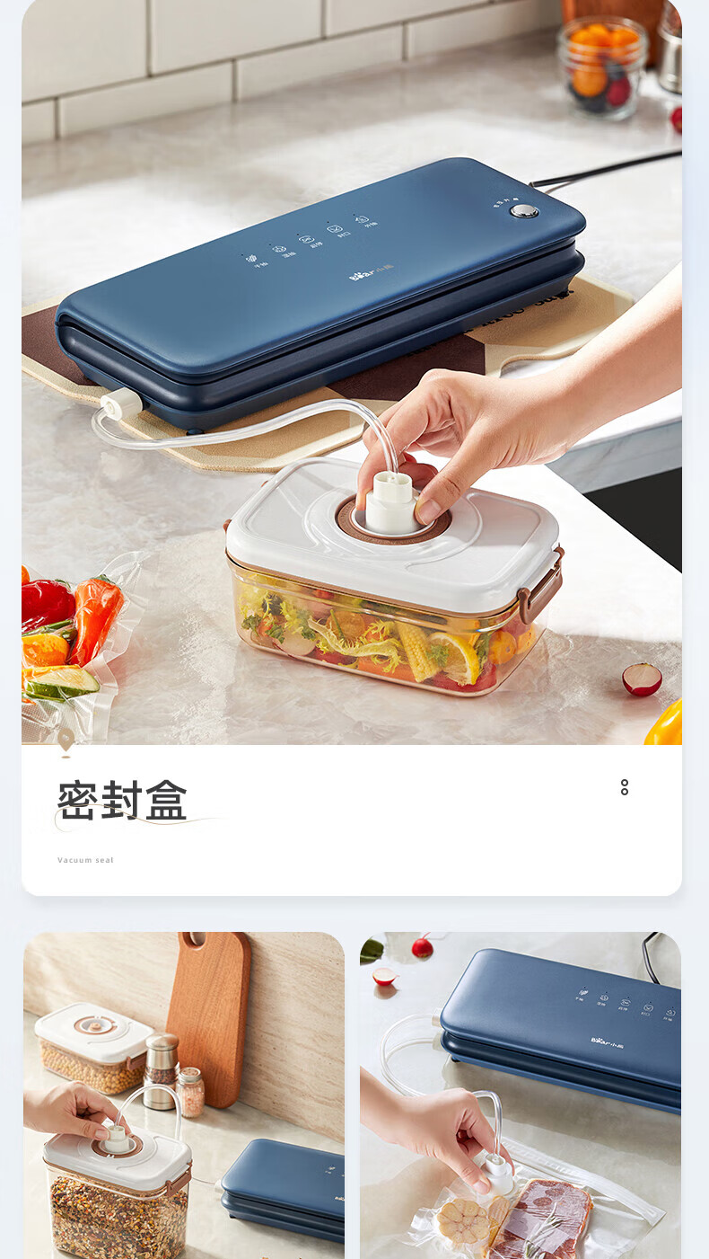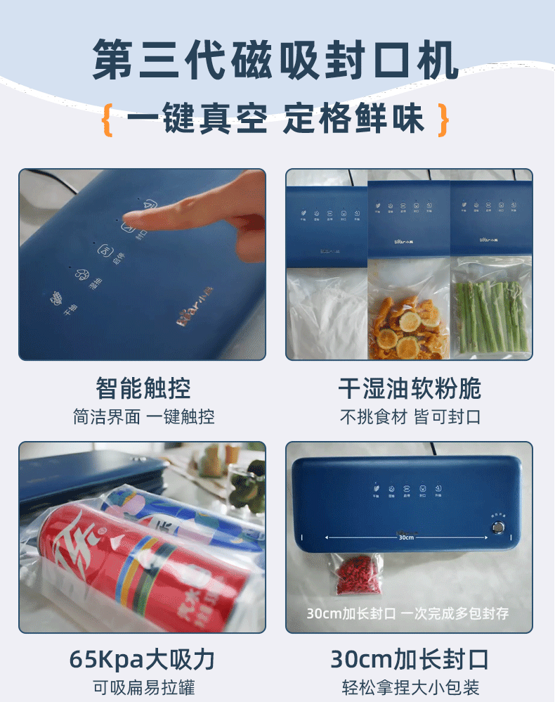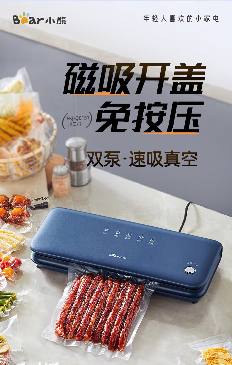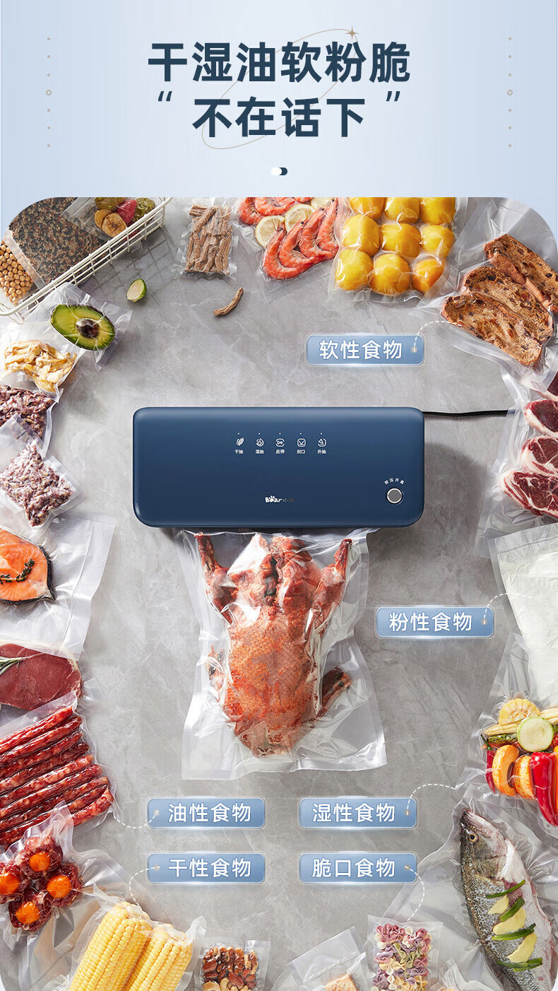 Bear vacuum sealing machine household multifunctional food packaging plastic sealing machine small automatic vacuum packaging machine high power high suction vacuum food preservation packaging machine semi-automatic FKJ-Q01S1 dry and wet oil powder universal 30cm