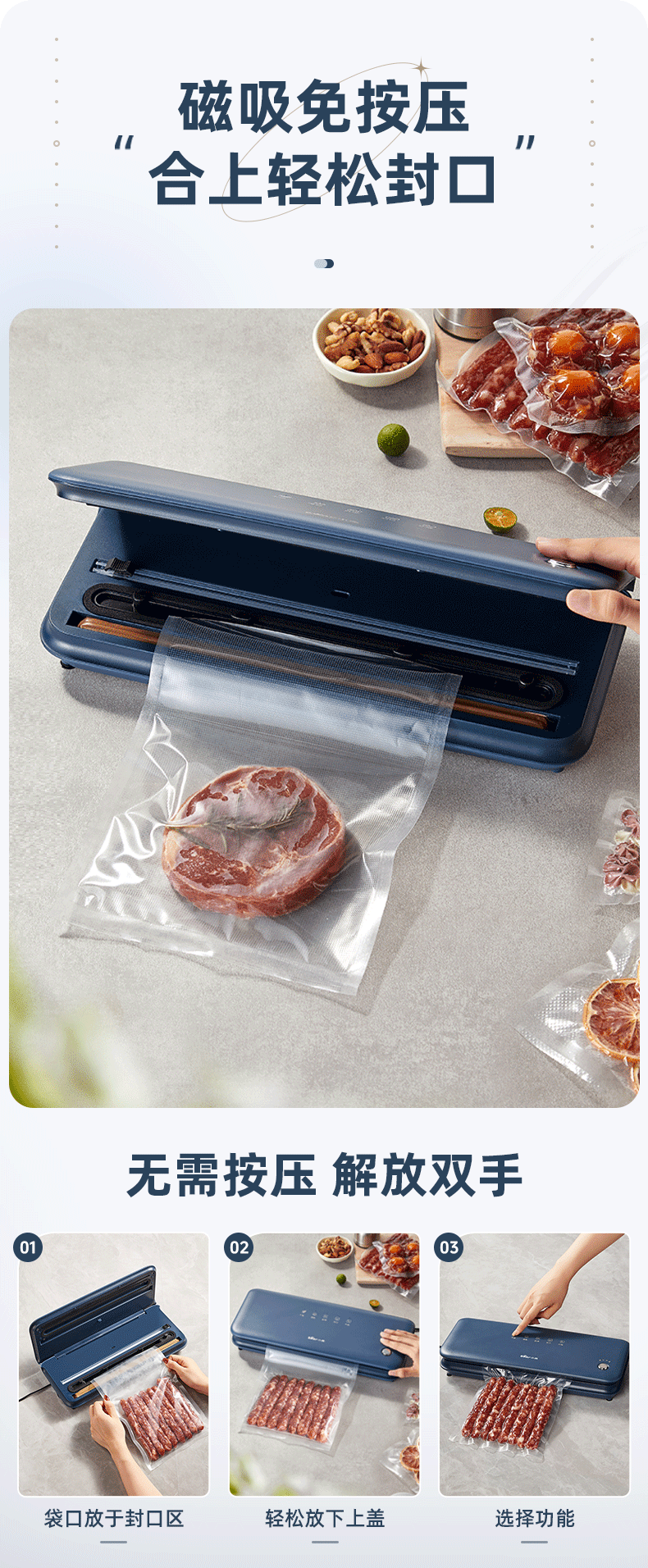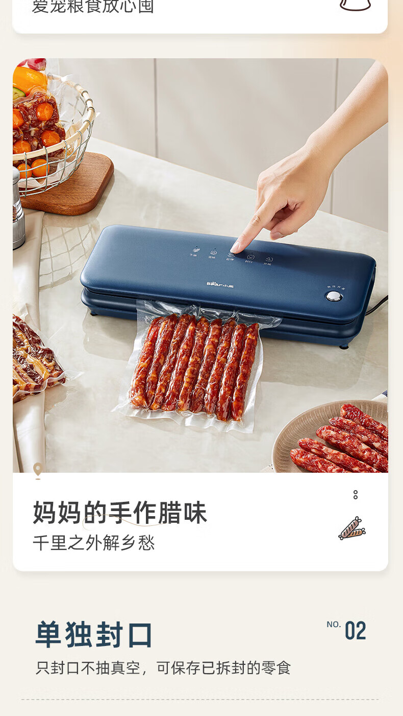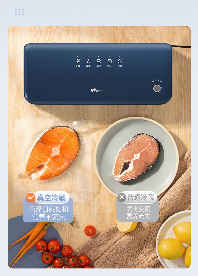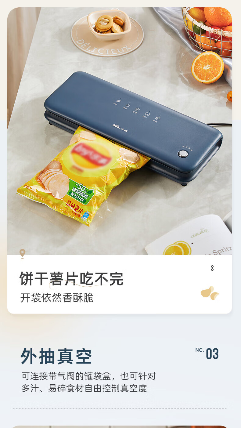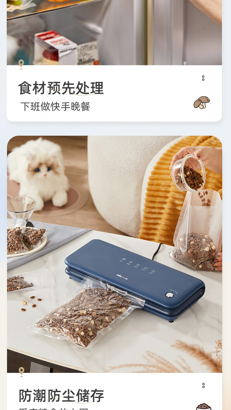 Bear vacuum sealing machine household multifunctional food packaging plastic sealing machine small automatic vacuum packaging machine high power high suction vacuum food preservation packaging machine semi-automatic FKJ-Q01S1 dry and wet oil powder universal 30cm