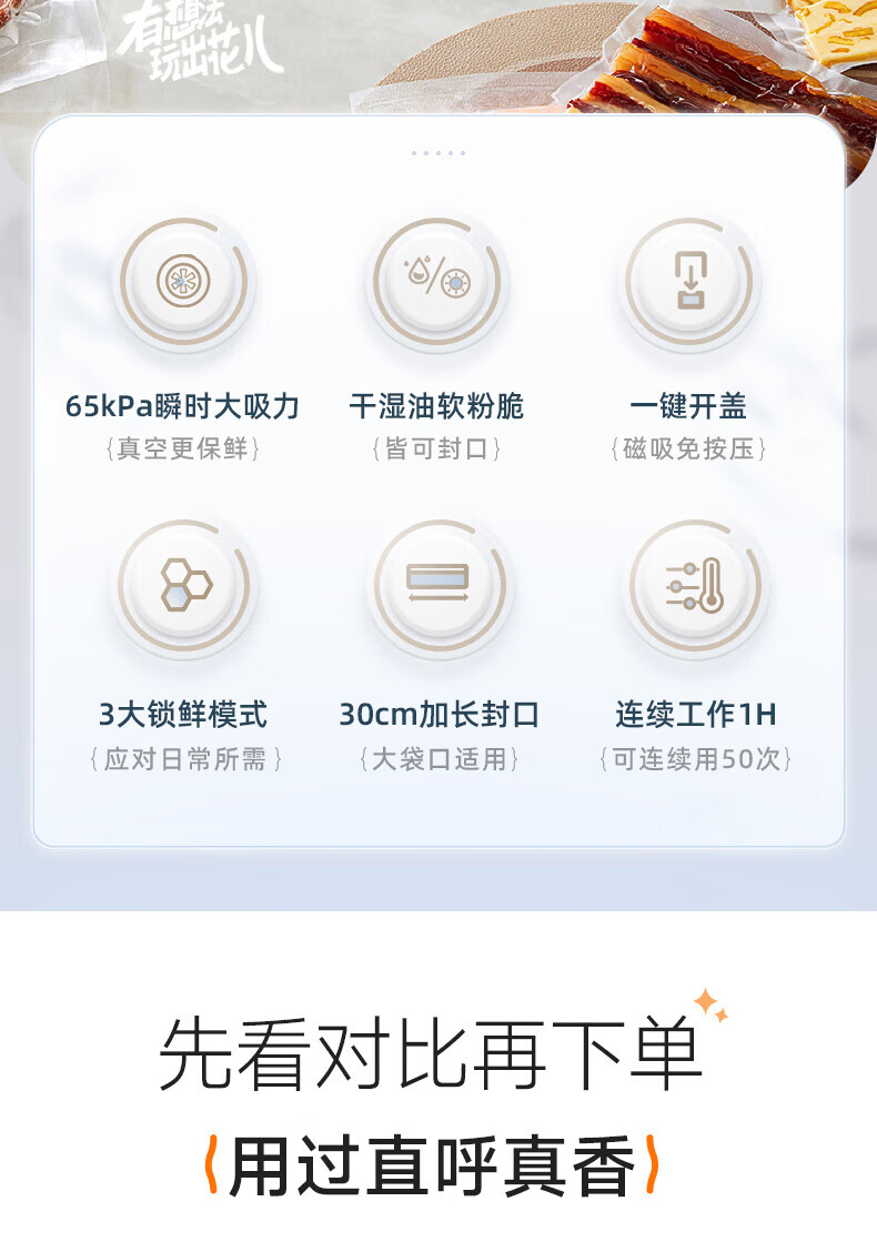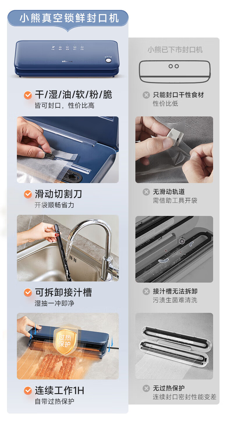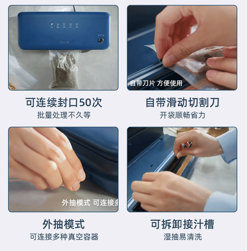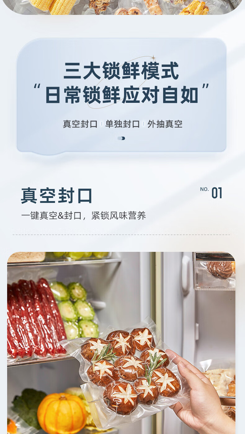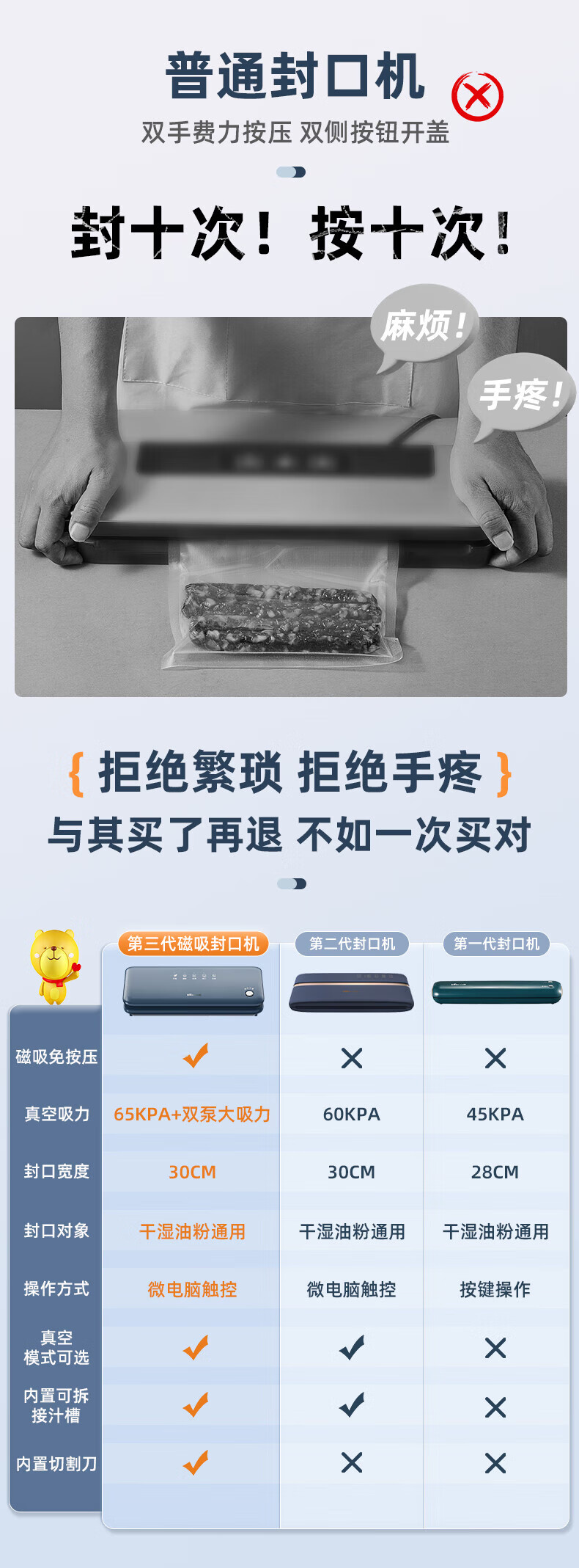 Bear vacuum sealing machine household multifunctional food packaging plastic sealing machine small automatic vacuum packaging machine high power high suction vacuum food preservation packaging machine semi-automatic FKJ-Q01S1 dry and wet oil powder universal 30cm