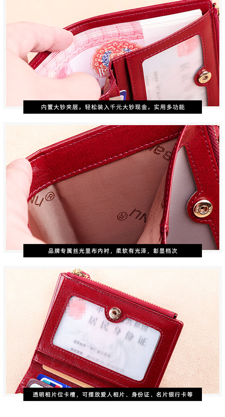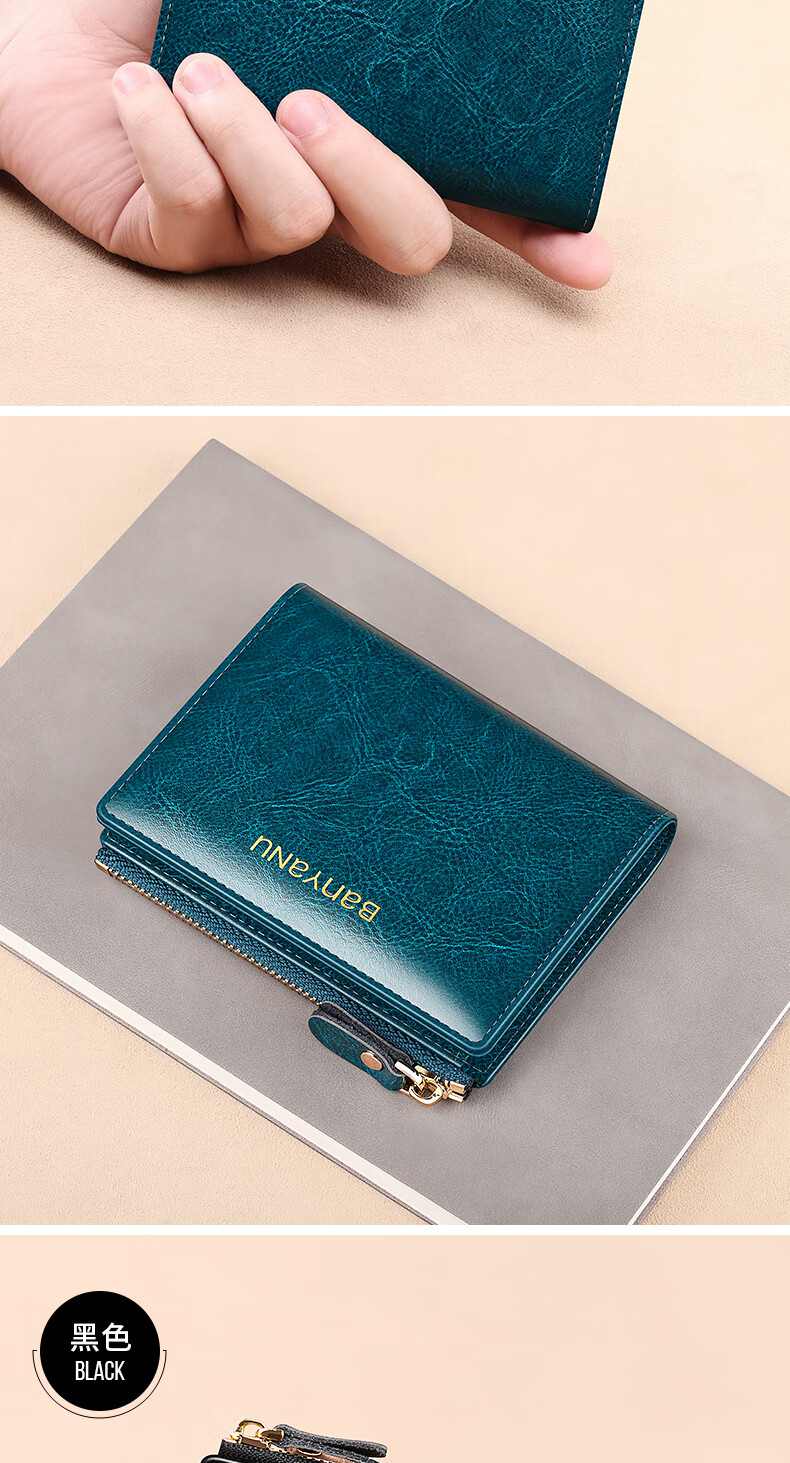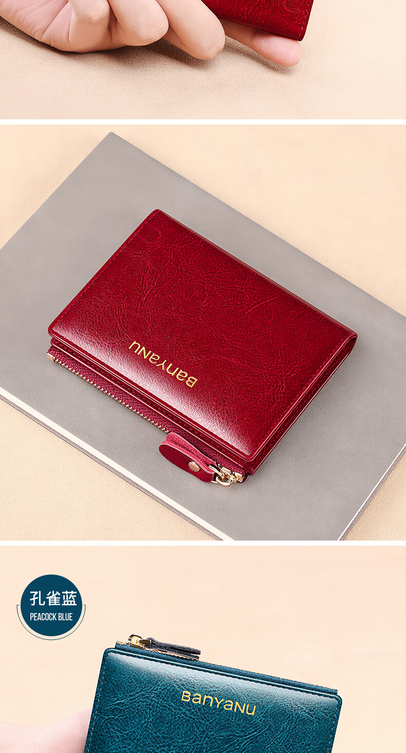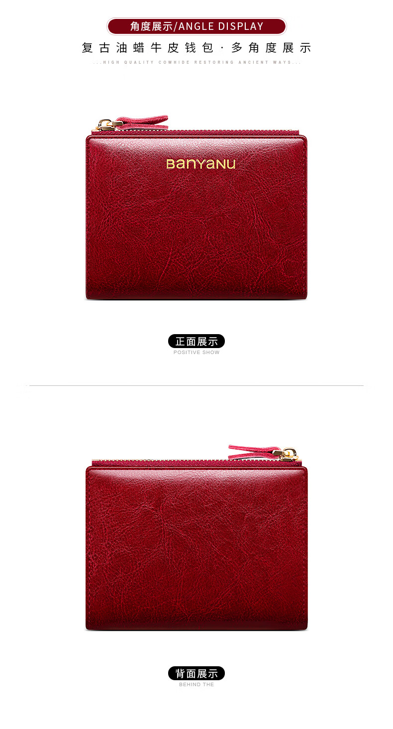 Banyanu Women's Wallet Short Genuine Leather Exquisite Coin Purse Women's 2025 New Fashion Wallet Folding Wallet Thin Antique Yellow-Anti-Theft Brush