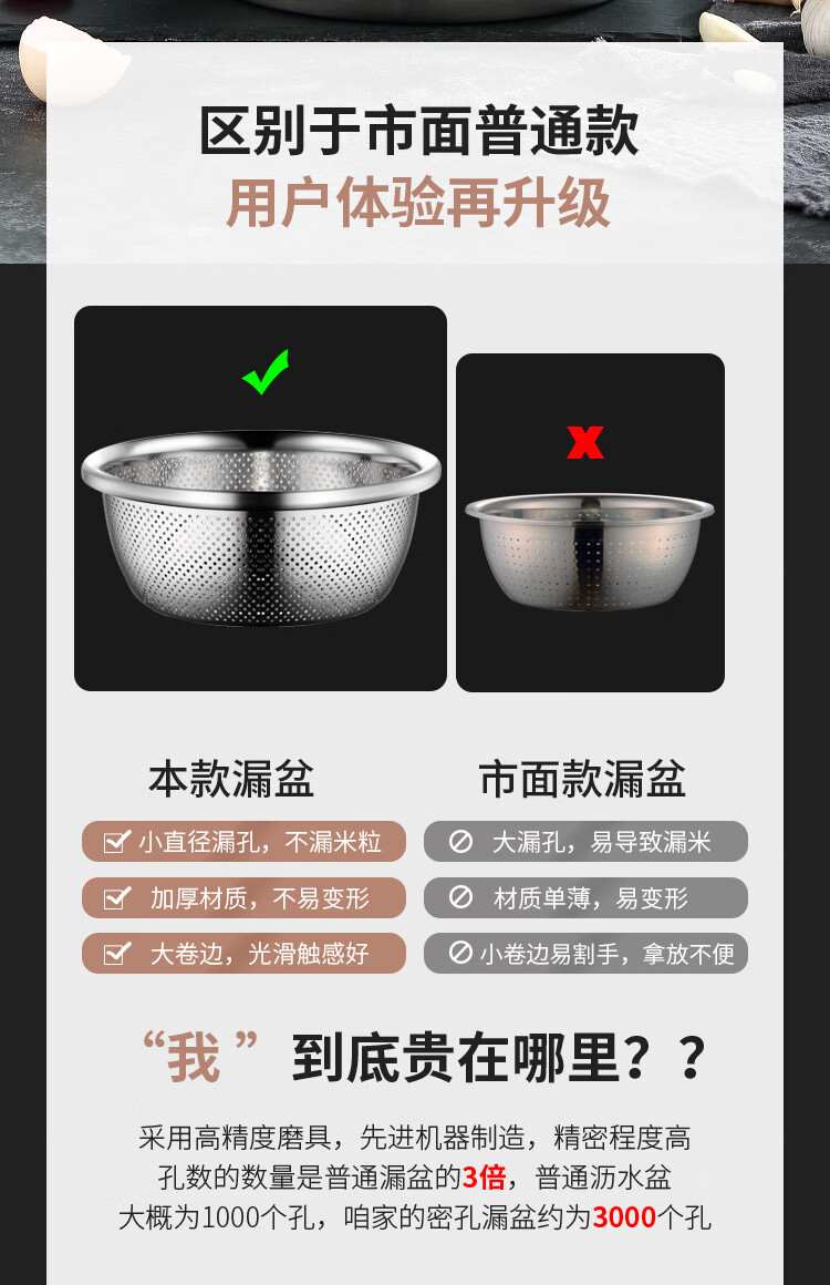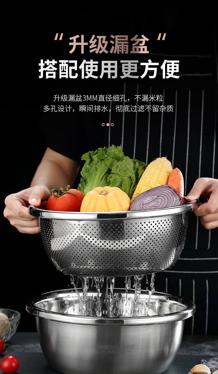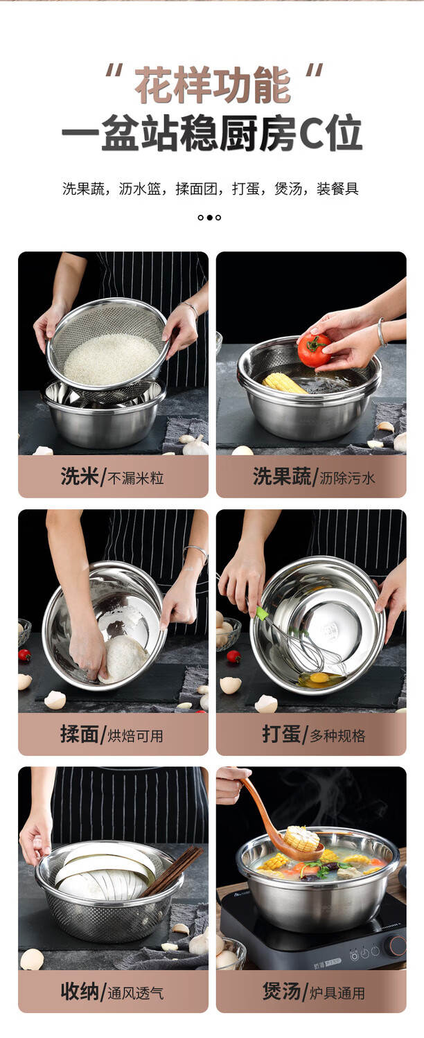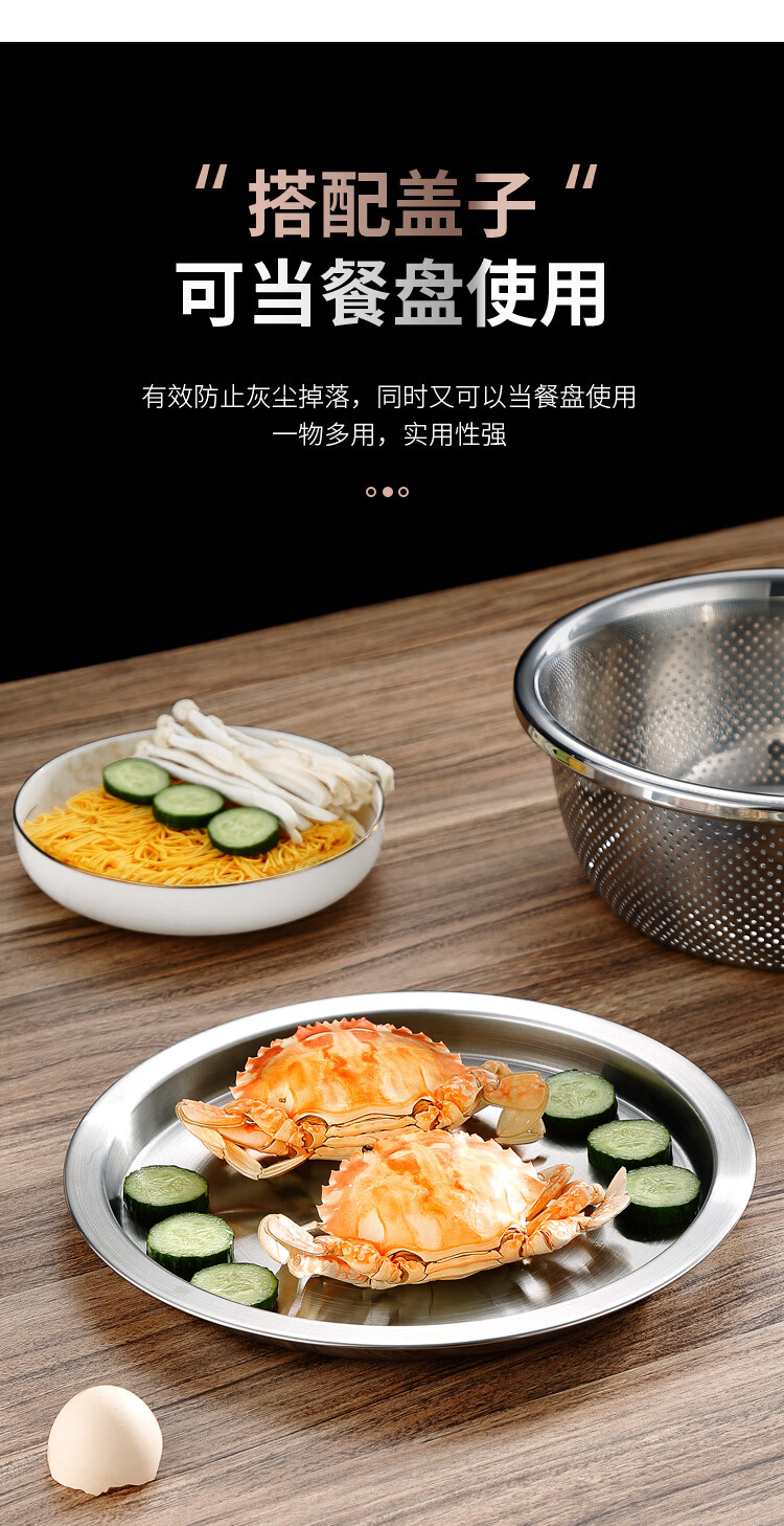 Ye Yu Thickened 304 Stainless Steel Kitchen Basin and Washing Drainage Basket Rice Basin Main Picture Model Great Value 26cm Solid Basin + Lid
