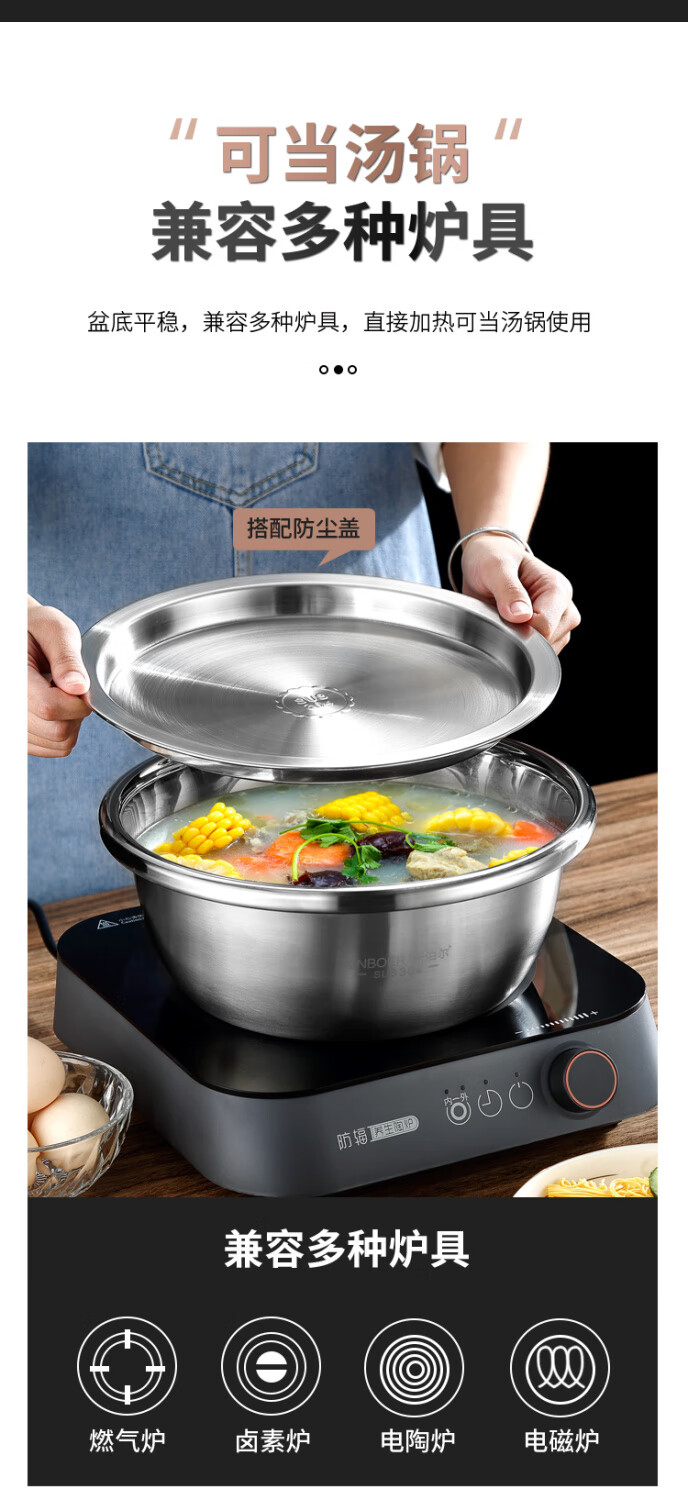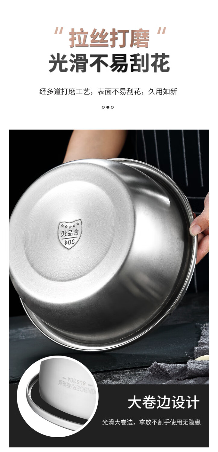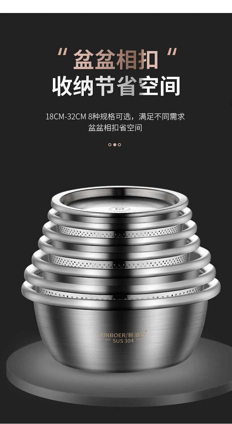Ye Yu Thickened 304 Stainless Steel Kitchen Basin and Washing Drainage Basket Rice Basin Main Picture Model Great Value 26cm Solid Basin + Lid