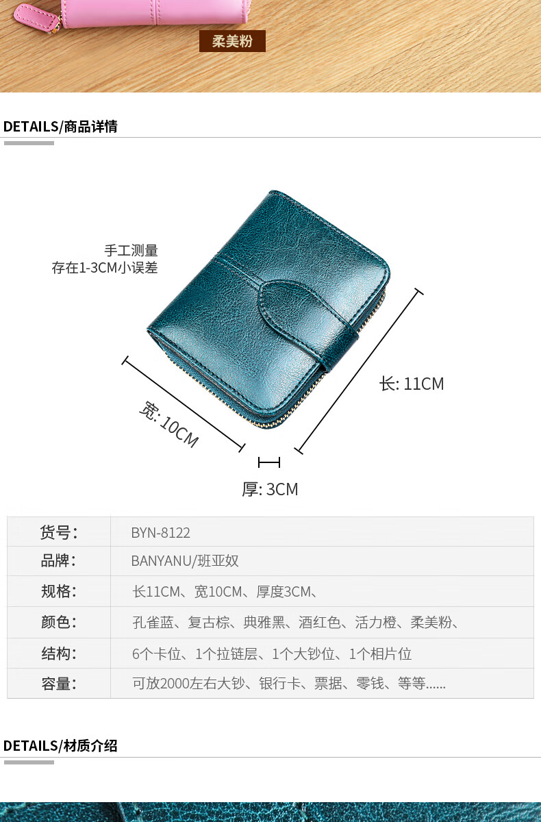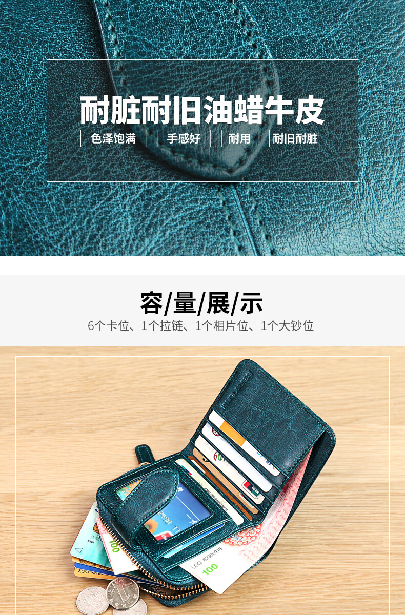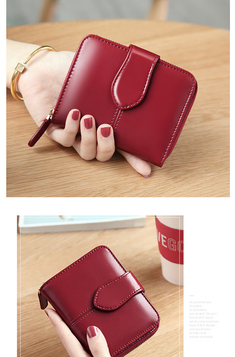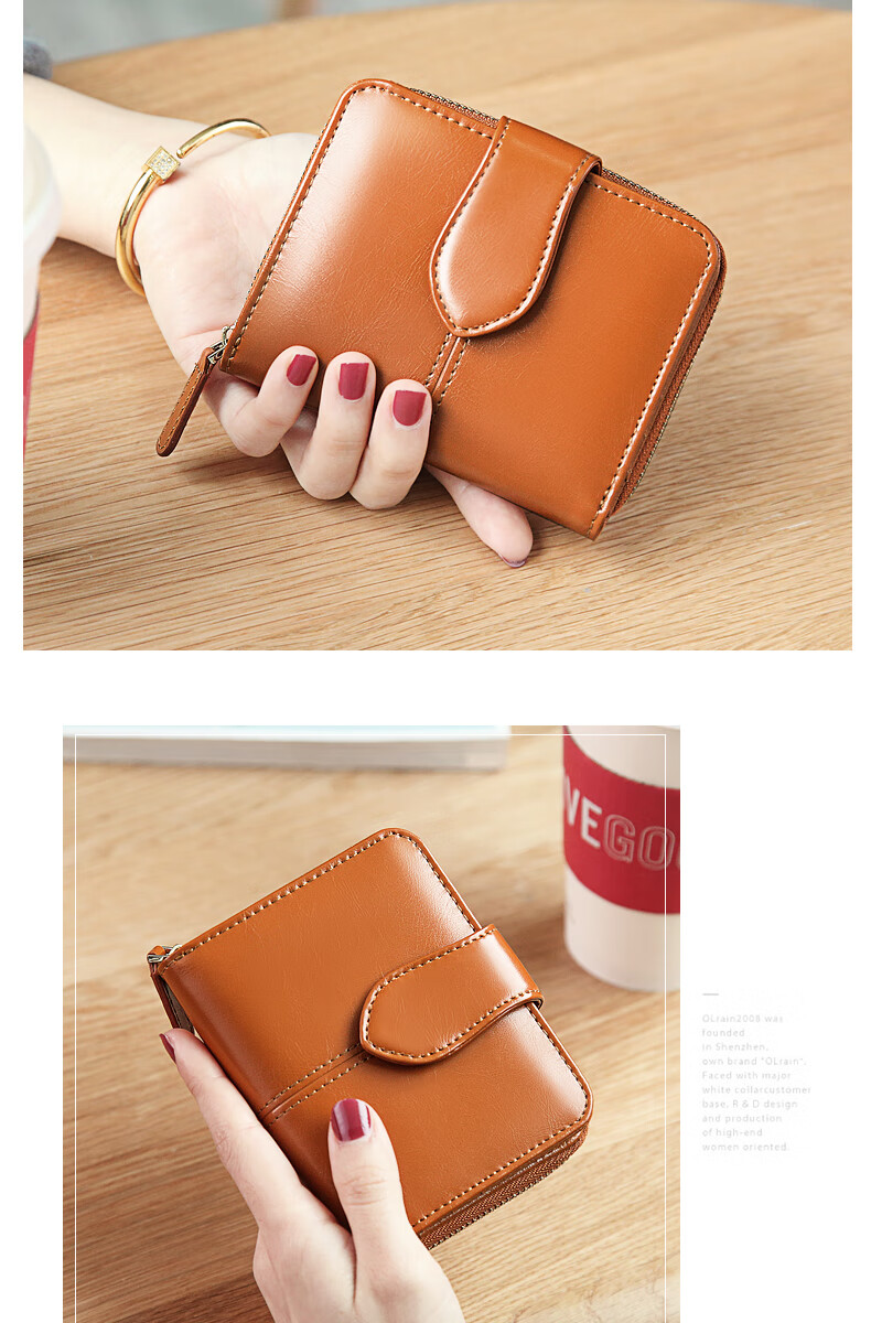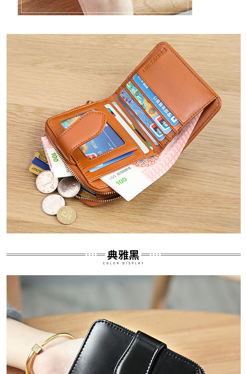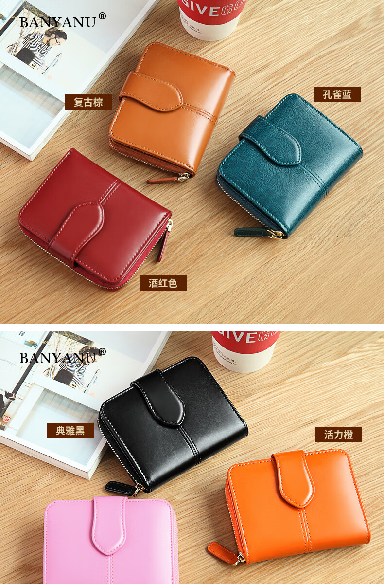 Banyanu women's wallet women's short style 2025 new fashion simple multi-functional folding genuine leather wallet compact wallet card holder brown (change position) - anti-theft brush