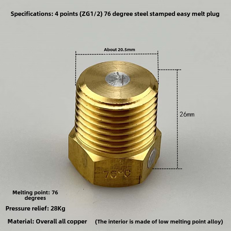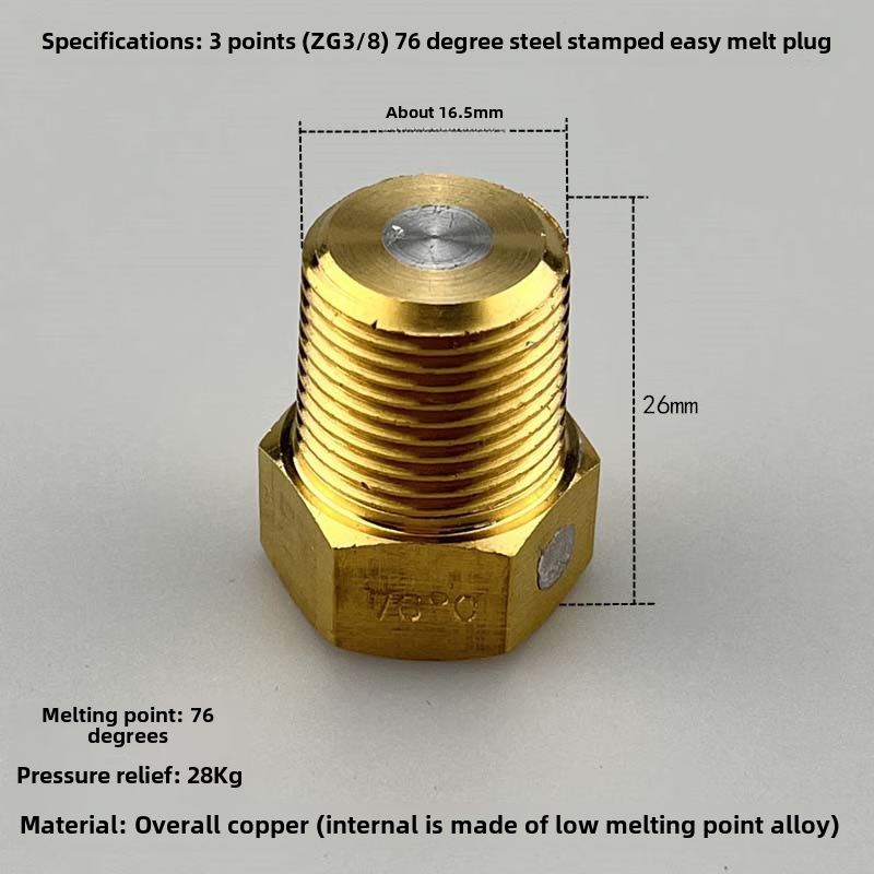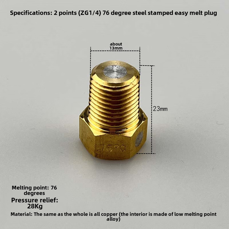 Air conditioning unit copper fusible plug insurance safety bolt 76 degree 100 degree tube shell condenser 2 points (ZG1/4) 76 degree steel stamp 1 piece