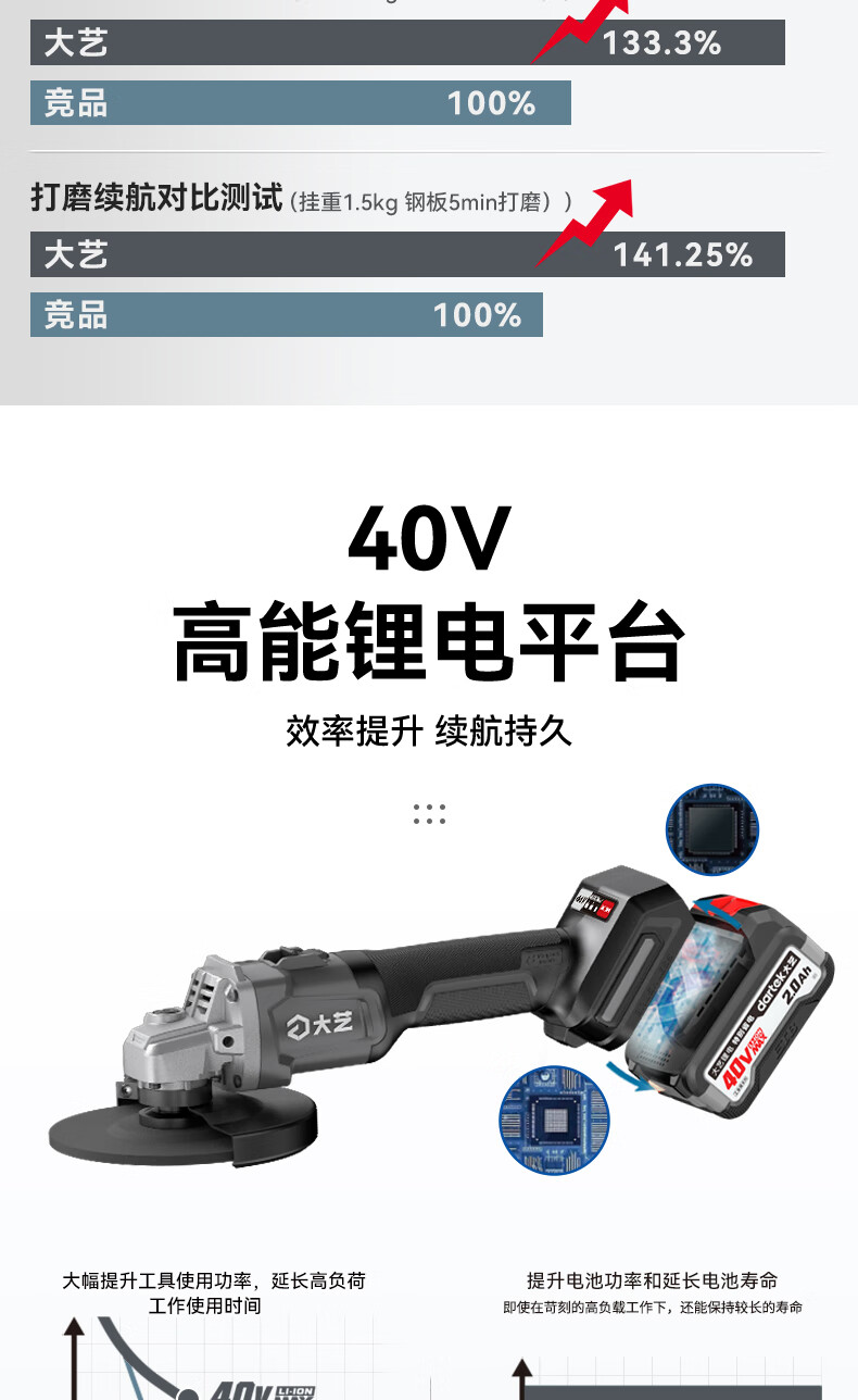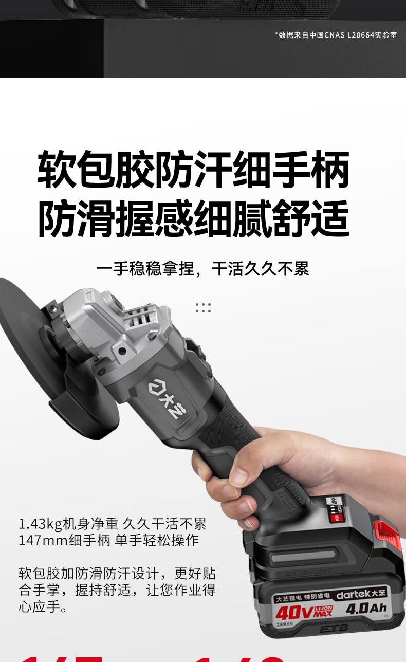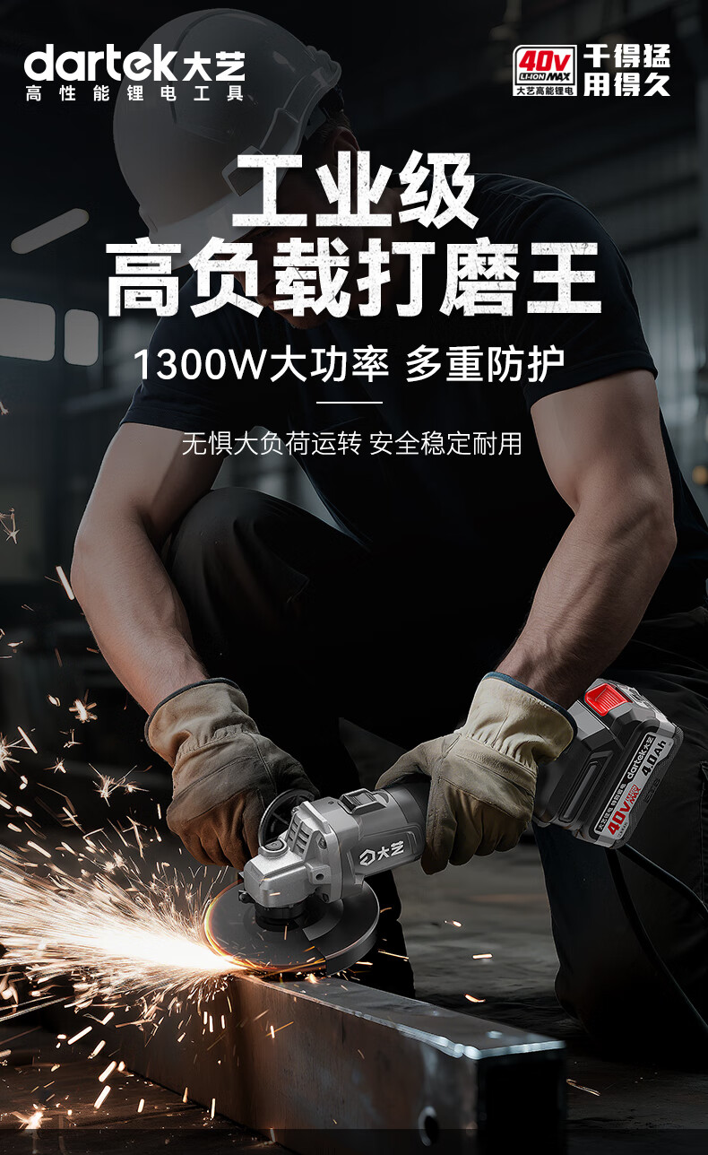 Dayi 40V lithium electric speed-adjustable angle grinder handheld cutting brushless grinding and polishing machine high-speed polishing machine 40V60-150 4.0Ah one battery and one charge + tool kit