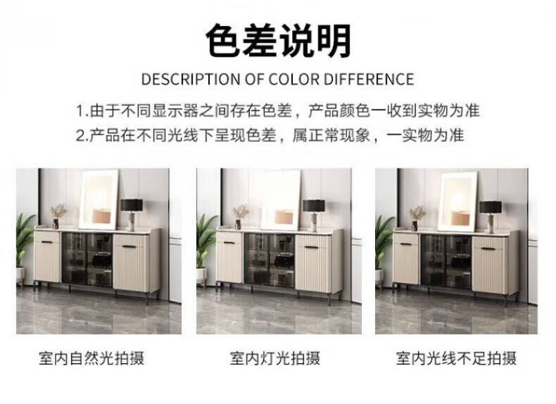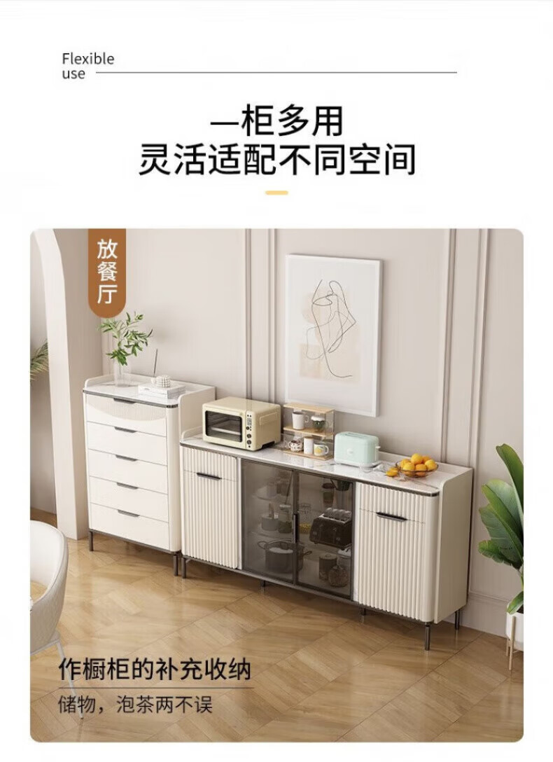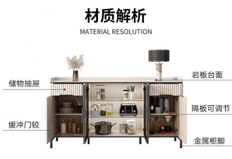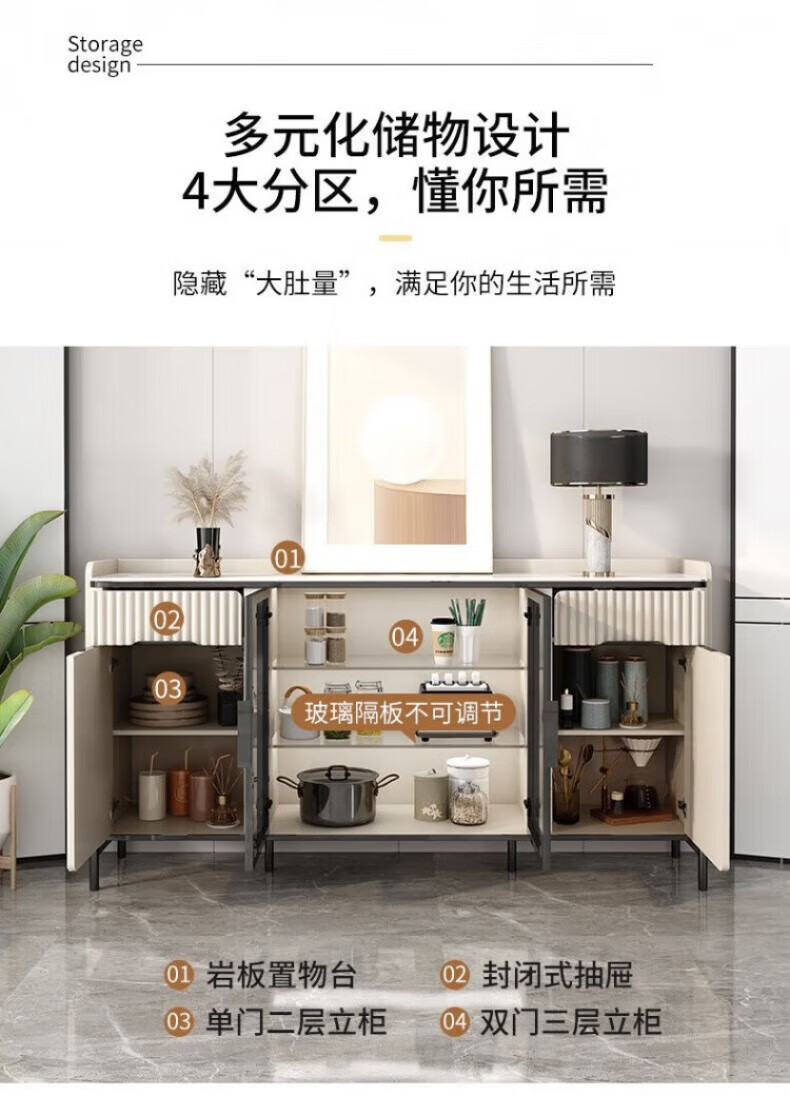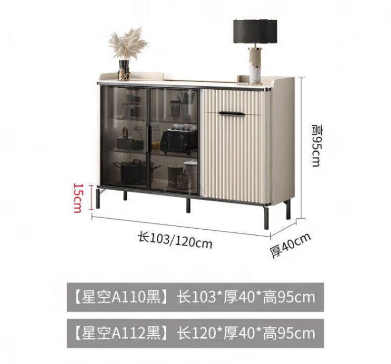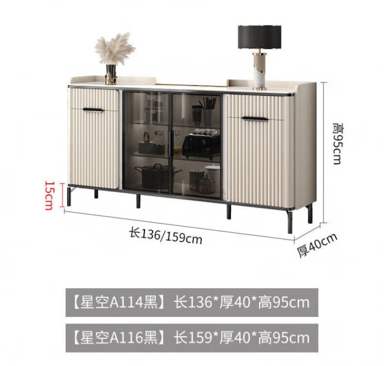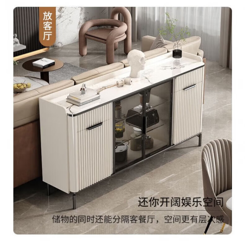 WSNON2026 new slate sideboard with glass door against the wall light luxury integrated wine cabinet tea cabinet multifunctional living room black metal + 1.36 meter long sideboard