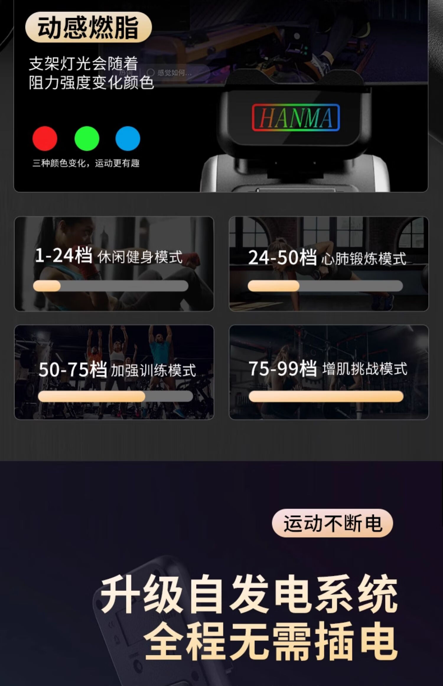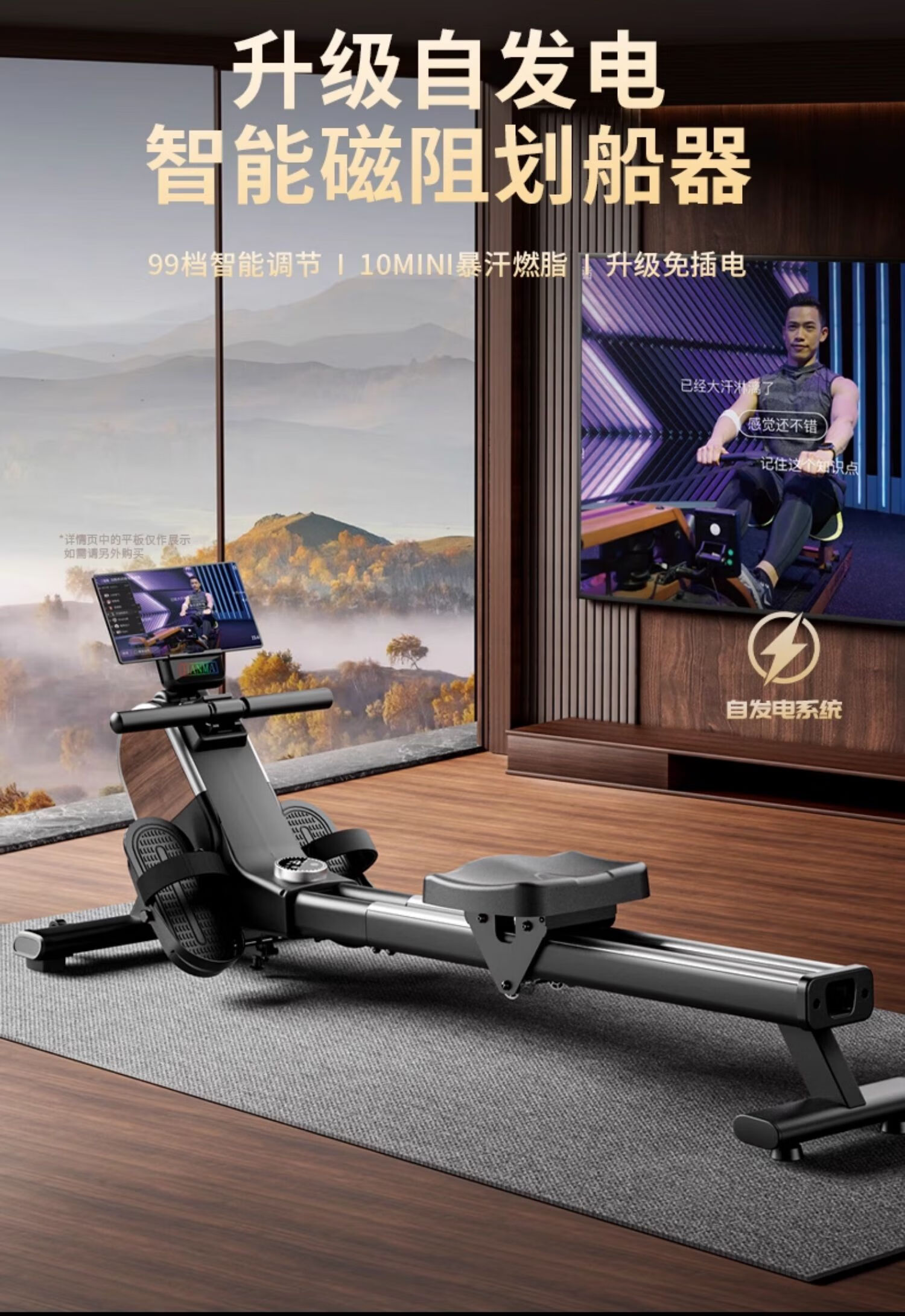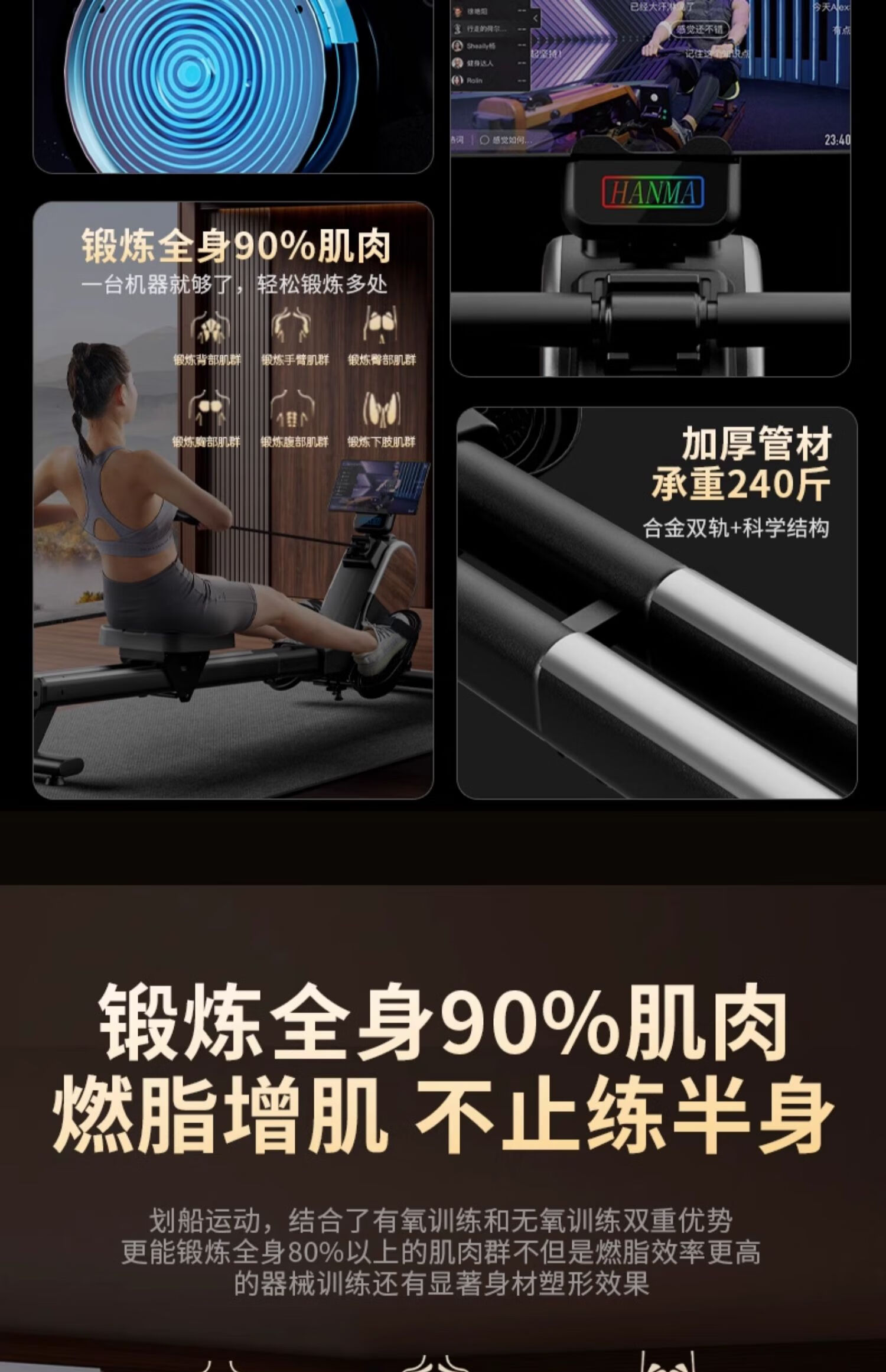 Hanma Intelligent Self-Powered Rowing Machine Home Fat Burning Training Magnetic Silent Rowing Machine Sports Indoor Aerobic Fitness Standard Model Athens Black/Manually Adjustable Resistance