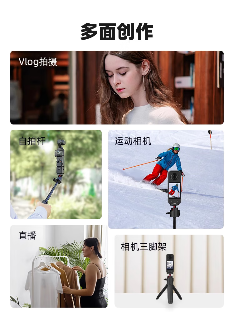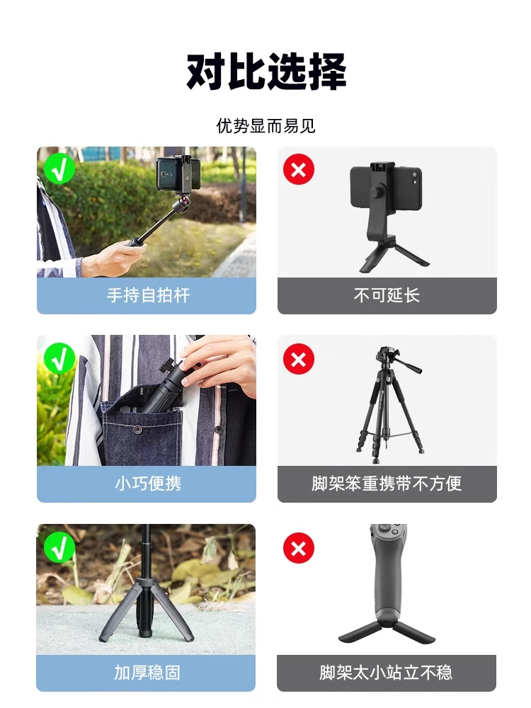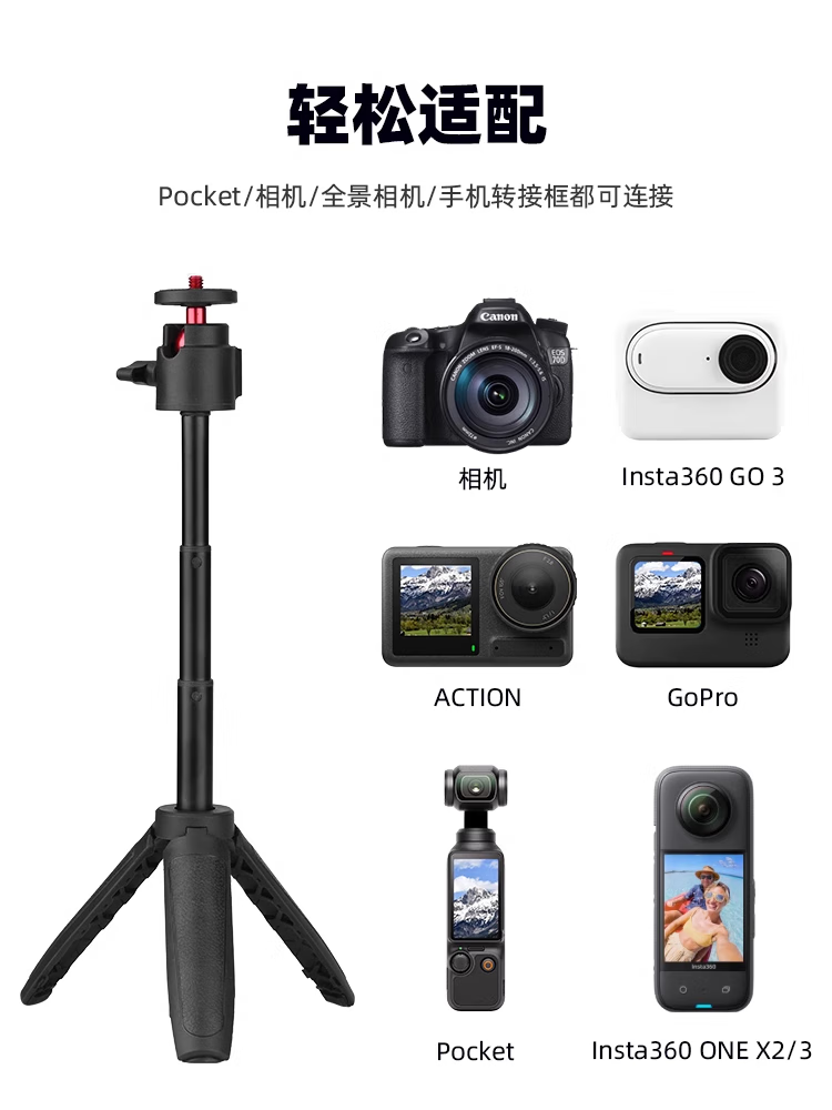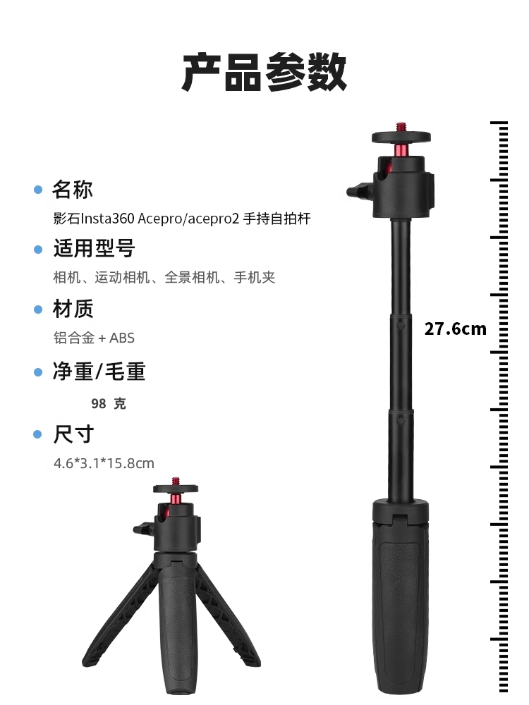 Suitable for Shadow Stone Insta360 Ace/Acepro2 portable Vlog selfie telescopic pole accessories anti-shake tripod handheld selfie tripod - mini portable retractable