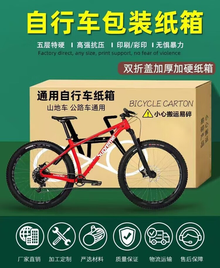 Bicycle carton, general bicycle off-road vehicle, express logistics, road car packaging box, shipping carton express, 140*23*80cm, adult general vehicle - need to be dismantled, one carton + 20 meters of bubble film (carton is sold)