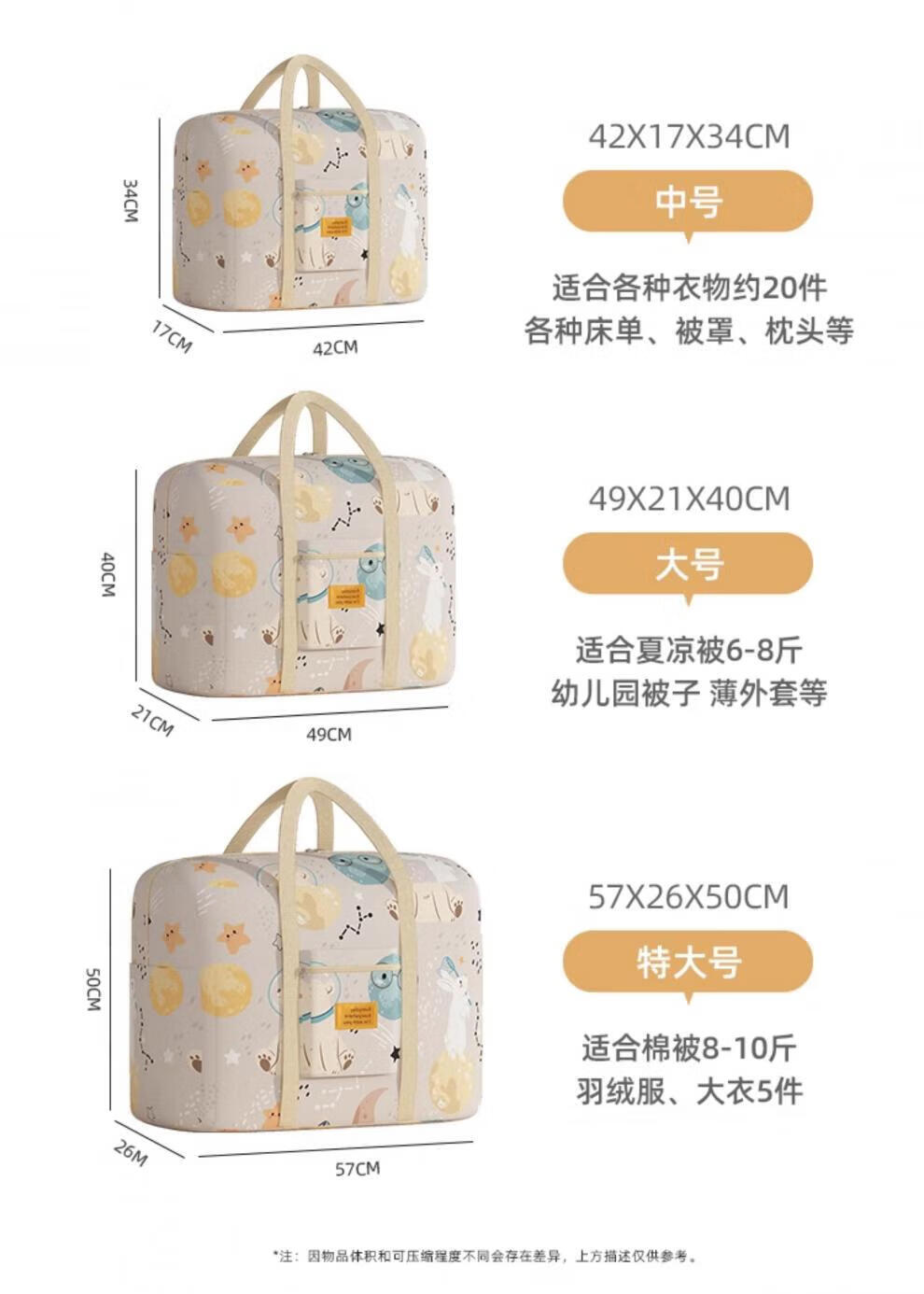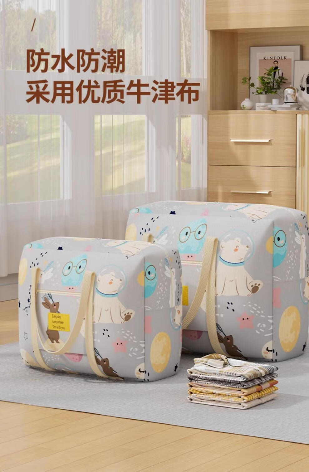 MPPMCK Oxford cloth quilt storage bag with large capacity for clothing, luggage, moving, packing quilt organization bag, moisture-proof space bear, upgraded Oxford cloth, wear-resistant and durable, large size 49*21*40CM, recommended for autumn quilt clothing 6