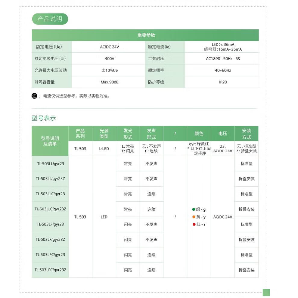 Siemens APT three-color light warning light 24V alarm light machine tool tower light LLC/gyr23Z high volume vertical TL-503LL_gyr23 (always on_silent_