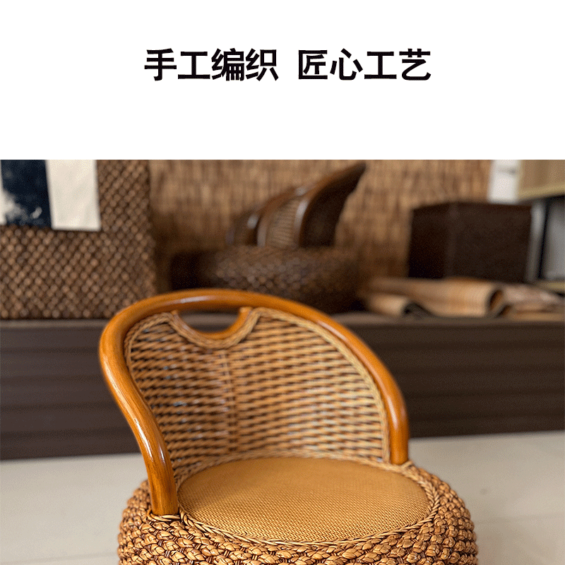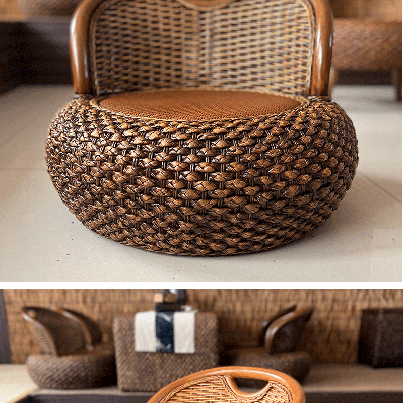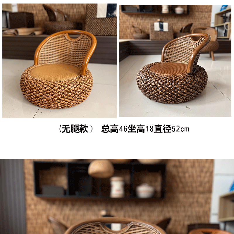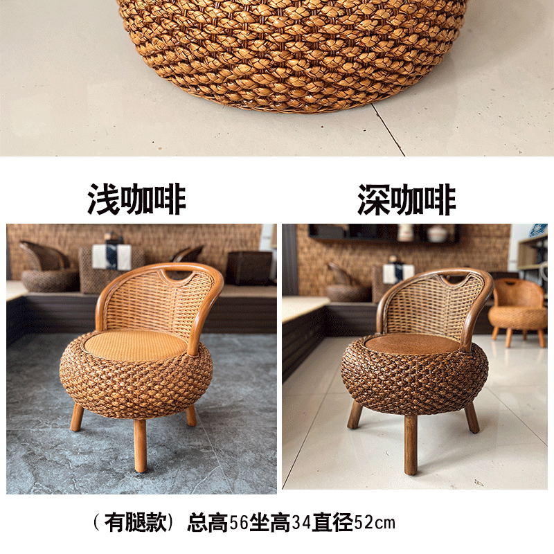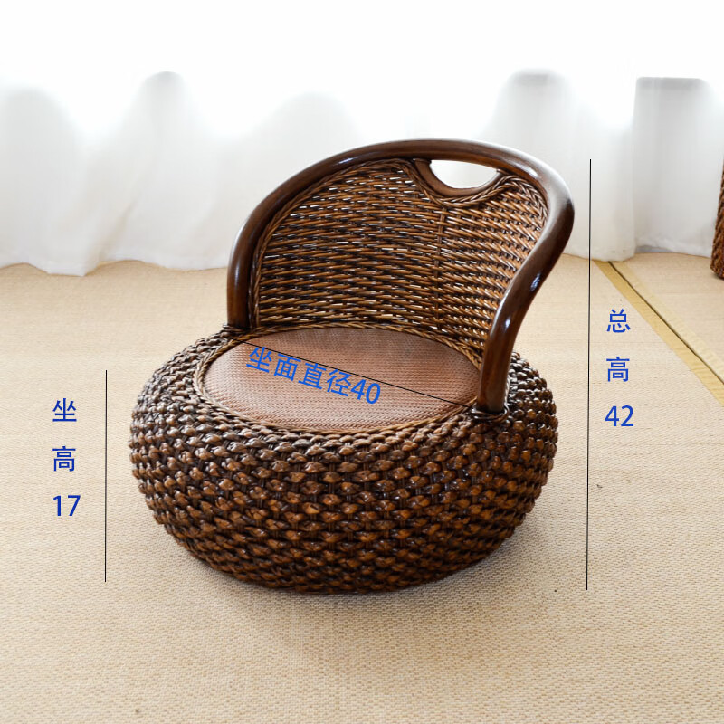 Shantou Lincun Rattan Rattan Chair Backrest Single Small Chair New Chinese Style Simple Balcony Home Living Room Coffee Table Tatami Low Stool Light Coffee (With Legs)
