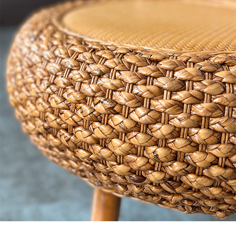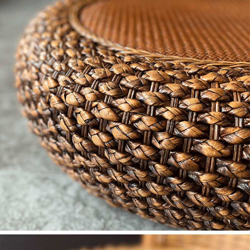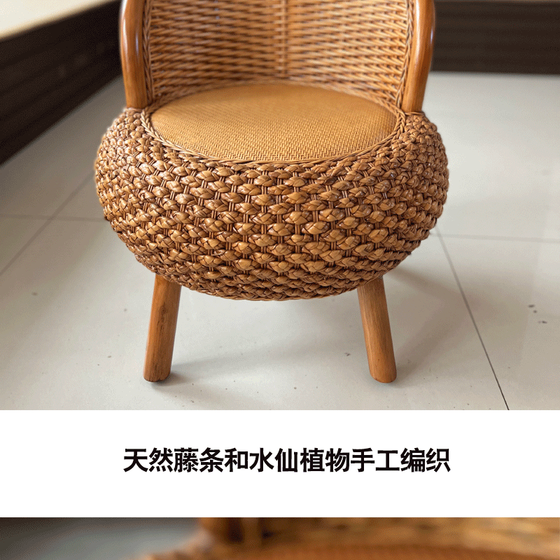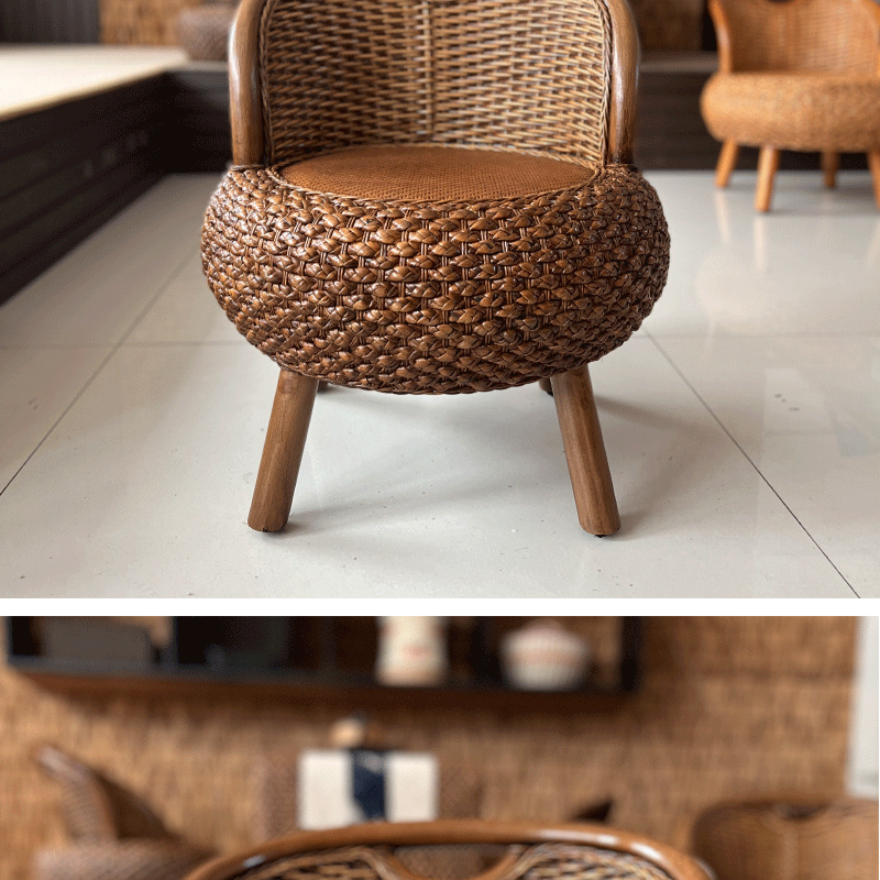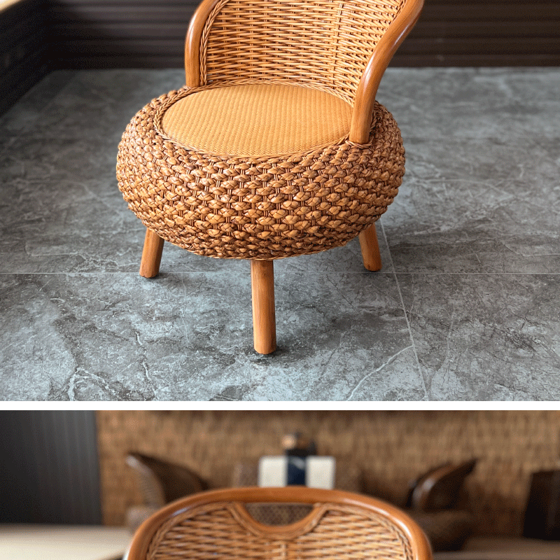 Shantou Lincun Rattan Rattan Chair Backrest Single Small Chair New Chinese Style Simple Balcony Home Living Room Coffee Table Tatami Low Stool Light Coffee (With Legs)