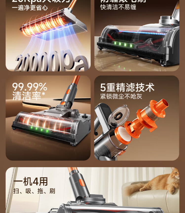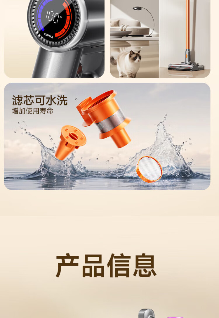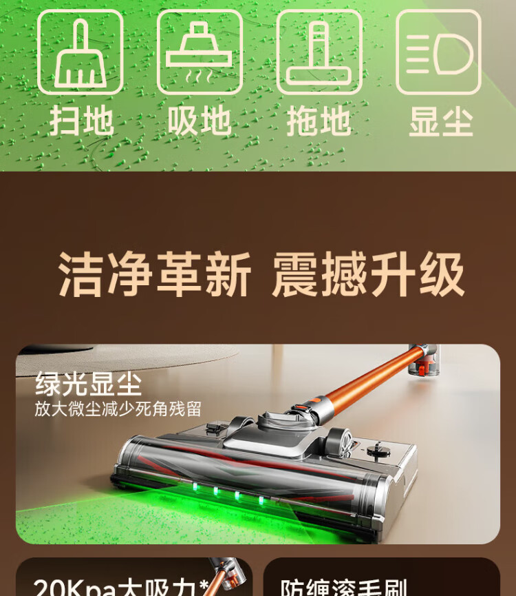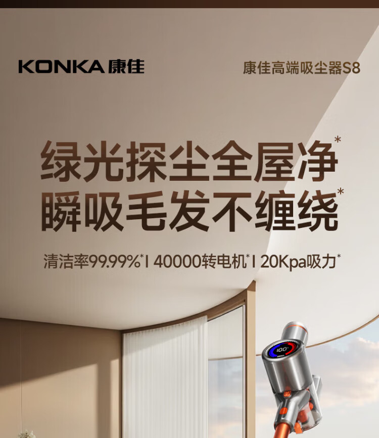 Konka Konka Vacuum Cleaner S8 New Household Wet and Dry Sweeping, Suction and Mopping Integrated High Power Green Light Dust Display Handheld Floor Scrubber Violet Water Tank Model 20,000pa Buy 1 Get 7 Vacuum and Mop Integrated Machine