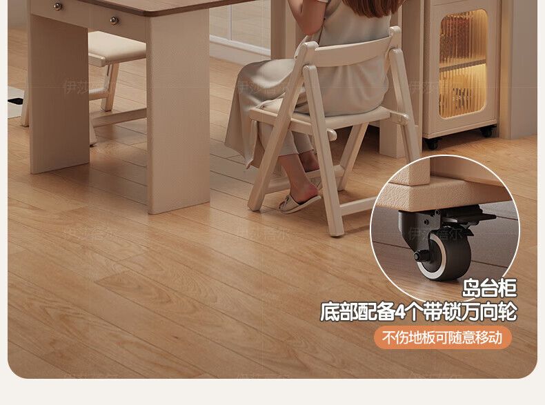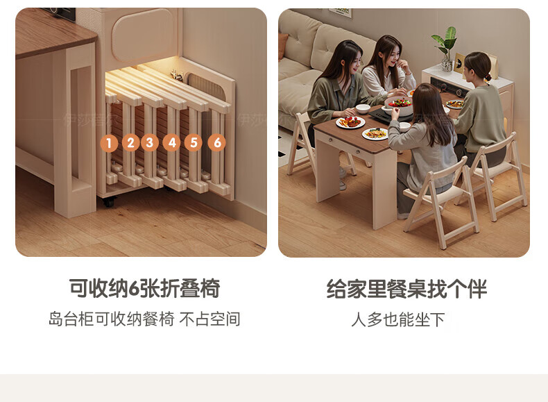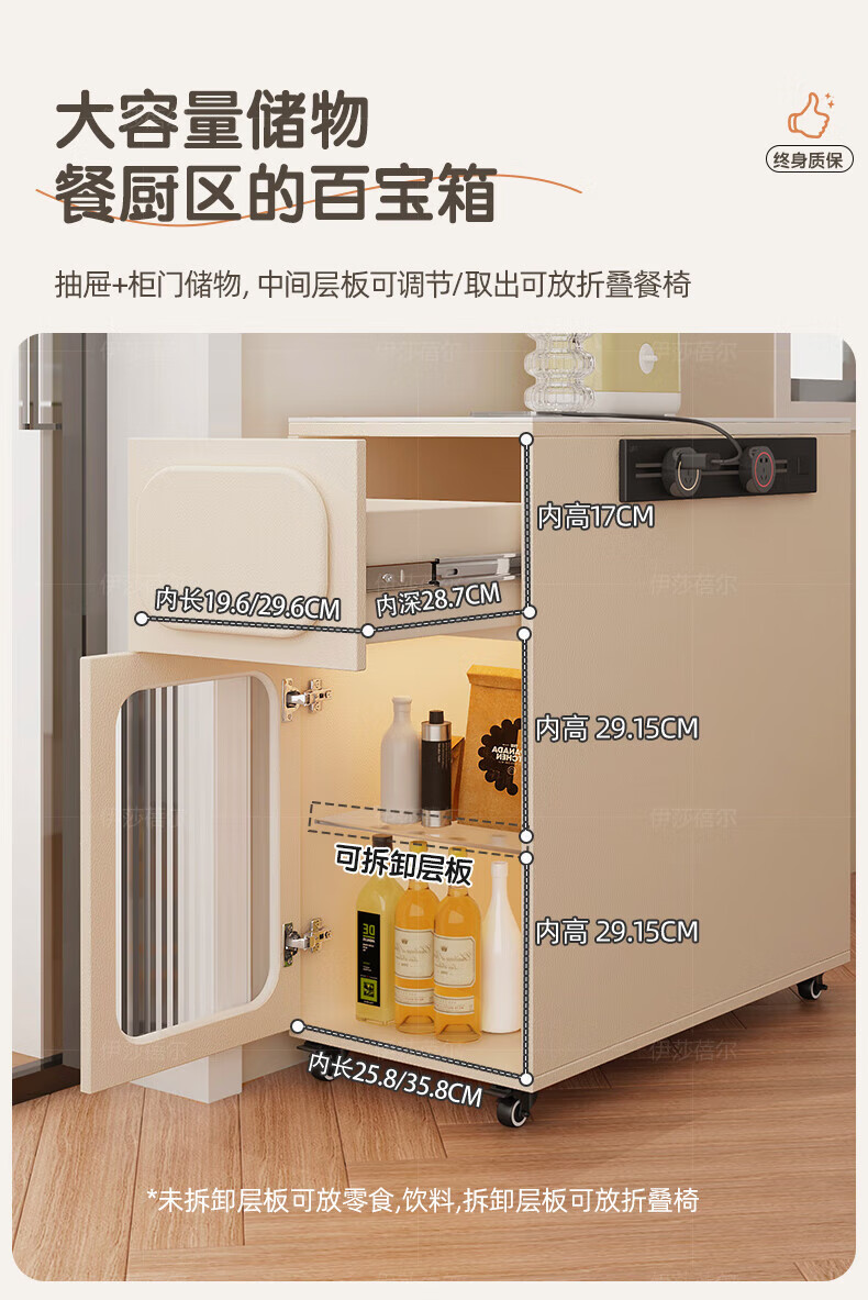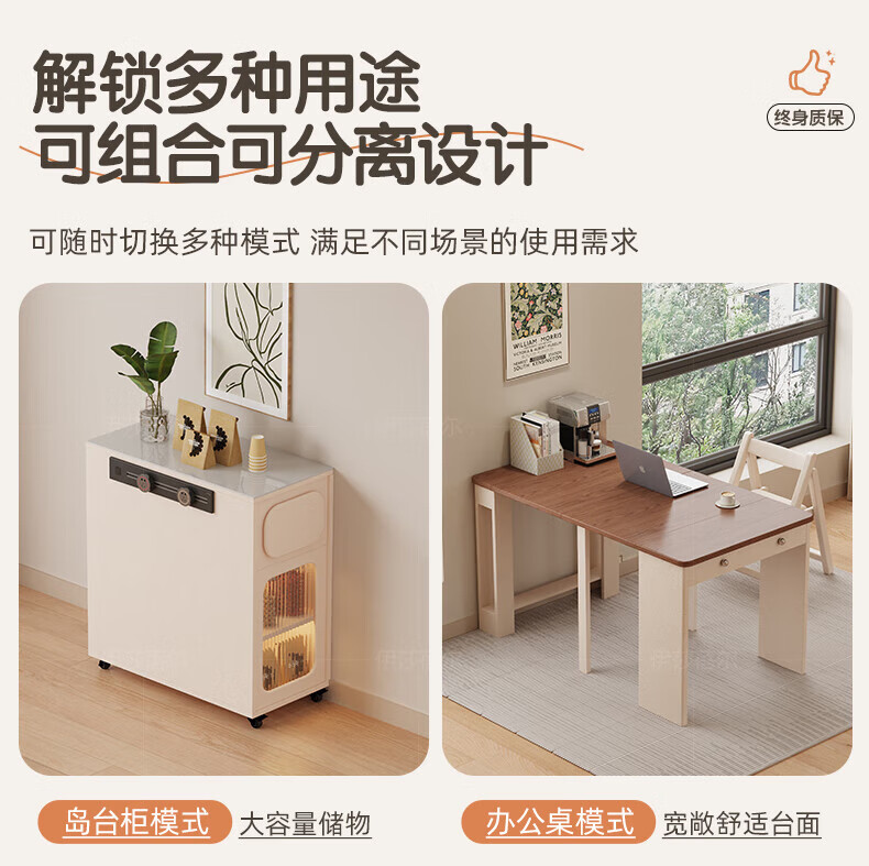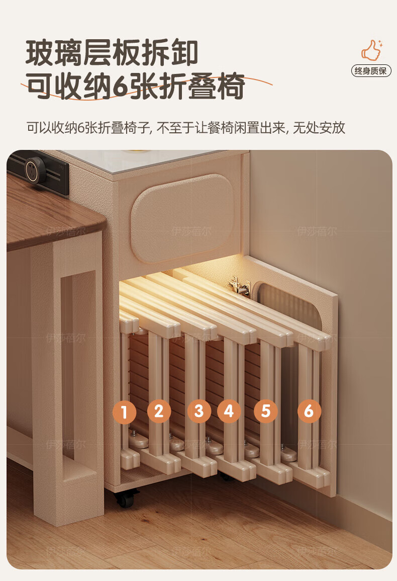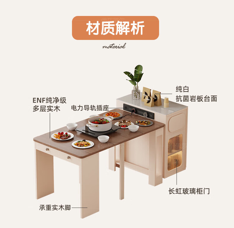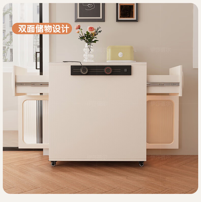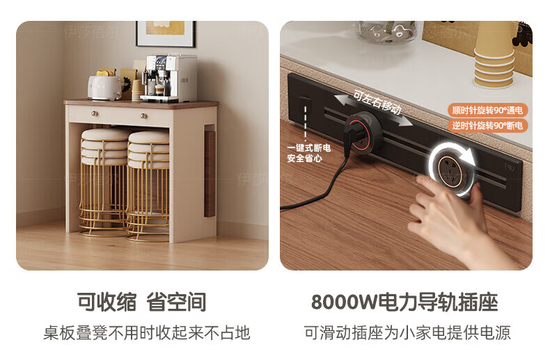Isabel 80cm wide island dining table integrated retractable small apartment living room solid wood storage office desk sideboard丨built-in 8000w mobile rail socket