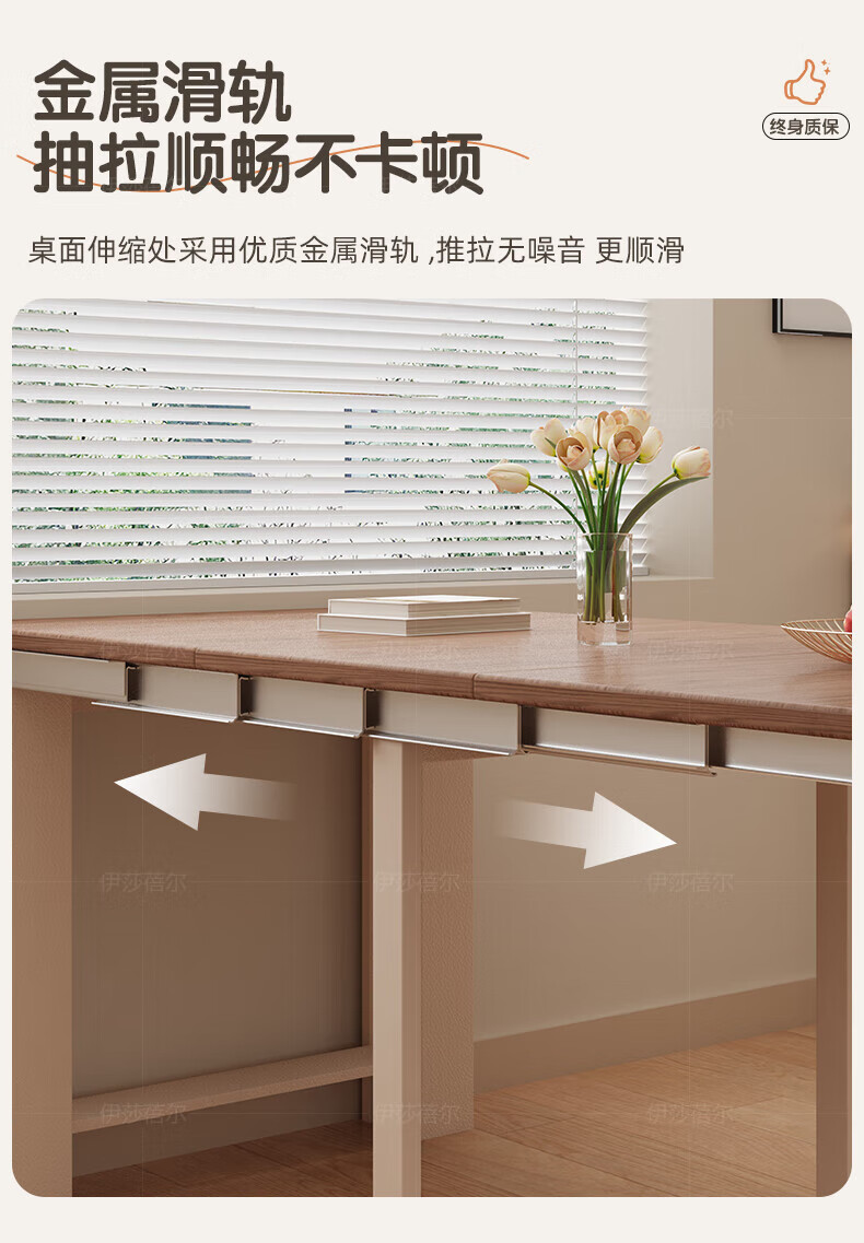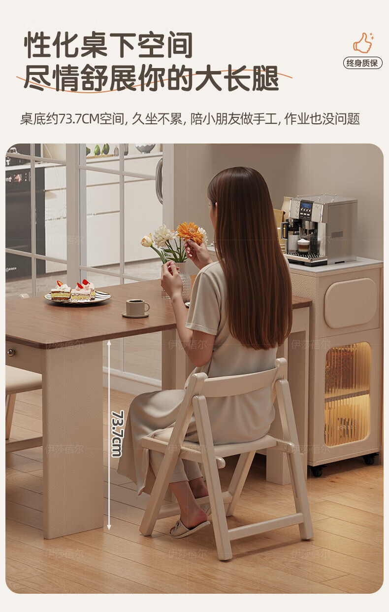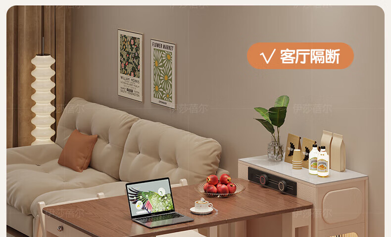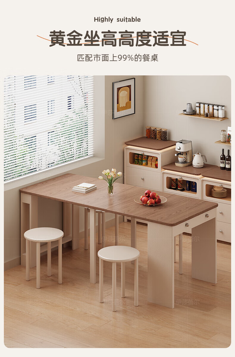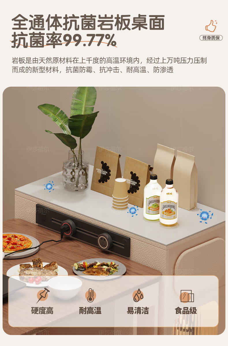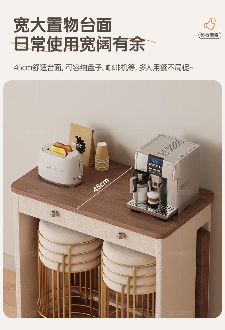 Isabel 80cm wide island dining table integrated retractable small apartment living room solid wood storage office desk sideboard丨built-in 8000w mobile rail socket