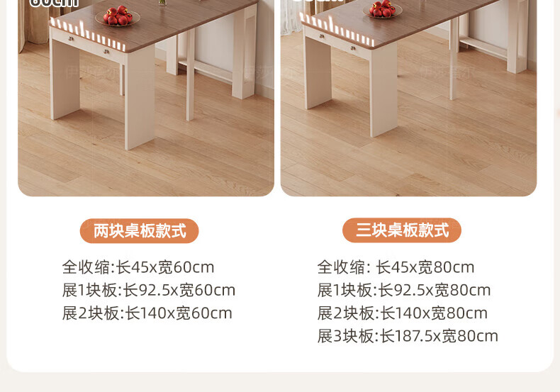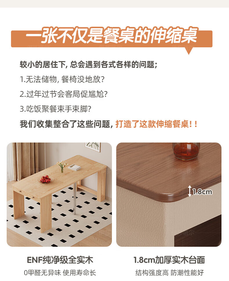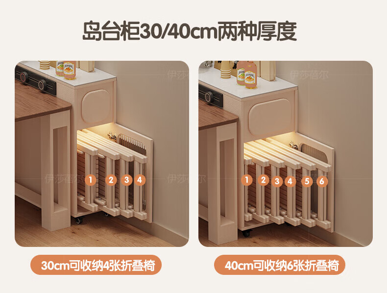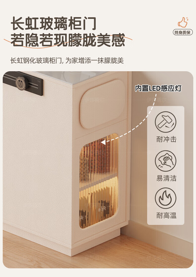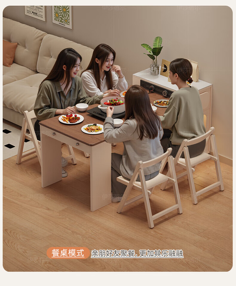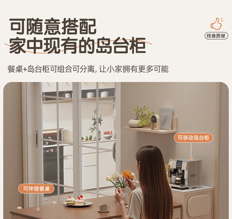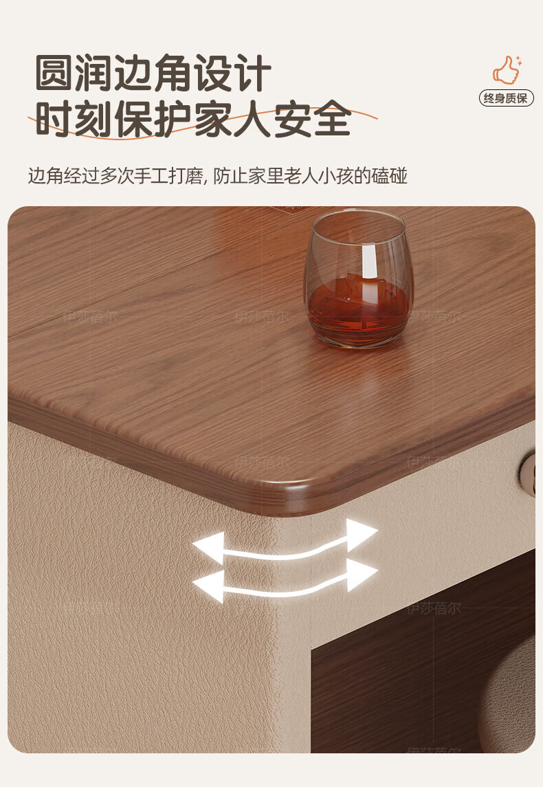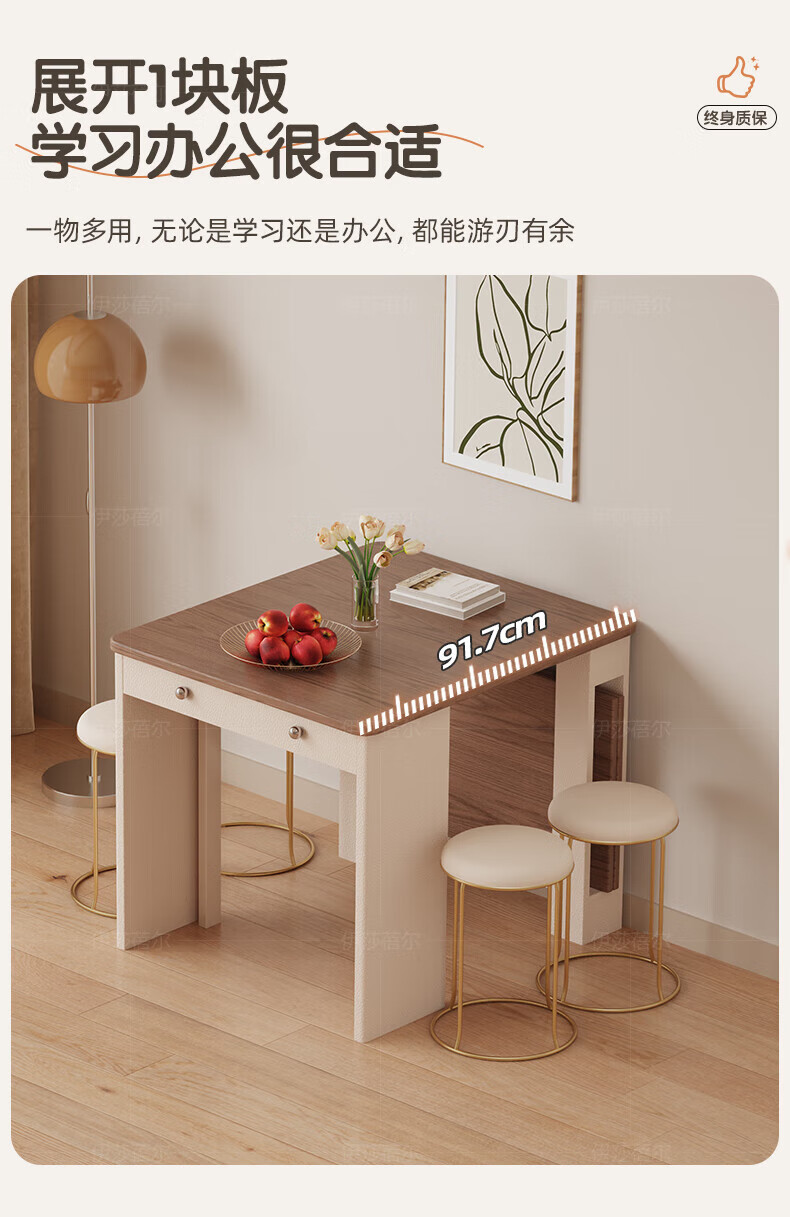 Isabel 80cm wide island dining table integrated retractable small apartment living room solid wood storage office desk sideboard丨built-in 8000w mobile rail socket