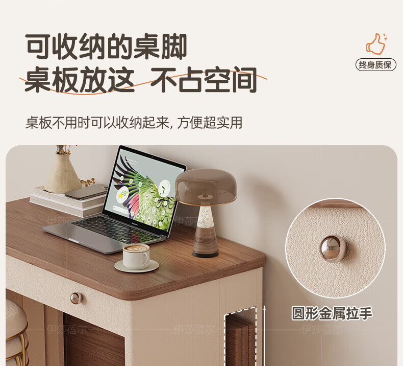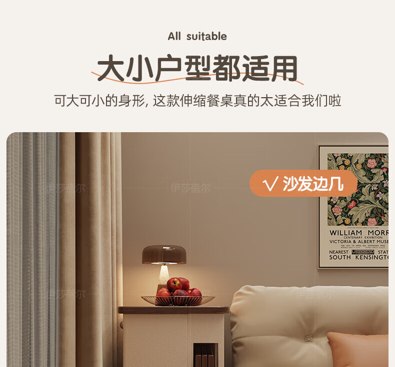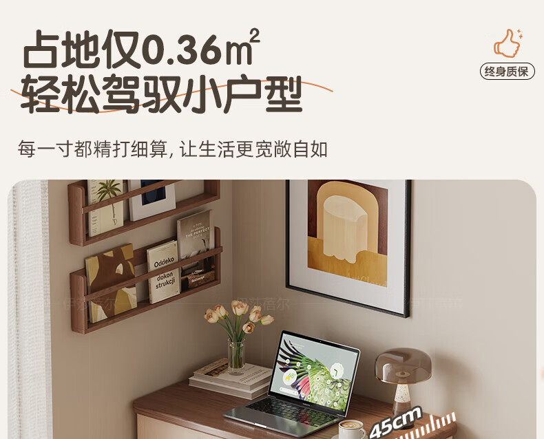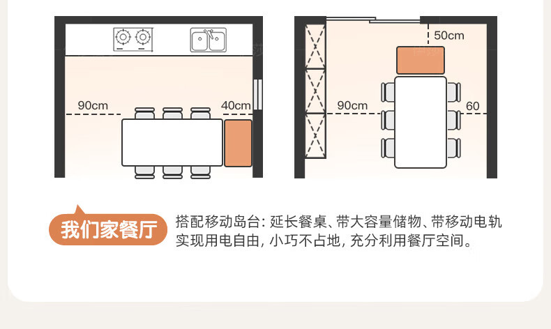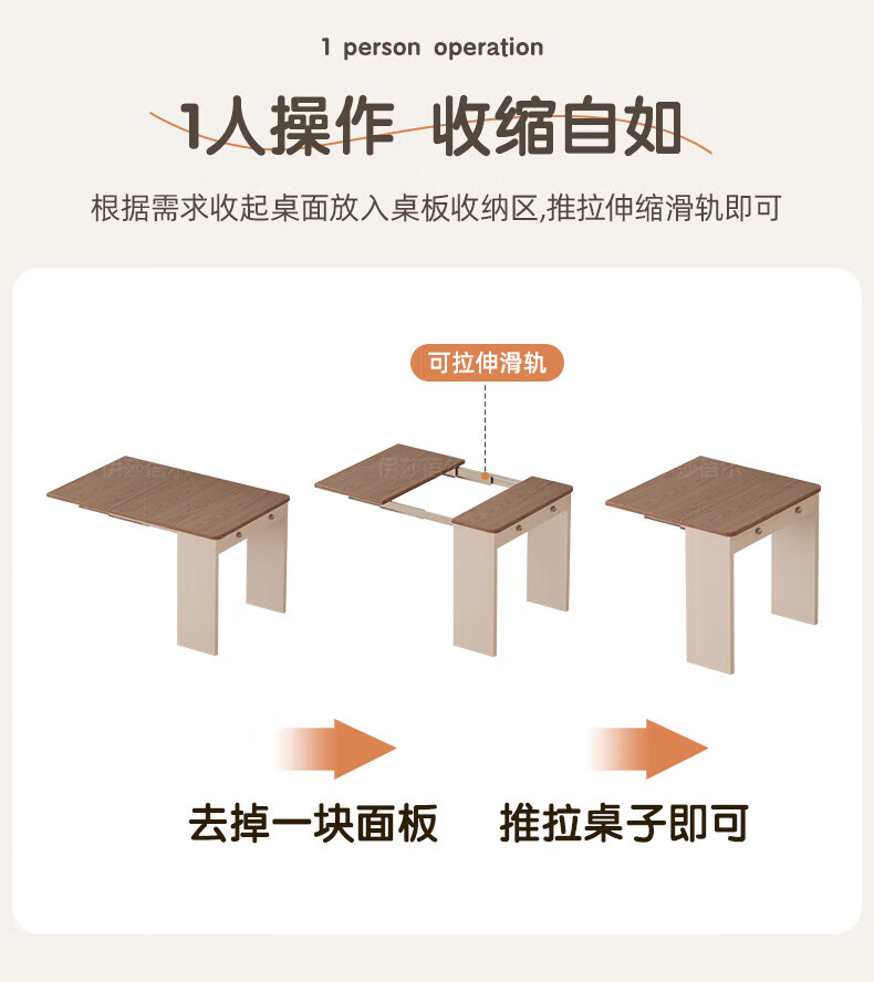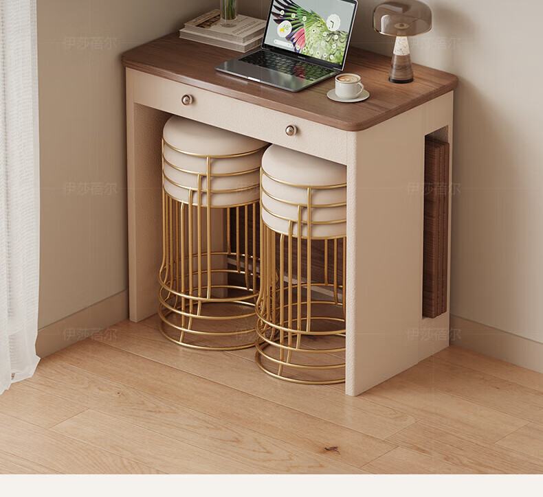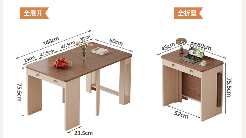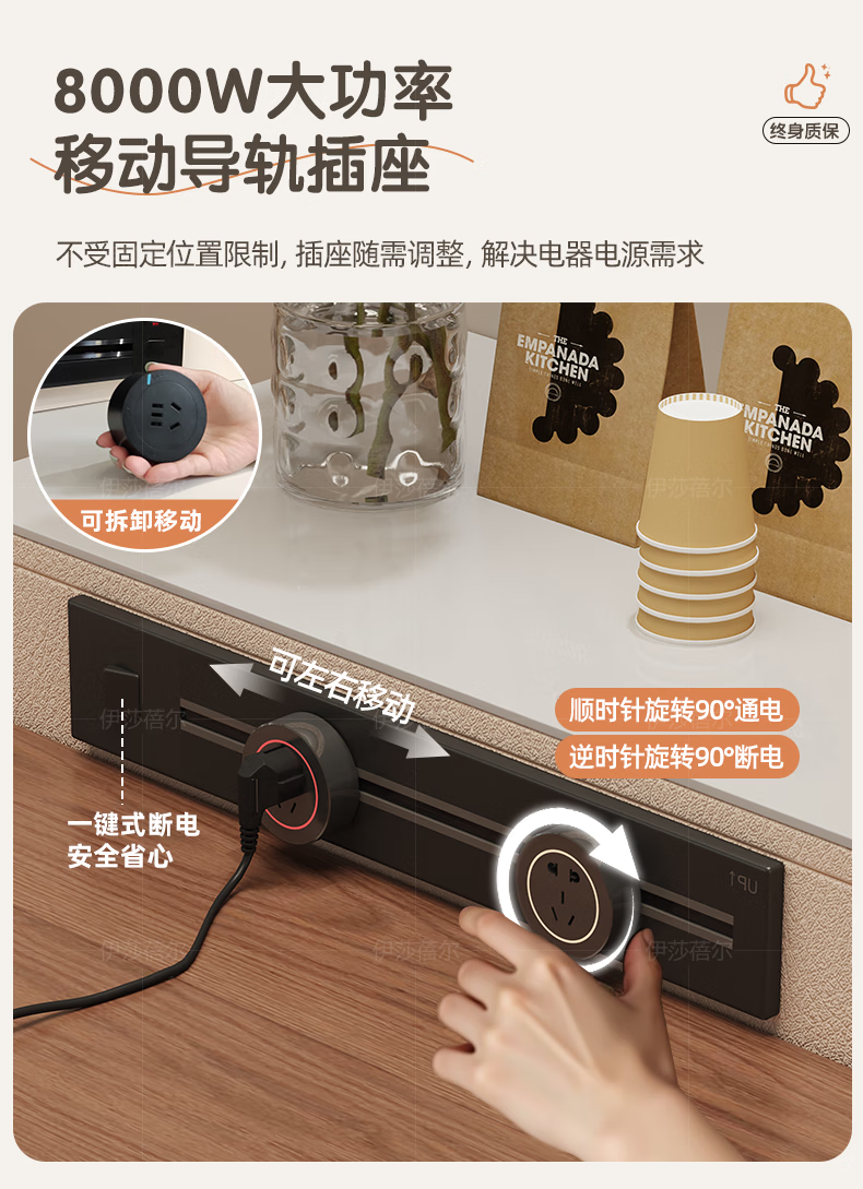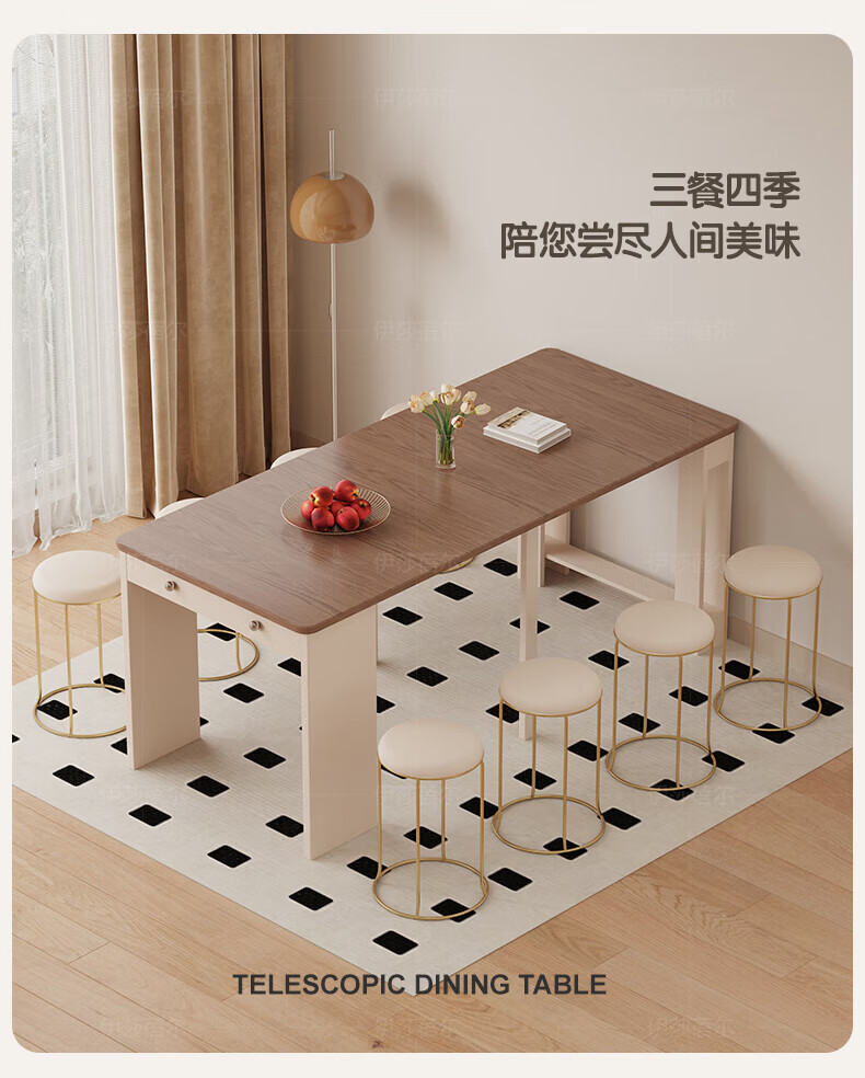 Isabel 80cm wide island dining table integrated retractable small apartment living room solid wood storage office desk sideboard丨built-in 8000w mobile rail socket