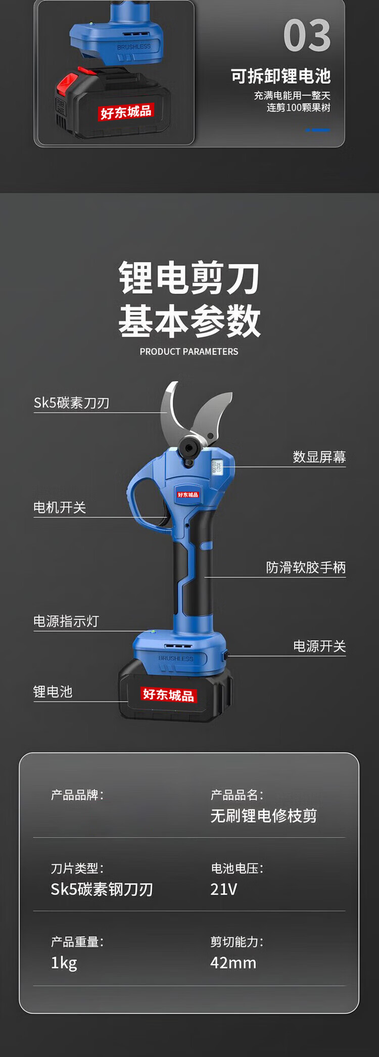 Dongcheng Dongcheng Electric Scissors Fruit Tree Pruning Shears Rechargeable Branch Pruning Lithium-ion Scissors Gardening Branch Pruning Artifact 8.0 Brushless Intelligent Electric Display Model 10 Batteries One Battery + Gift Electric Pruning Shears Brushless Motor/Sharp Blade