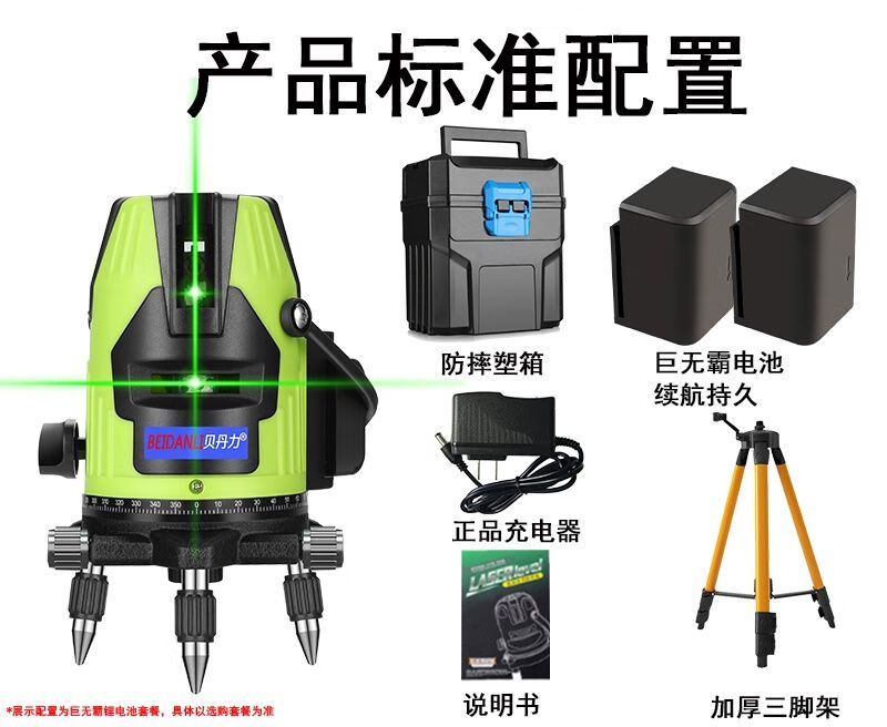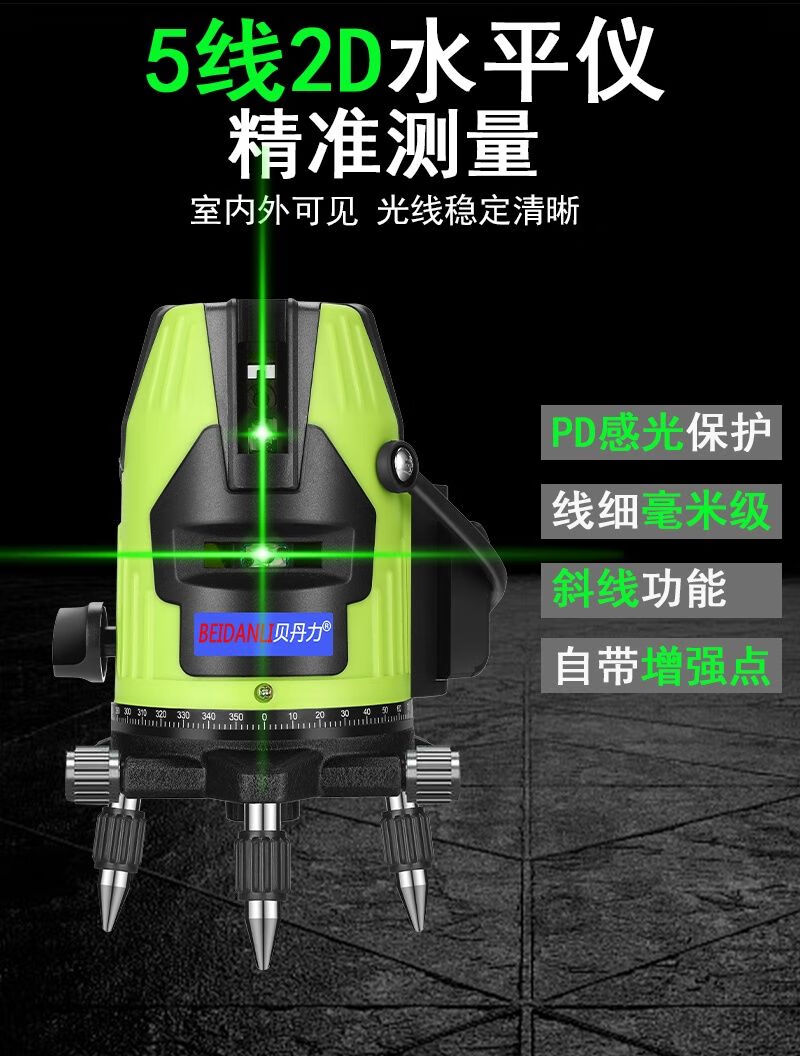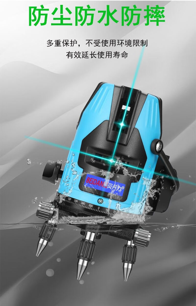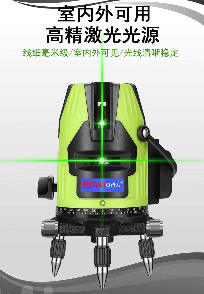 Infrared level meter, blue light laser, 3-line, 5-line leveling meter, strong light, thin line, high-precision automatic line-making and line-casting instrument, blue-ray 5-line + dual lithium battery