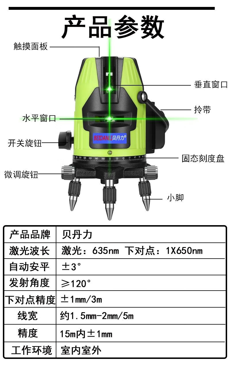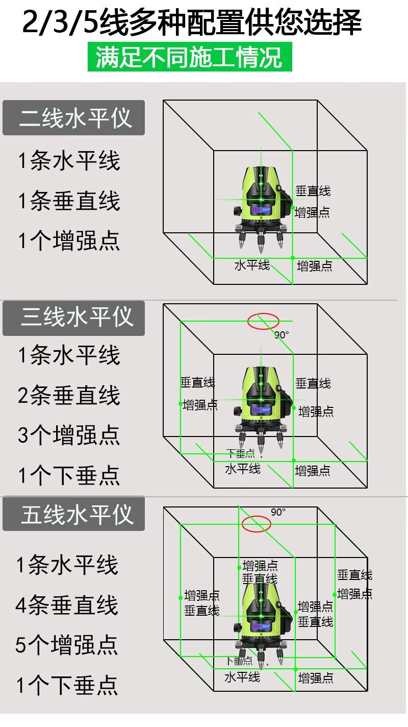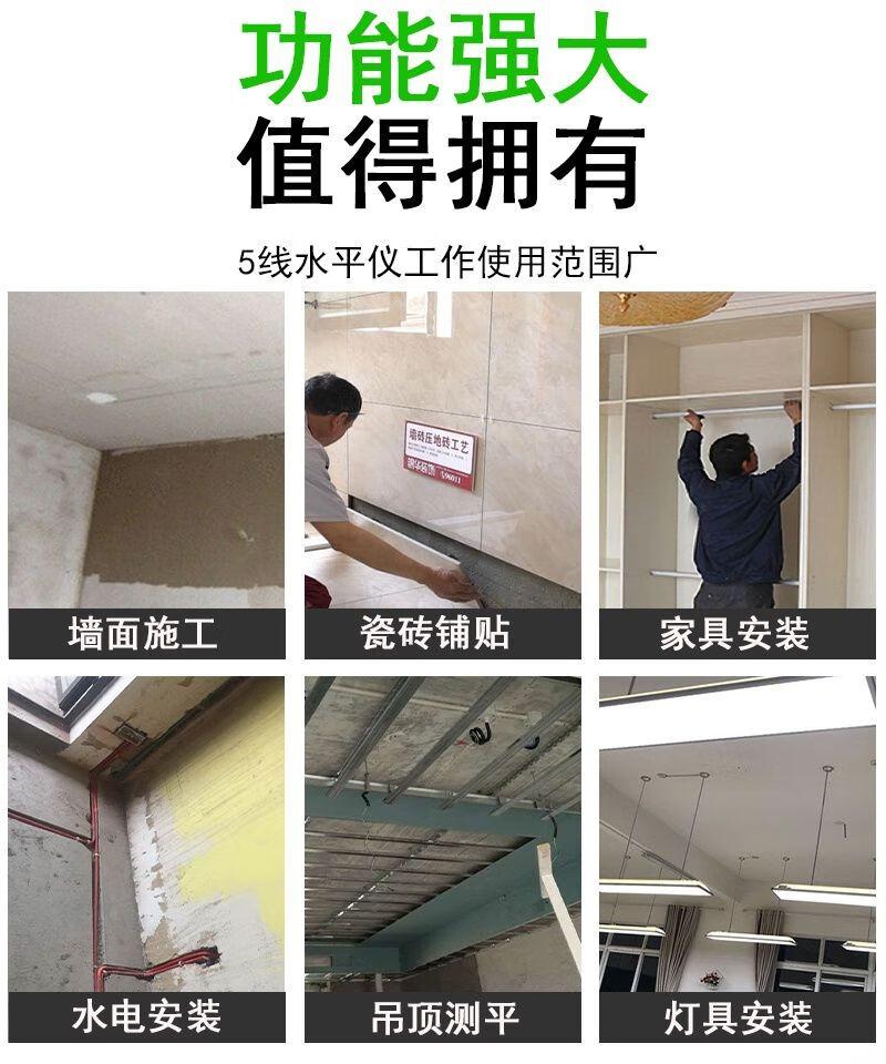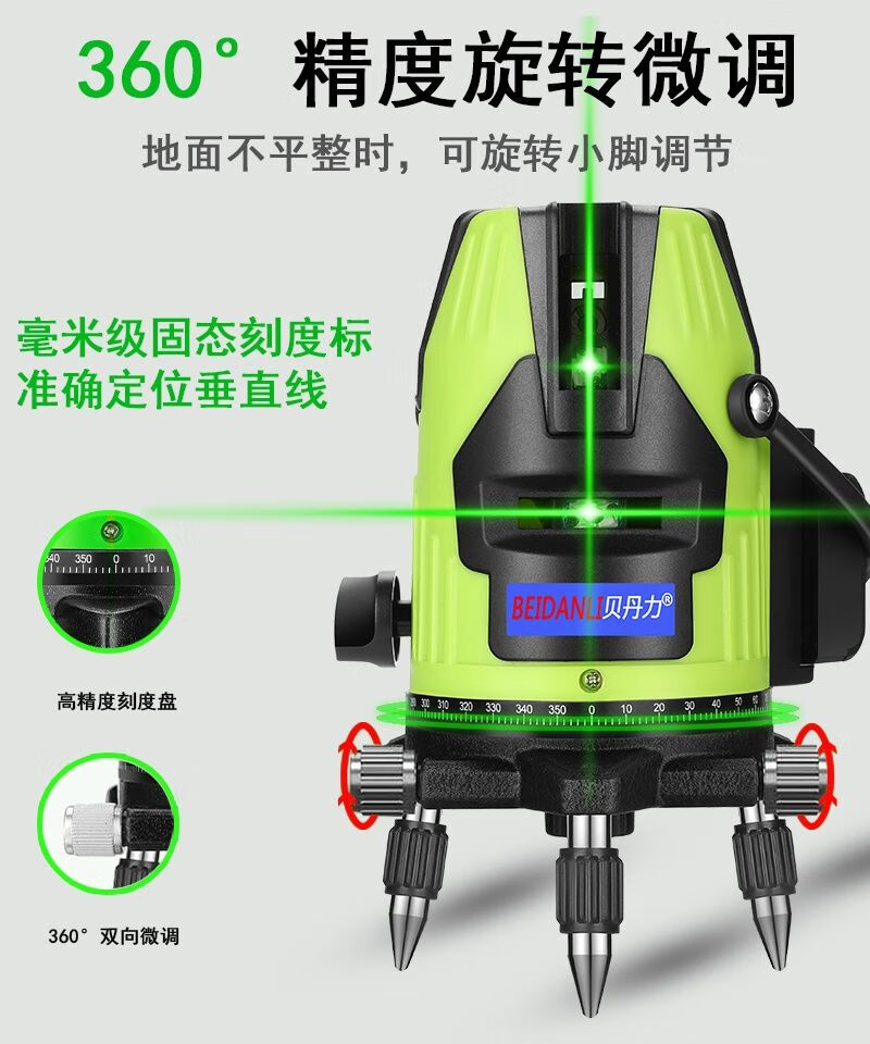 Infrared level meter, blue light laser, 3-line, 5-line leveling meter, strong light, thin line, high-precision automatic line-making and line-casting instrument, blue-ray 5-line + dual lithium battery