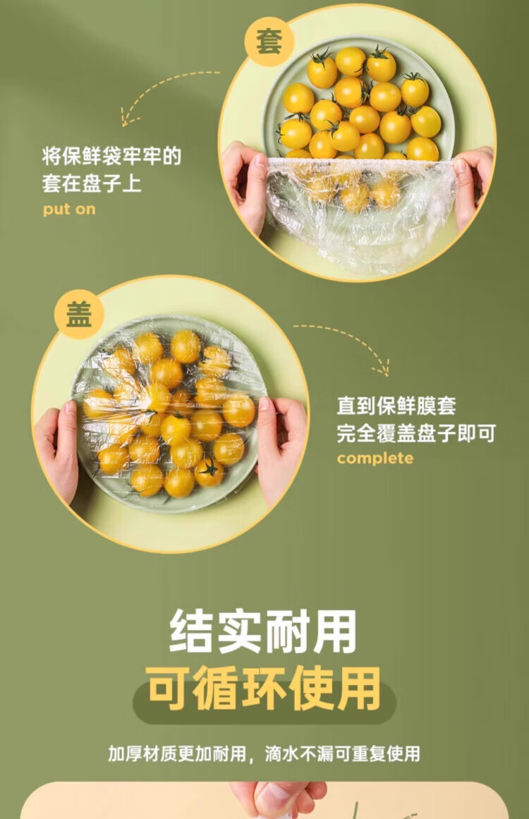 AILUKI Japanese food-grade cling film cover antibacterial disposable fresh-keeping bag with elastic household leftovers set bowl and plate storage 1000 pieces in large quantities 2 packages sold the most