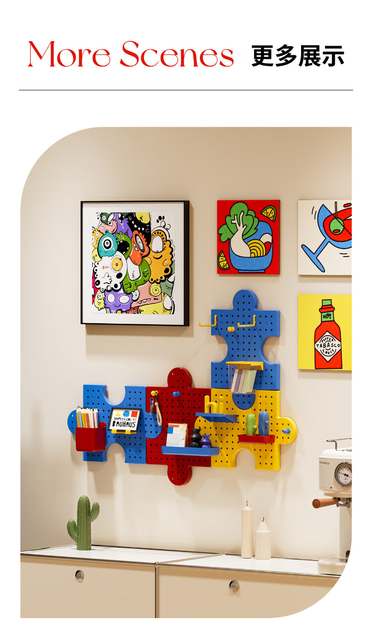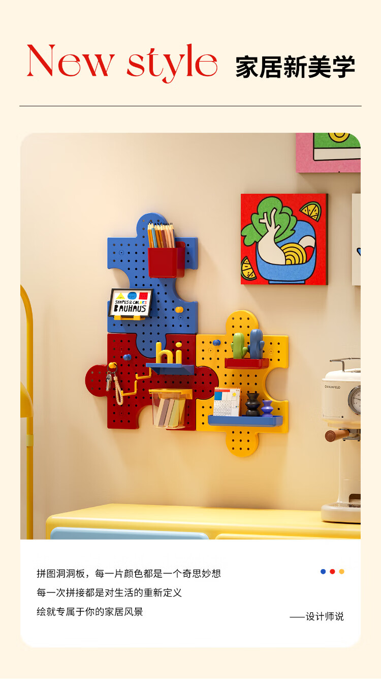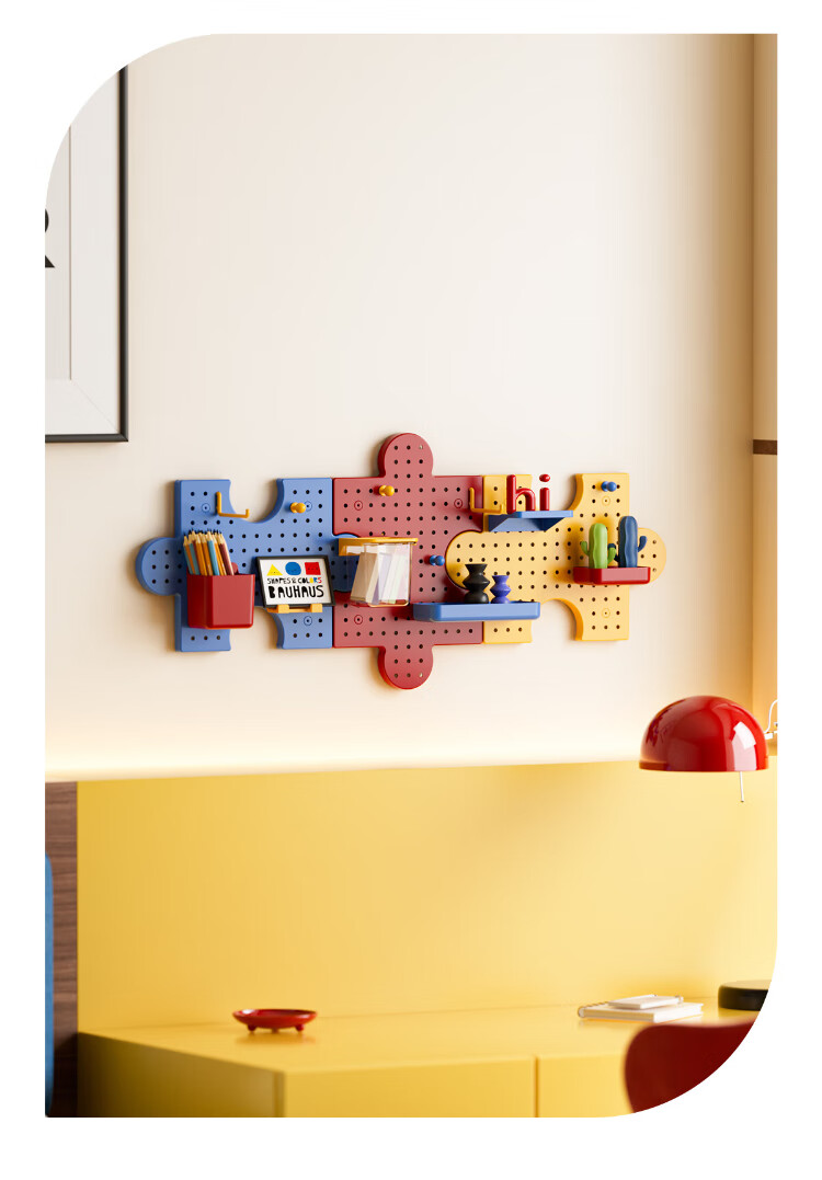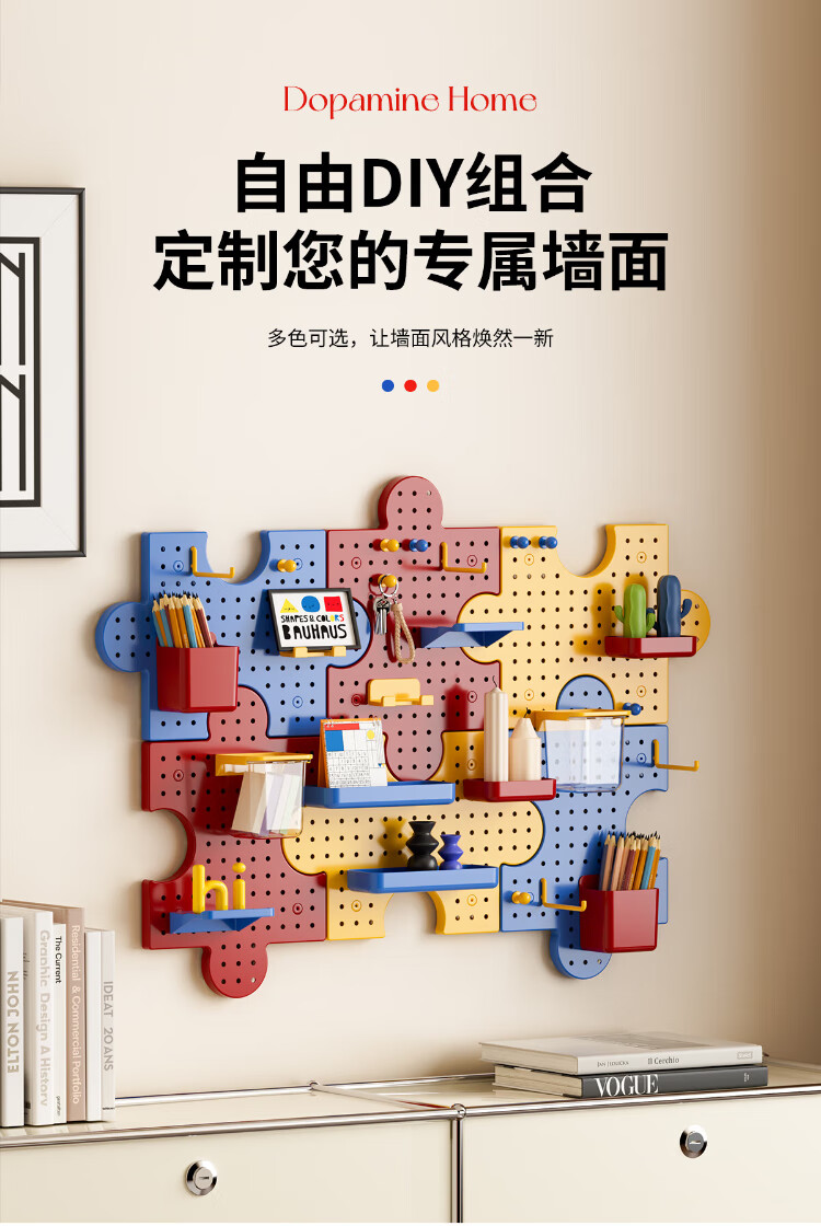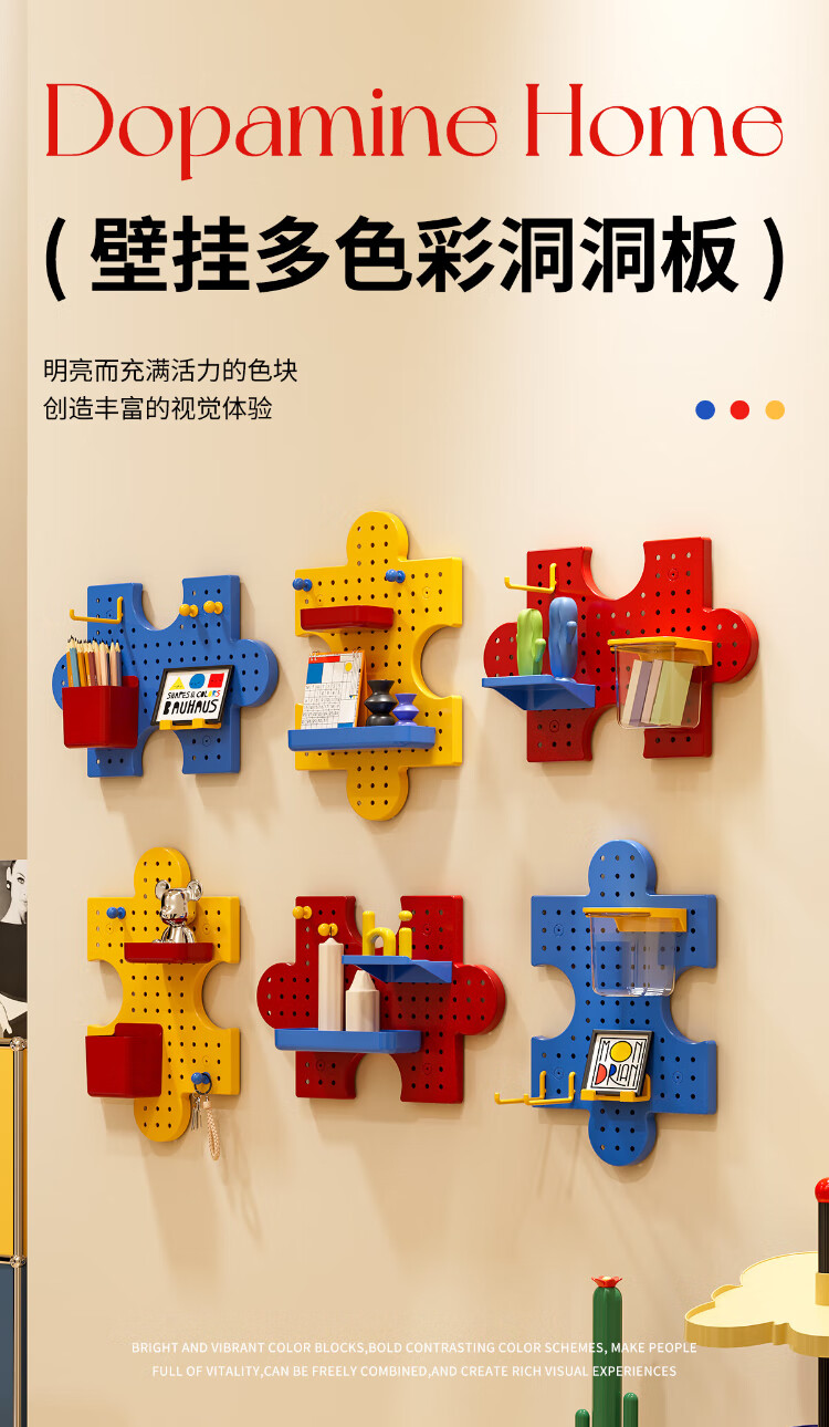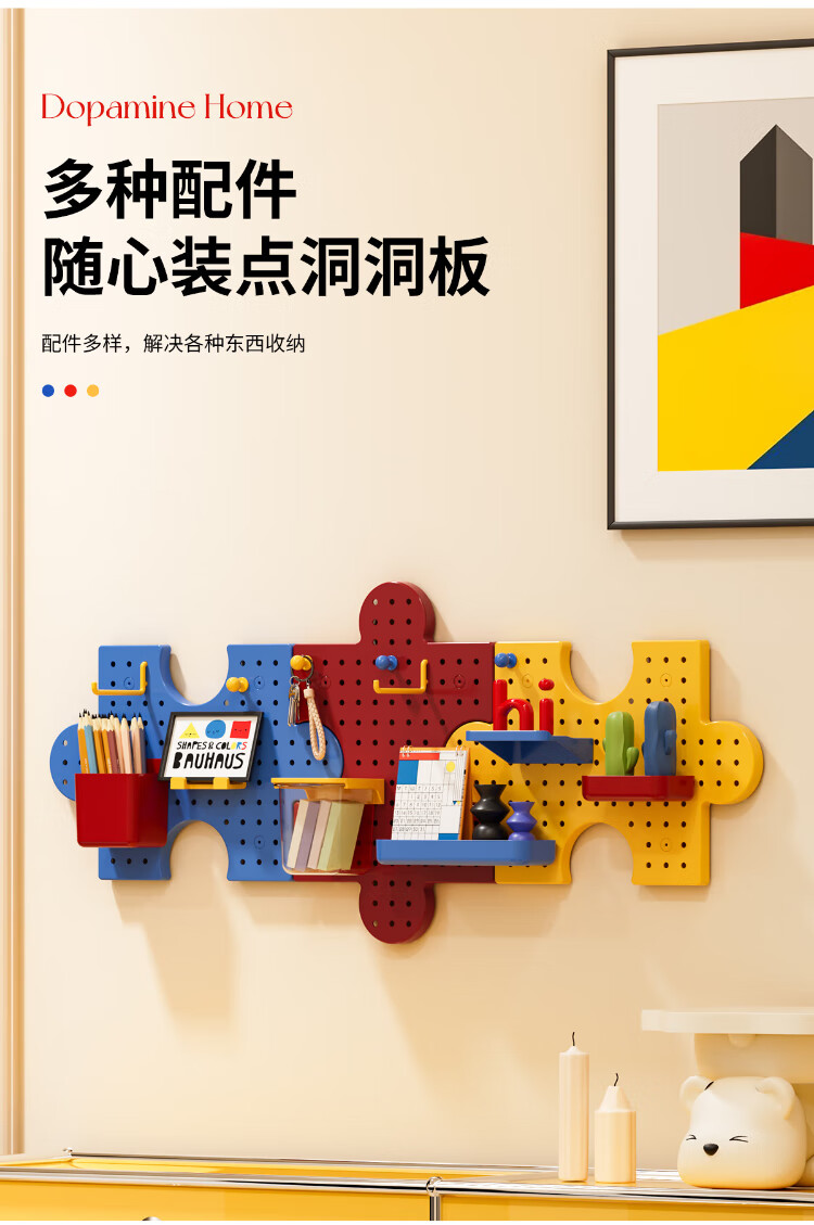 Perforated board storage rack, entrance hall style wall layout, key hook, decorative display, storage, wall shelf, puzzle--perforated board storage rack, including 3 perforated boards + multiple accessories
