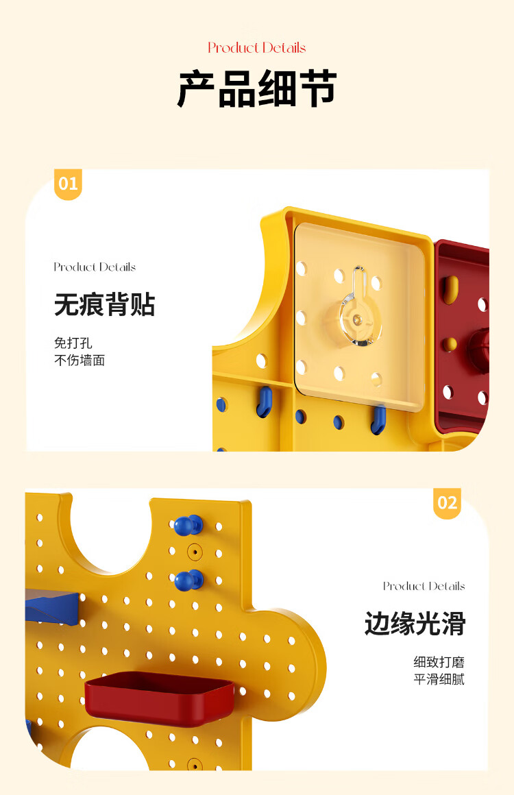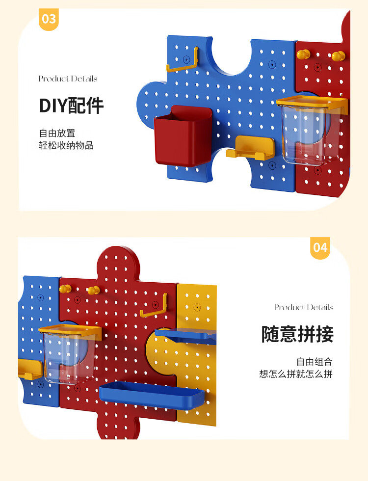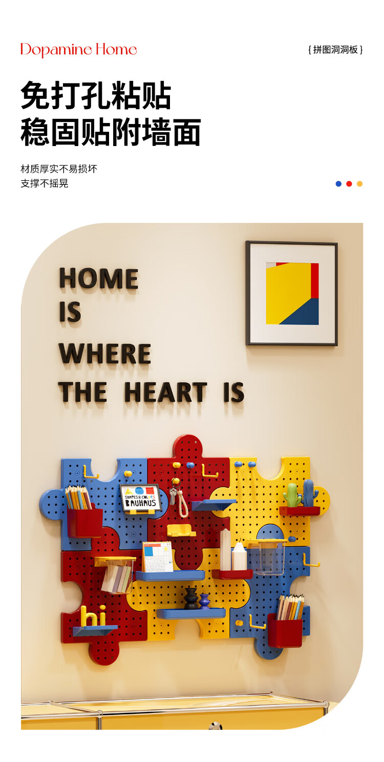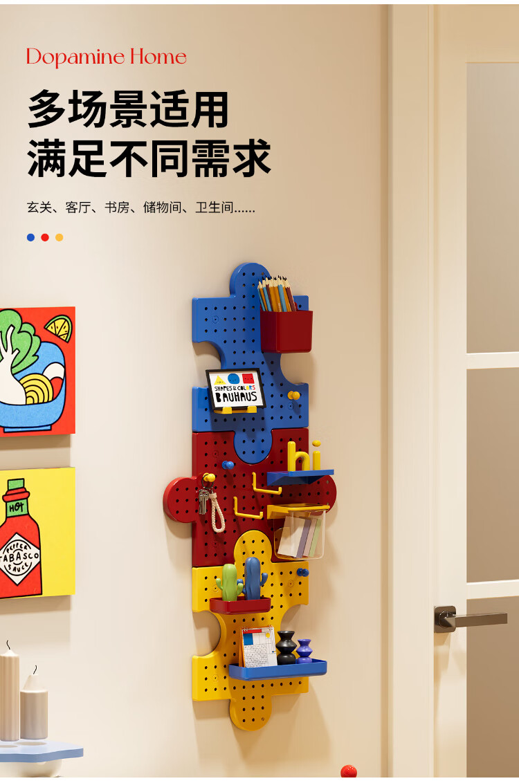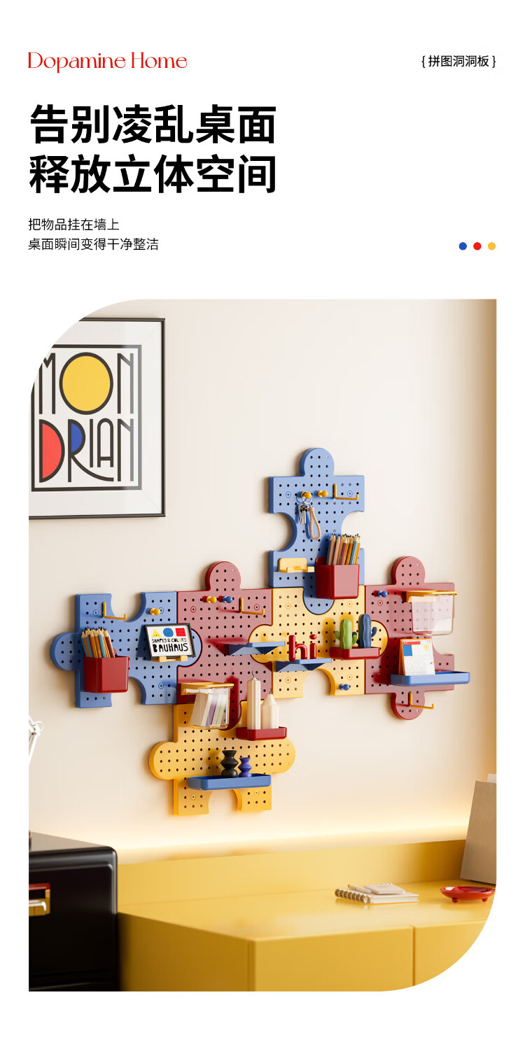 Perforated board storage rack, entrance hall style wall layout, key hook, decorative display, storage, wall shelf, puzzle--perforated board storage rack, including 3 perforated boards + multiple accessories