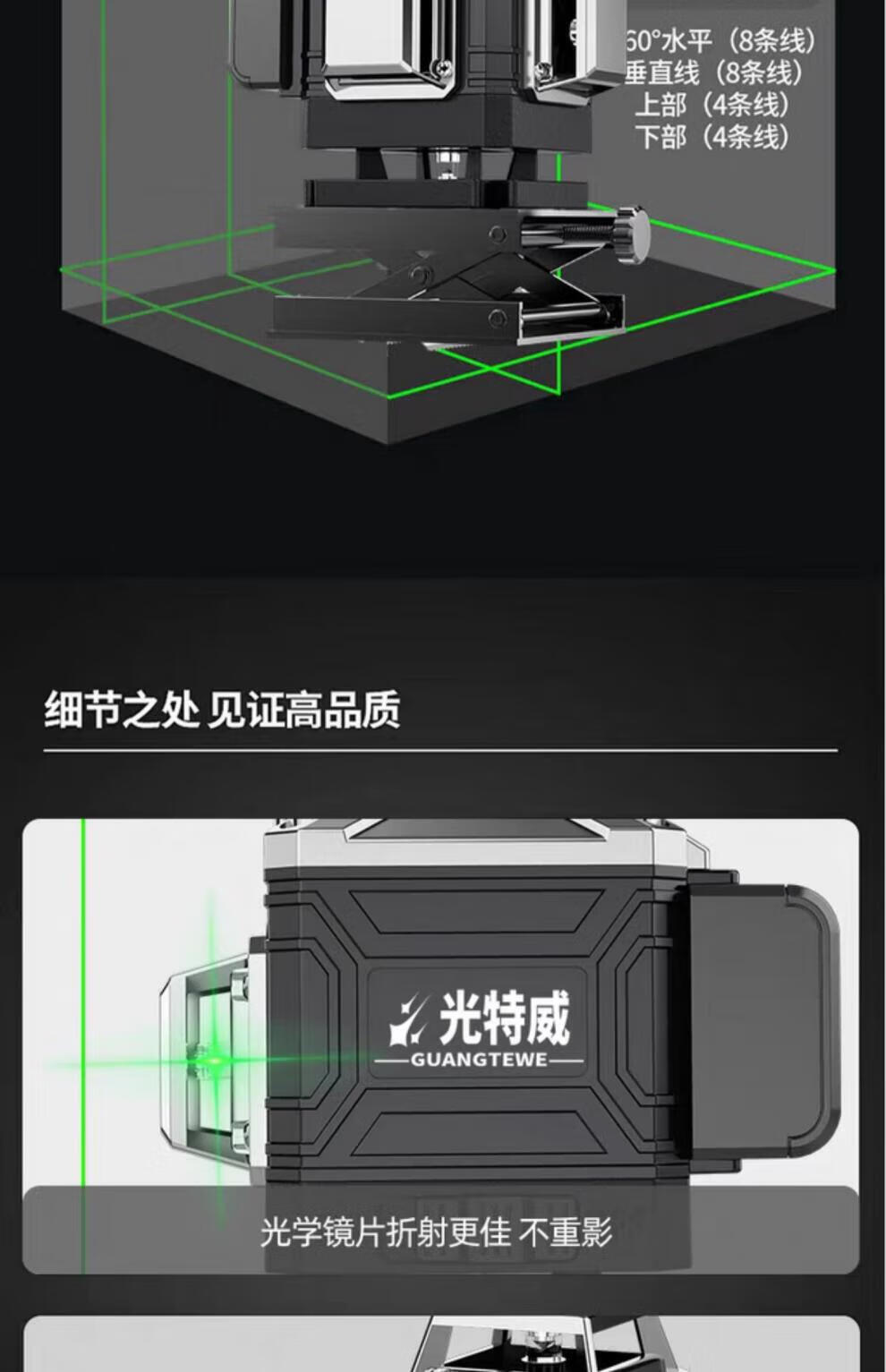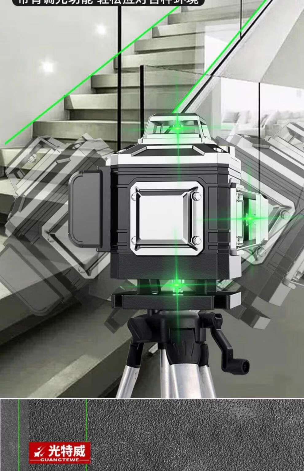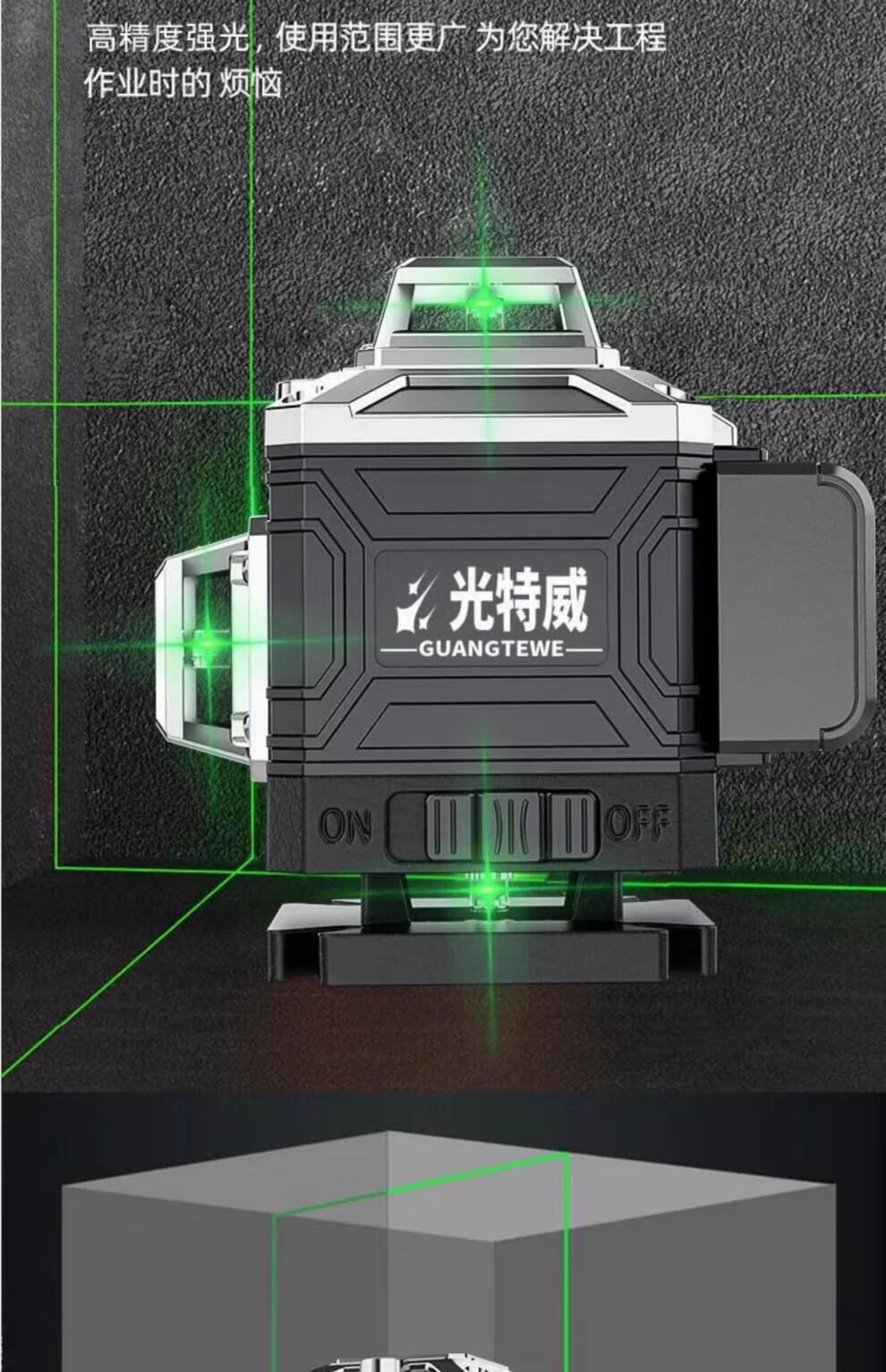 Perfect high-precision level meter with green light 12-line technology, strong light thin line 16-line line caster, automatic leveling, ultra-bright green light 8-line standard, dual batteries