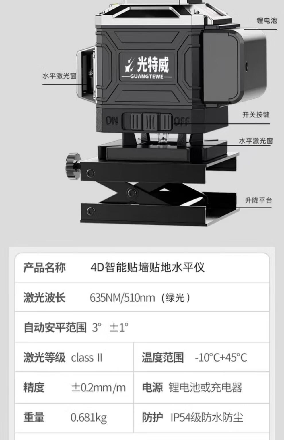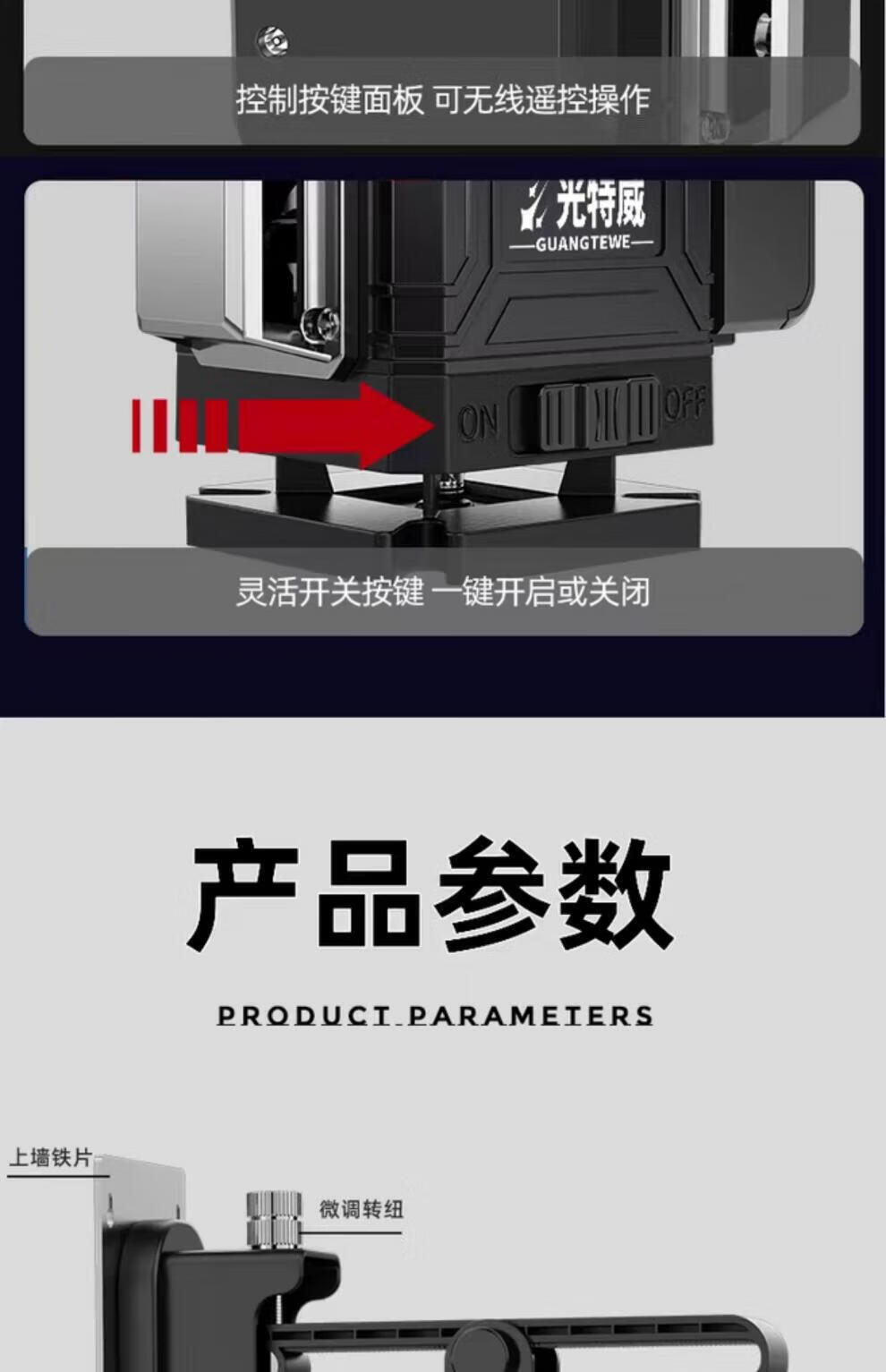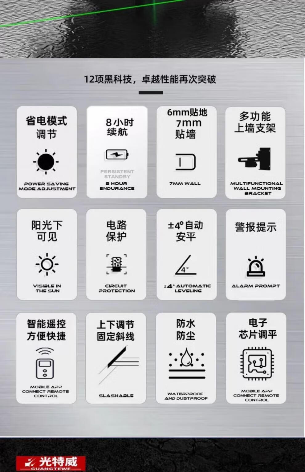 Perfect high-precision level meter with green light 12-line technology, strong light thin line 16-line line caster, automatic leveling, ultra-bright green light 8-line standard, dual batteries