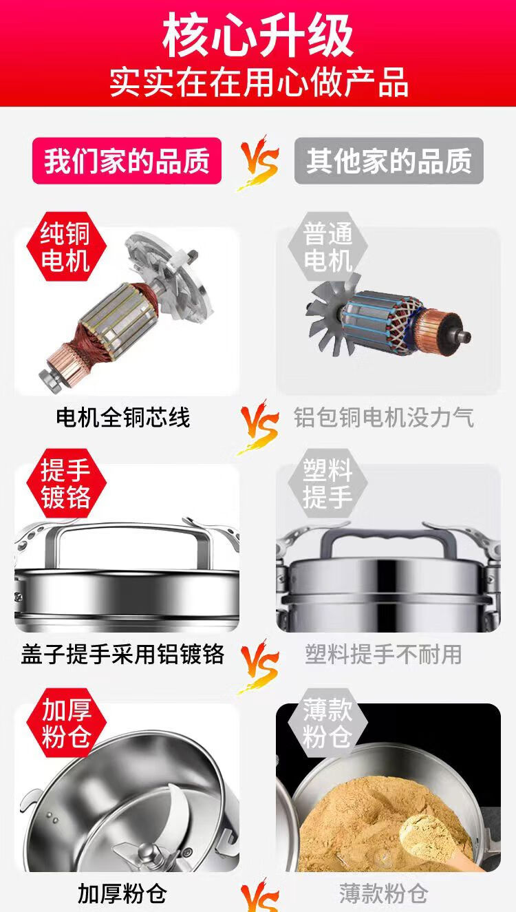 2500g grinding mill pulverizer household commercial grinding wall breaking machine crushing powder machine medicinal grains 150g grinding | 1400w pure copper motor