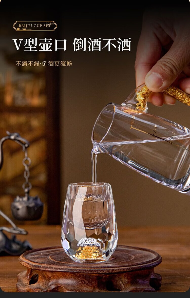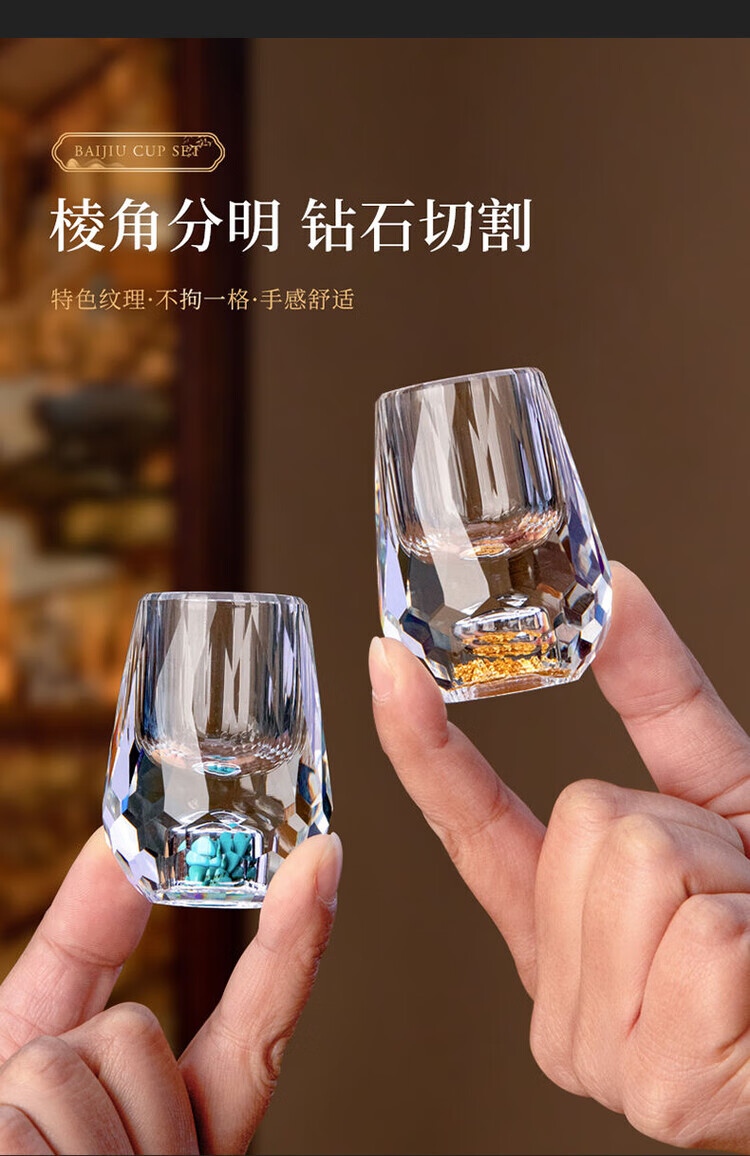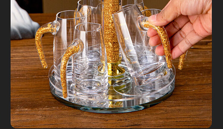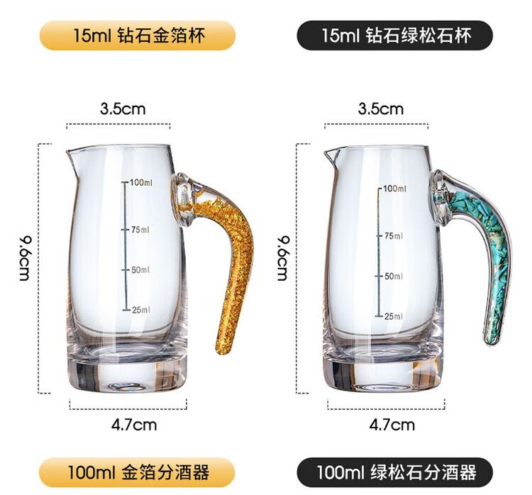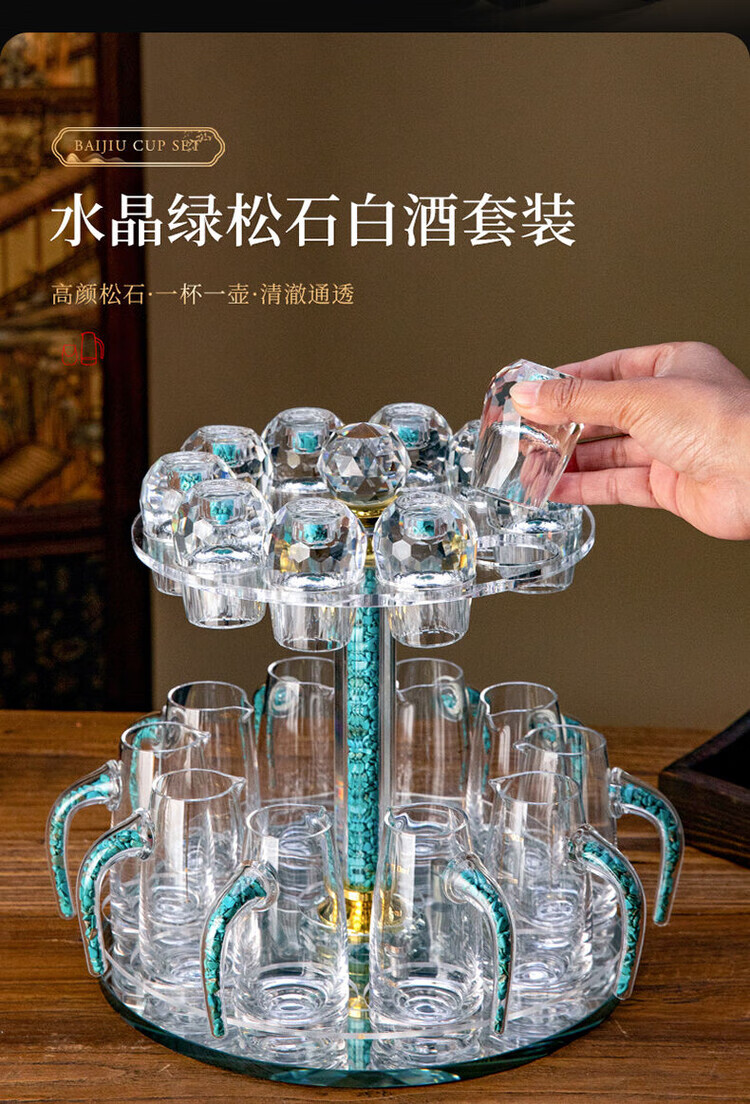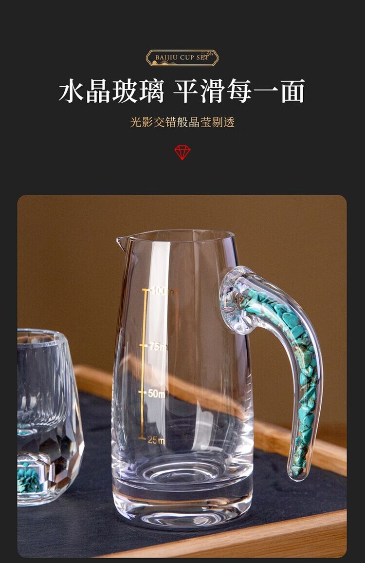 High-end light luxury lead-free crystal glass gold foil white wine glass set for home Chinese-style one-cup wine divider wine set 10 pots 10 cups + cup holder diamond turquoise cup
