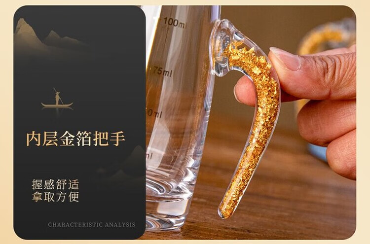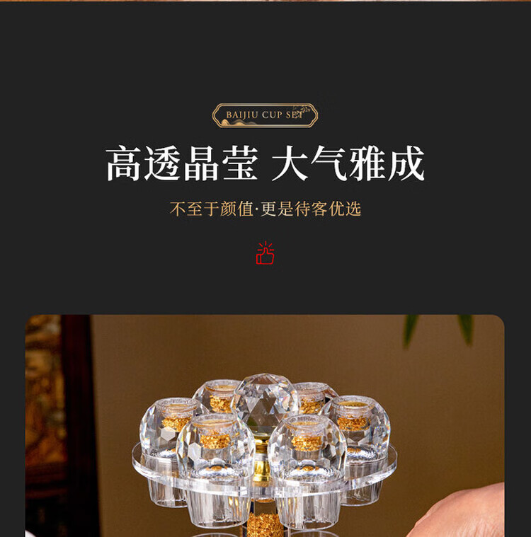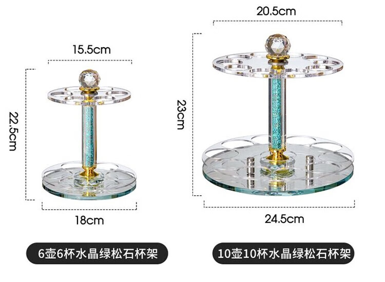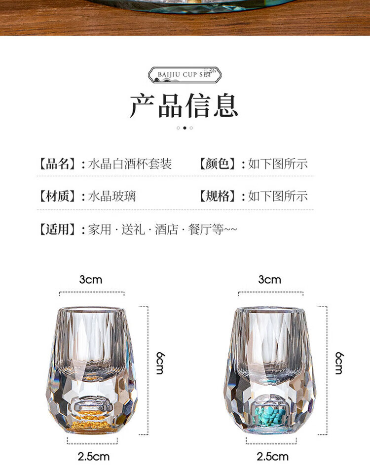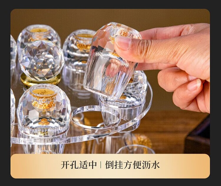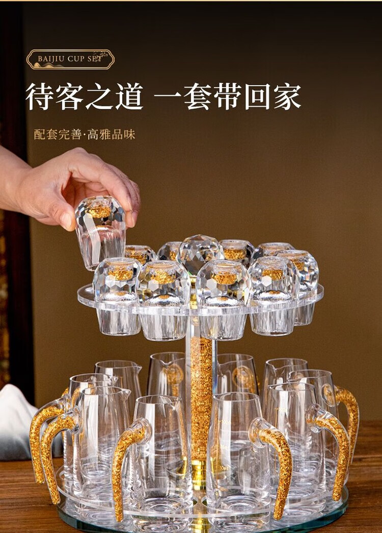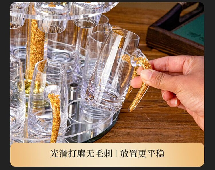 High-end light luxury lead-free crystal glass gold foil white wine glass set for home Chinese-style one-cup wine divider wine set 10 pots 10 cups + cup holder diamond turquoise cup