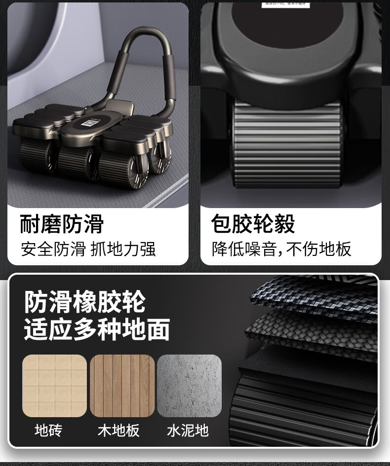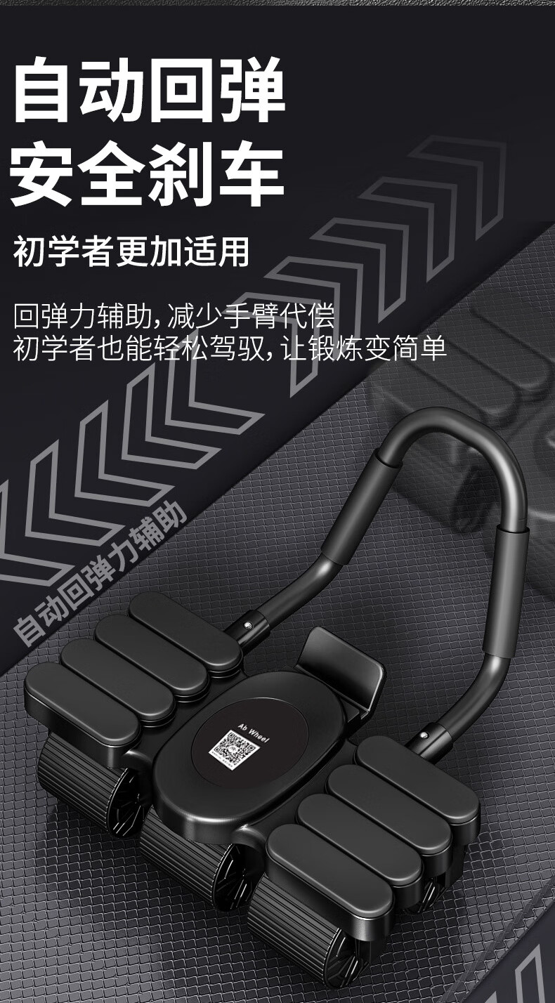 Yun Ran 2025 New Four-Wheel Abdominal Wheel Automatic Rebound Exercise Abdominal Wheel Artifact for Men and Women Abdominal Roll-Up Sports and Fitness Equipment Upgraded 4-Wheel Black Smart Interconnect/Free Kneeling Mat