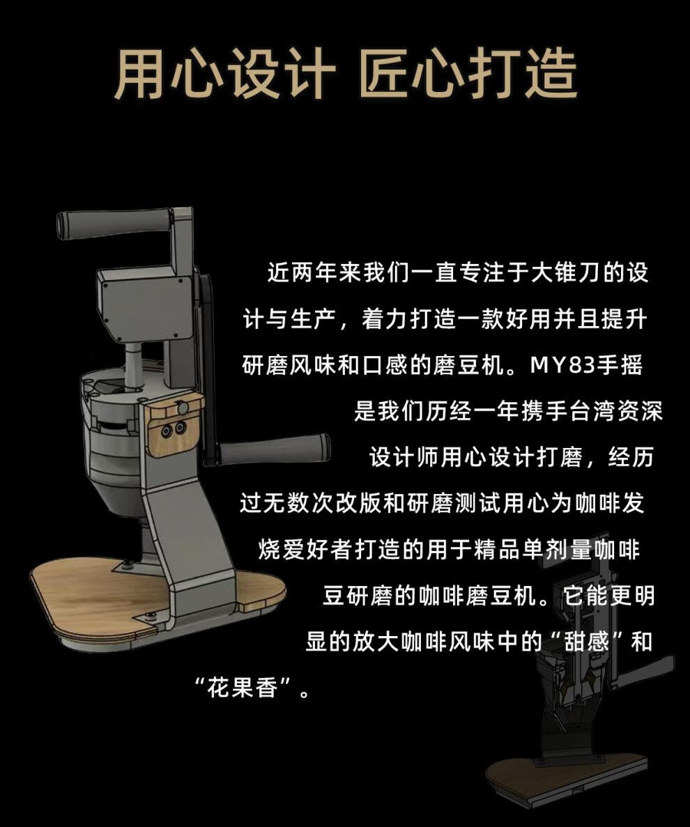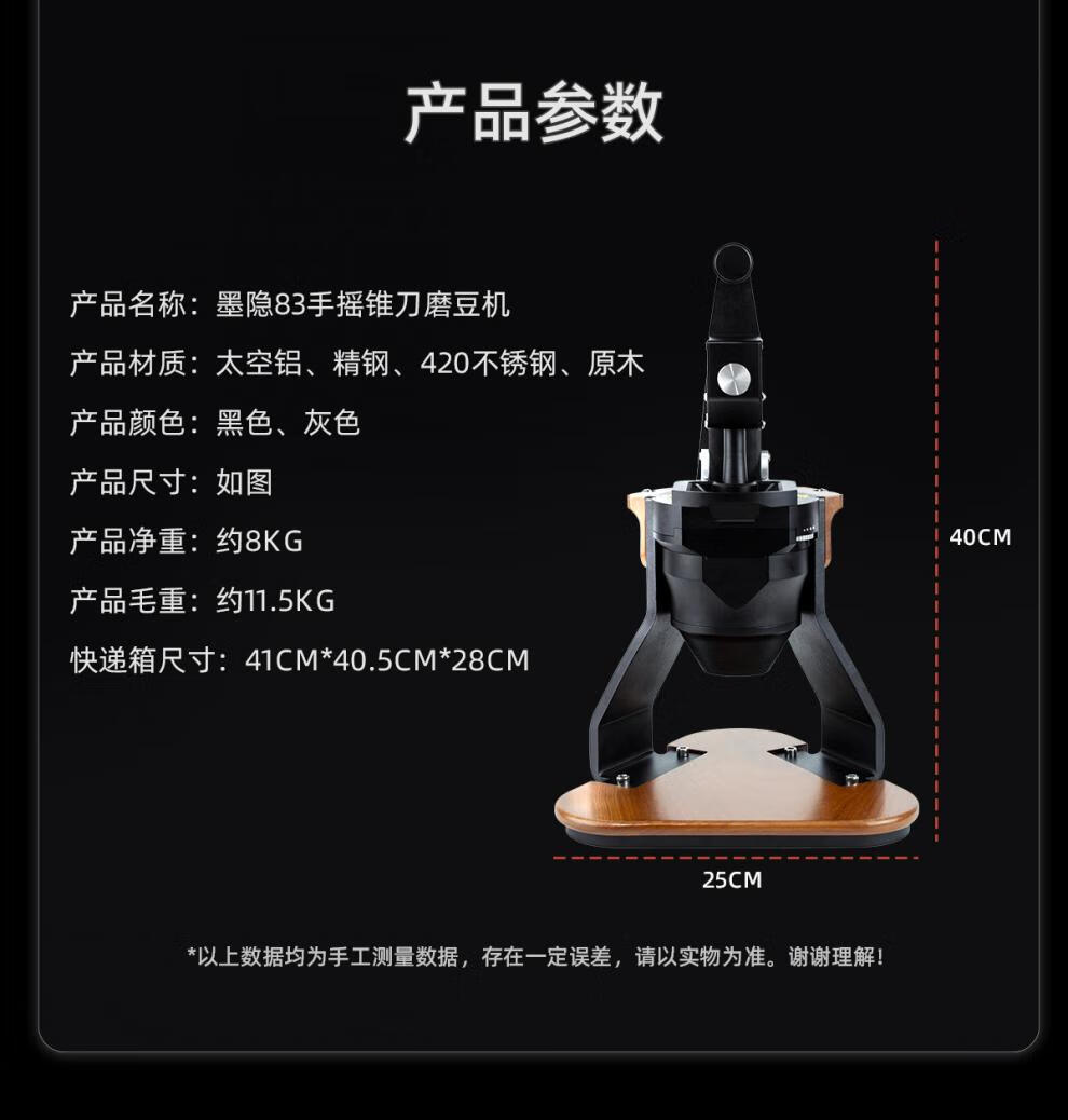 ROP Green Melting Ink Yin MY83mm hand-cranked bean grinder titanium cone knife heavy-duty manual grinder coffee bean grinder MY83-black