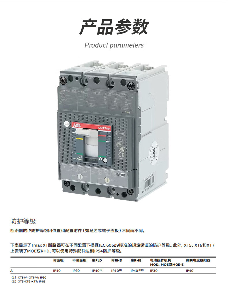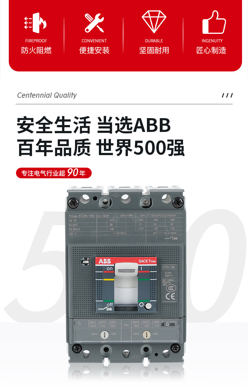 ABB molded case circuit breaker XT1C XT1N160 air switch XT3S250 100/160A 250A main switch 160A XT1N160 3P