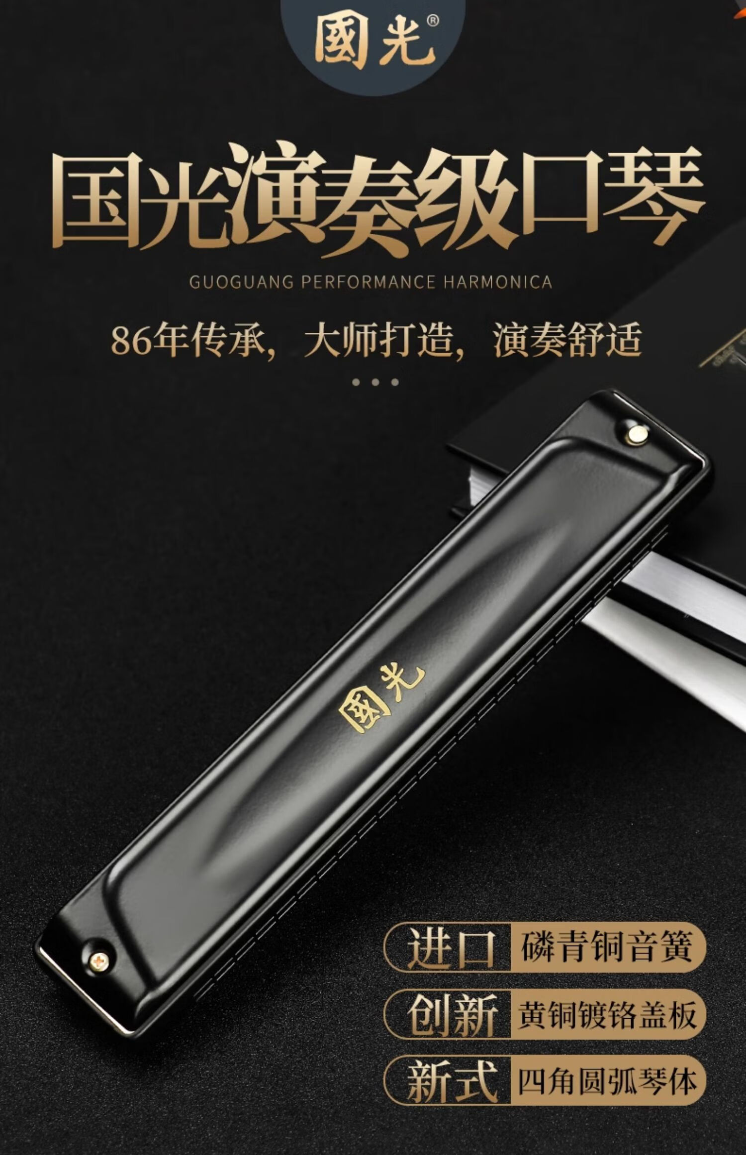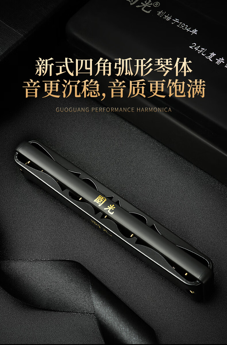Guoguang Guoguang genuine harmonica 24-hole polyphonic C key 28-hole accented adult professional performance level beginner entry 28-hole black polyphonic C key professional performance