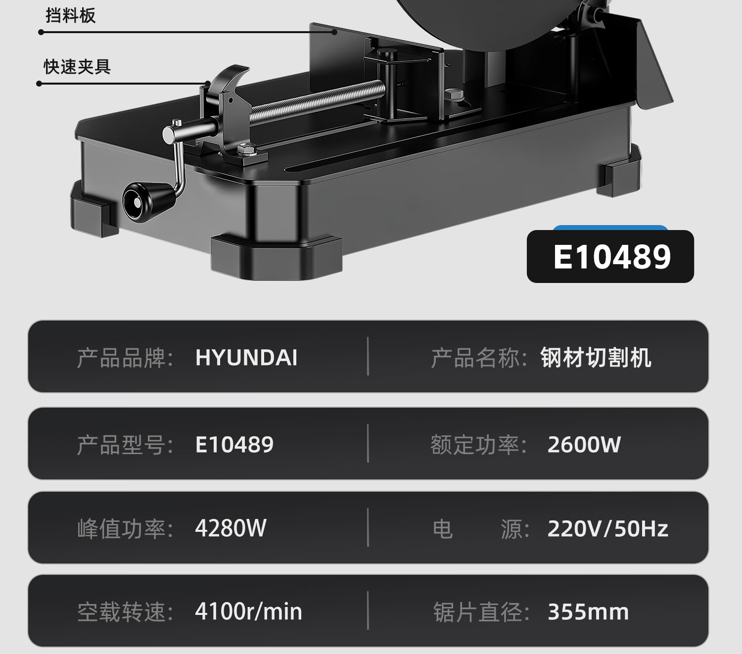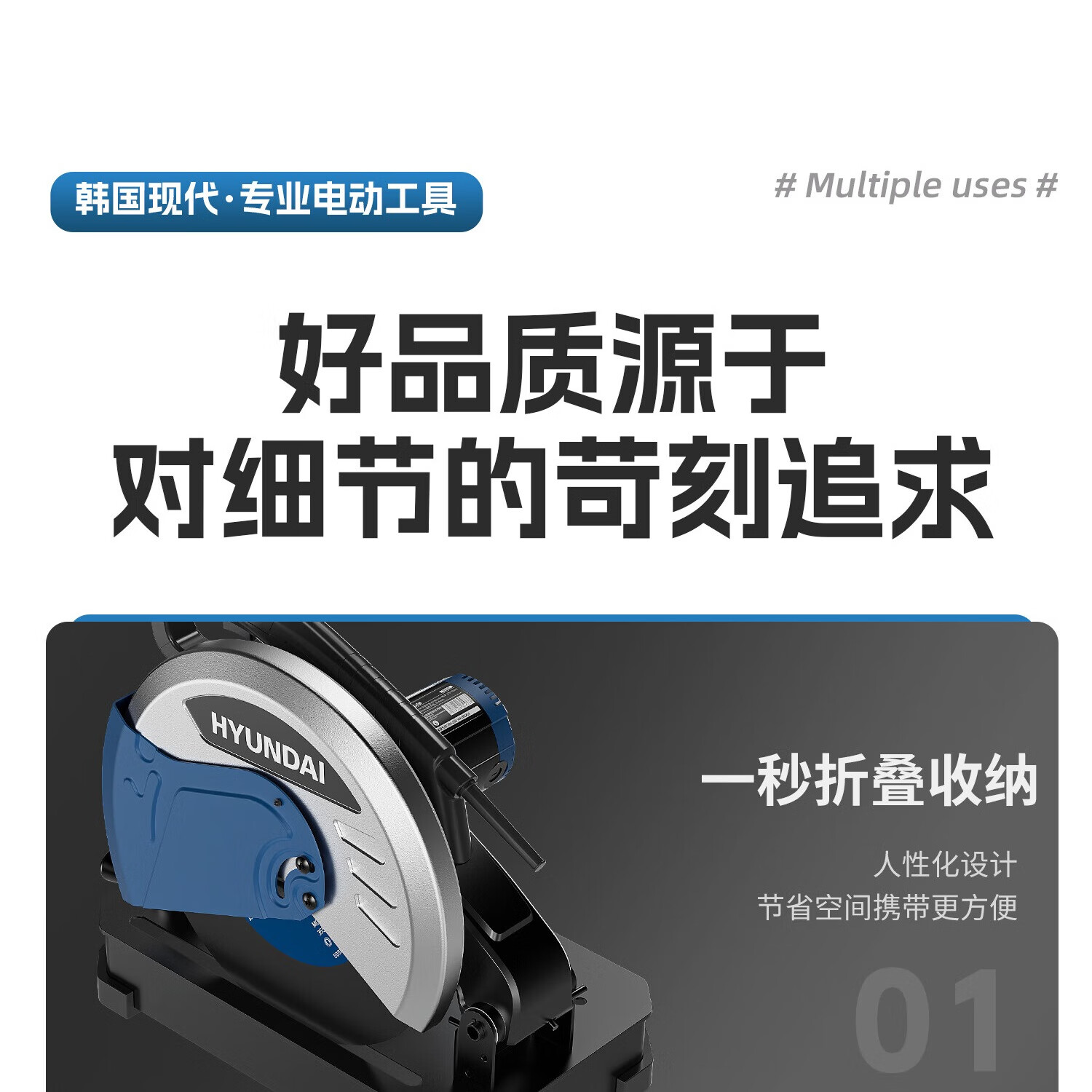HYUNDAI Korean modern new cutting machine high power 220V household desktop small multi-functional saw wood steel electric saw 3280W power speed sharp model-elite package hardened grinding wheel *1