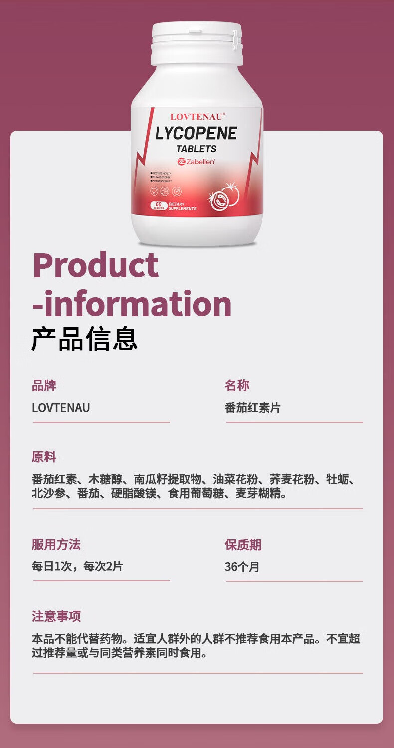 LOVTENAU original imported lycopene tablets for men, partners, adults, boosting energy, prostate conditioning, pregnancy preparation, 4 bottles of lycopene, cycle conditioning, buy 3 get 1 free